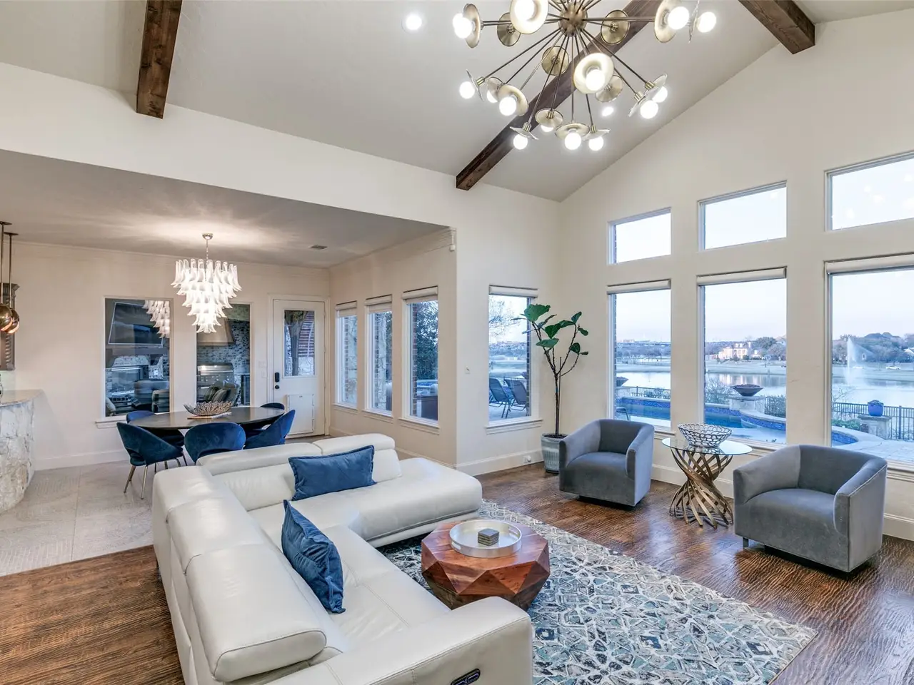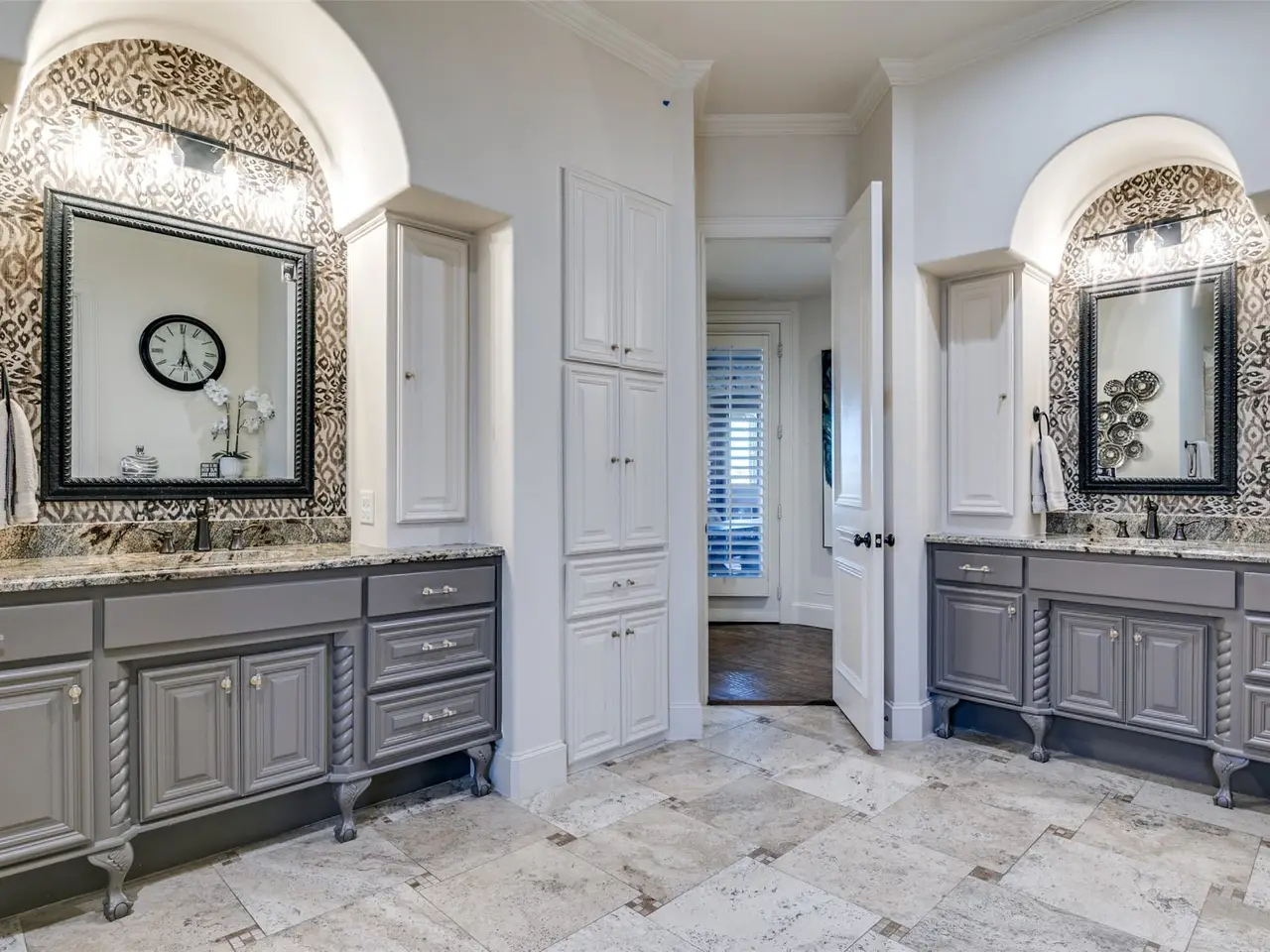 A RARE OPPORTUNITY! Stunning Golf & Lake Views in Castle Hills! Welcome to some of the most breathtaking views in the N Dallas area! This luxurious Custom Home is nestled within the EXCLUSIVE GUARD GATED COMMUNITY of Enchanted Hill! Every room in this exquisite home offers spectacular lake views, creating a sense of tranquility and elegance throughout. The exceptional floor plan includes a grand courtyard, a stunning foyer, and elegant dining room. The Chefs kitchen is a masterpiece, equipped with top-of-the-line Subzero and Wolfe appliances, while the fabulous family room and large breakfast area provide plenty of space for relaxation. For entertainment, there are two game rooms, a spacious game room on the main level as well as another upstairs currently being used as a card room with a wet bar, perfect for entertaining! The large tiered media room doubles as an exercise room. The expansive 22x16 balcony off the game room offers panoramic views of the lush golf course and serene lake, making it an ideal place to unwind. The luxurious master suite is a true retreat, with a sitting area, spa-like bathroom, and a custom-designed walk-in closet. All other spacious bedrooms feature en-suite baths, ensuring ultimate comfort for family and guests. Step outside into your own Outdoor Haven, where you'll find a spacious loggia with a fireplace, a built-in grill, refrigerator, along with multiple areas for relaxation and entertainment. Enjoy a sparkling pool, spa, firepots with water features, a firepit, lush grounds, and beautifully landscaped gardens. Additional features include the primary suite and two addt'l bedrooms on the main floor, an addt'l wet bar off the kitchen, a Spacious home office, wine room, plantation shutters, electric shades, imported lighting fixtures, and a 4-car garage. This extraordinary home offers a rare opportunity to live in luxury with unparalleled views and top-tier finishes. Don’t miss out on this once-in-a-lifetime opportunity!
