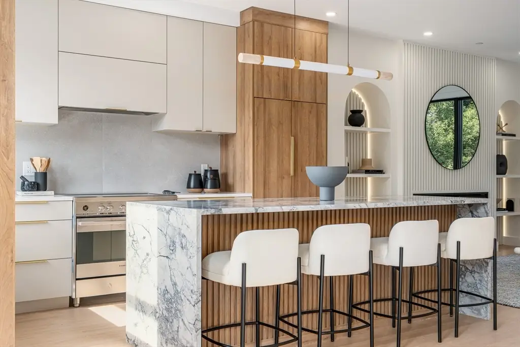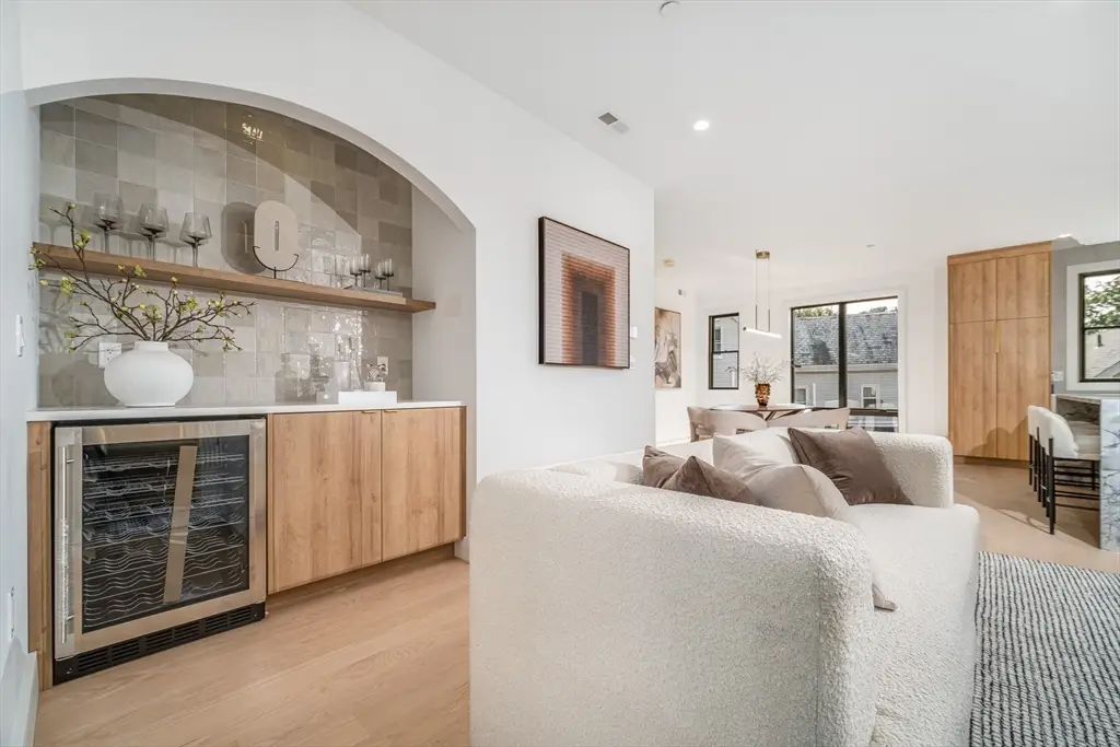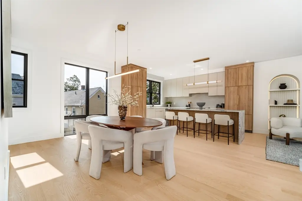 Stunning new construction 5 bed, 4 bath townhome with 2-car garage and exclusive yard space. This home offers a thoughtful layout with designer finishes throughout. The open-concept main level features a chef's kitchen with high-end appliances, striking custom cabinetry and built ins, a linear fireplace, plus a flexible bedroom/office. Upstairs, find 3 spacious bedrooms including a luxurious primary suite with walk-in closet and spa-like bath, along with laundry. The lower level provides versatile space for a gym, media room, or playroom. Built to feel like a single-family home, this property offers both style and function in a prime location ideally located near parks, the Charles River trail, Nonantum Village, and Watertown.