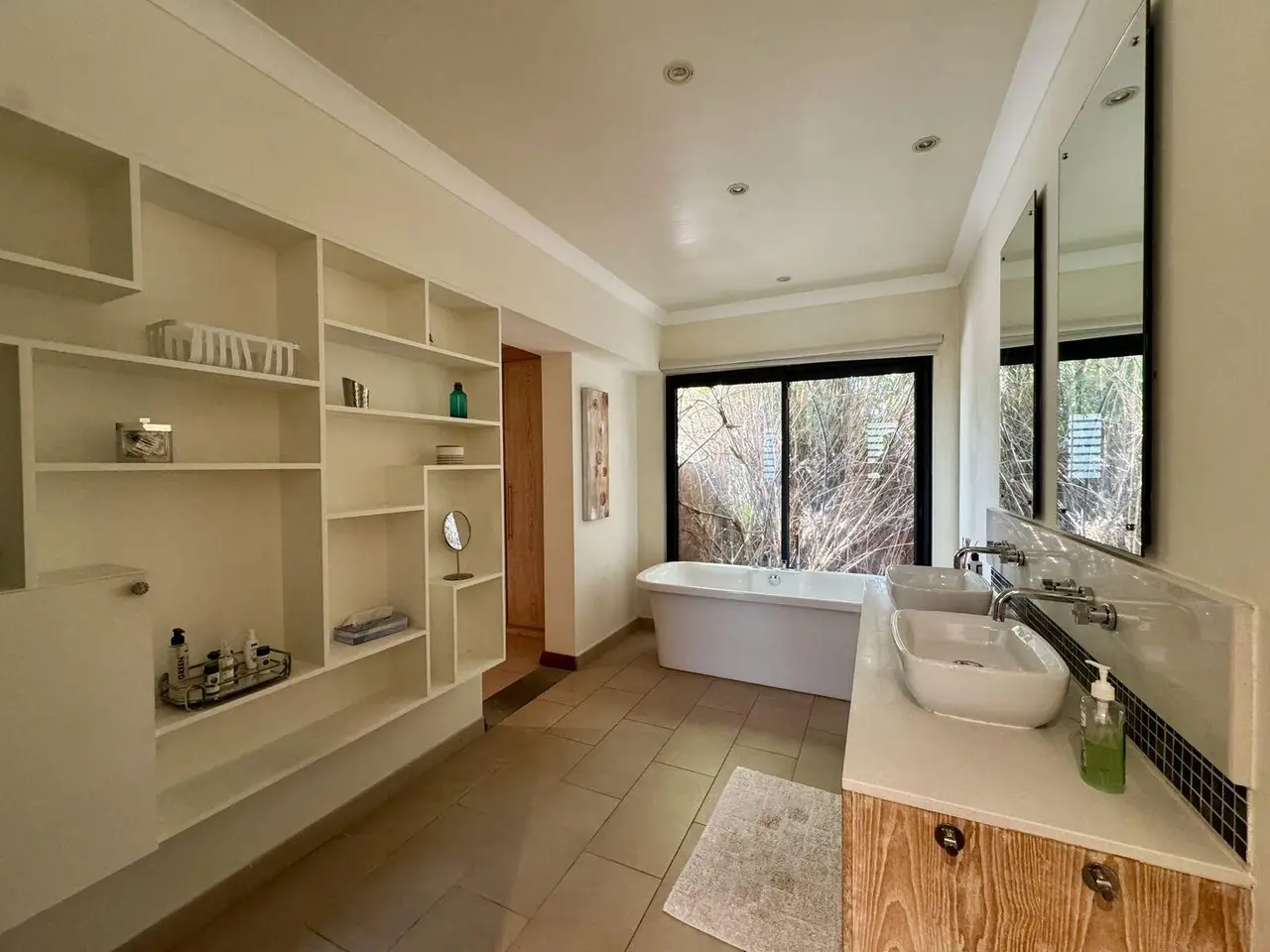 Nestled in the serene embrace of nature, IRS Villa Matala is a stunning property that offers the perfect blend of luxury, privacy, and tranquility. Located within the exclusive Gates Estate, this exquisite villa is designed for those who appreciate the beauty of nature while enjoying the comforts of modern living. Set against a backdrop of breathtaking Mountain Views and situated near the National Park Gorges, the villa is ideally placed for exploring the unspoiled natural surroundings. The large garden space, featuring a natural pond and lush reserve, enhances the sense of serenity, creating an oasis of peace and privacy. The villa's spacious design is characterized by fluid volumes, open-plan living areas, and a thoughtful layout that connects the indoors with the outdoors. With 8 potential bedrooms, including 4 ensuite bathrooms, the home offers ample space for family and guests. Rooms can be customized to suit various needs, such as a workshop with its own sink, a gym area, office, or even a soundproofed music room, fully equipped for audio enthusiasts. The villa boasts an array of exceptional features, including open roof terraces that are perfect for sunbathing or enjoying the stunning views. The dining area, breakfast nook, and fully equipped kitchen create an ideal space for entertaining. A cozy TV room provides the perfect retreat, while a laundry space and covered storage areas ensure practical functionality. For entertainment, the villa offers a well-stocked bar with amenities, as well as a gazebo that provides a peaceful outdoor setting. The expansive pool area, designed with privacy in mind, invites relaxation and enjoyment in a tranquil environment. With its spacious and flexible layout, the IRS Villa Matala is an entertainer's dream. Whether hosting intimate gatherings or larger celebrations, the villa's unique location and abundant natural beauty create an exceptional setting for all occasions. The property seamlessly blends into the surrounding landscape, offering a quiet and private escape from the world. This remarkable property offers more than just a home – it provides a lifestyle. Whether you're seeking a peaceful retreat, an entertaining haven, or a space to work and create, IRS Villa Matala is an unparalleled property that promises comfort, style, and a deep connection to nature. Also accessible to foreign acquisition.