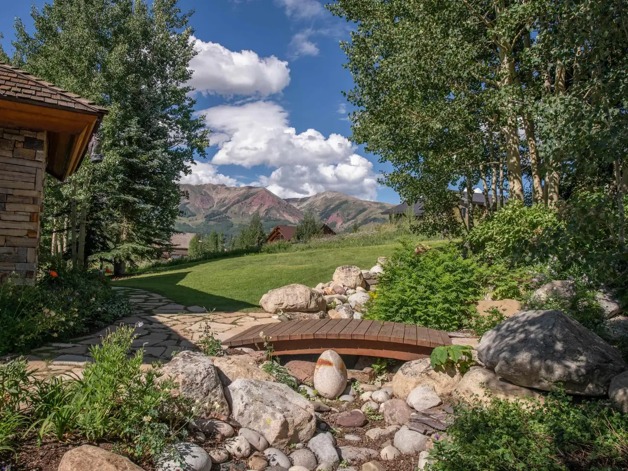 This stunning mountain home (Mt. Crested Butte, 81225) retreat on a peaceful and private cul-de-sac in the Gold Link subdivision is situated on two homesites for a total of 1.16 acres - the largest offering in Gold Link and one of the largest single-family parcels in Mt. Crested Butte. The home is on lot 28 at .78 acres and also includes neighboring lot 27 at .38 acres, with an option to build. The home has easy access to skiing and riding at Crested Butte Mountain Resort via the Homeowner Trail to the Gold Link chairlift. In the summer, the resort has an extensive network of hiking and biking trails. Ideal for entertaining and vacations with extended family and friends, this light-filled and spacious 5,974 SF home includes 5 bedrooms and 5 1/2 baths. Designed and built by locally renowned architect Dan Murphy and Hargrove Construction, the impressive great room features vaulted ceilings up to 21 ft. and massive windows that frame magnificent mountain views of Gothic and Snodgrass with an incredible floor-to-ceiling wood burning fireplace of stacked Telluride stone. Top-notch materials include variable width oak floors, alder trim and doors, custom iron work throughout by local artisan, Ben Eaton, and Pozzi double paned windows with motorized shades in the great room. The chef’s kitchen includes Viking Professional, Sub-Zero and Bosch appliances, Franke sinks, Italian granite counter tops, two islands, custom cabinets by Kevin Tutor, a beverage bar and a wine cooler. Main level and upstairs master suites both include a gas fireplace, bathroom with a spa tub, steam shower and tumbled marble counters, and each has a private deck with gorgeous views of Gothic Mountain. A handcrafted Blue Fir staircase that is a work of art leads to the second level with a landing that includes a cozy sitting area and a large, comfortable office. The lower level includes 3 ensuite bedrooms, a media room, billiards table, wet bar and an ample wine cellar. Enjoy comfort and convenience with in-floor radiant heat, built-in air circulation and humidifier, temperature controls for each level, Lutron Grafik Eye lighting, and a custom sound system by Electronic Solutions. The attached 2-car heated garage includes a work bench, ski and bike storage, loads of extra storage, a utility sink and a chest freezer. The property is beautifully landscaped including a lush lawn, flower beds, lots of mature trees, and a stream feature with a charming foot bridge. The bonus homesite creates a naturally beautiful extended yard of native wildflowers and grasses. Outdoor living is enhanced by the main level wraparound deck with teak furniture and outdoor speakers plus a patio with a built-in gas grill and a wood fire grill. There is also a lower-level stone patio with a large 8-person hot tub. This luxurious mountain home with timeless and classic décor comes fully furnished and is move-in ready. Specific personal items are excluded, call agent for details.