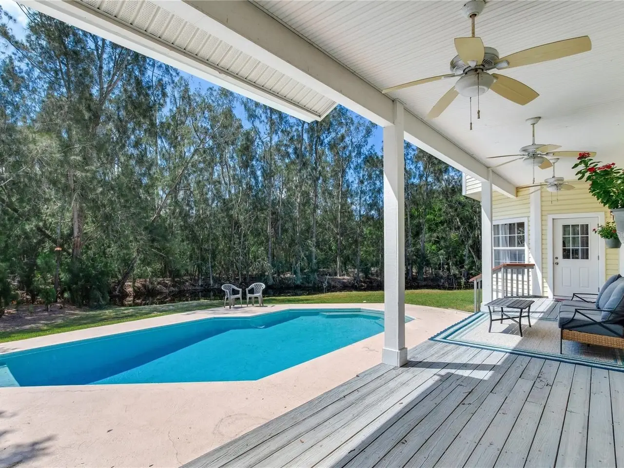 STUNNING 4-BED, 3-BATH POOL HOME ON A PRIVATE CUL-DE-SAC Welcome to 1851 Juanita Ct, a stunning and spacious two-story home tucked away on a quiet cul-de-sac in the heart of Clearwater. This beautifully updated 4-bedroom, 3-bath residence offers over 2,800 square feet of living space and is perfectly designed for comfort, style, and entertaining. Set on an oversized lot with no rear neighbors and surrounded by mature trees, the home provides rare privacy and a peaceful natural backdrop. Step inside to find soaring ceilings, wood-look flooring throughout, and abundant natural light that highlights every detail. The open-concept layout features a formal living room and dining area with elegant lighting. The fully renovated kitchen is a true showpiece, equipped with soft-close shaker cabinetry, granite countertops, stainless steel appliances, double ovens, a designer backsplash, and a large center island. The sunny breakfast nook overlooks the expansive backyard and sparkling pool, creating a perfect setting for morning coffee or casual dining. The first floor also includes a full guest bedroom and bathroom, ideal for a home office or in-law suite, as well as multiple living areas and a well-appointed laundry room with custom cabinetry. Upstairs, the luxurious primary suite impresses with vaulted ceilings, triple bay windows, a sitting area, and private French doors that lead to a large covered balcony with serene views of the trees and water beyond. The primary bath offers a spa-like experience with a jetted tub, custom tile walk-in shower with a expansive walk-in closet. Two additional bedrooms upstairs share access to the wraparound balcony and feature ample closet space and sliders. The home’s thoughtful layout also includes a bonus flex room and an oversized three-car garage with additional storage space. Outdoors, the fully fenced backyard is a private oasis with a generous pool deck, lush lawn, and direct views of the creek and a peaceful wooded preserve. This home combines exceptional value with unmatched character and functionality. Located just minutes from Clearwater Beach, downtown Dunedin, top-rated schools, shopping, and dining, 1851 Juanita Ct is truly a rare find and move-in ready.