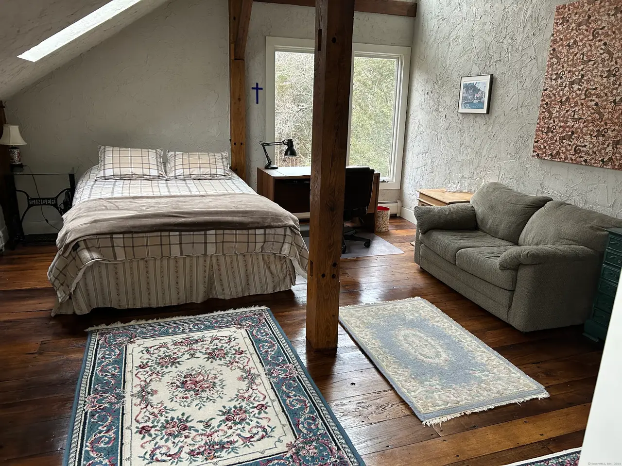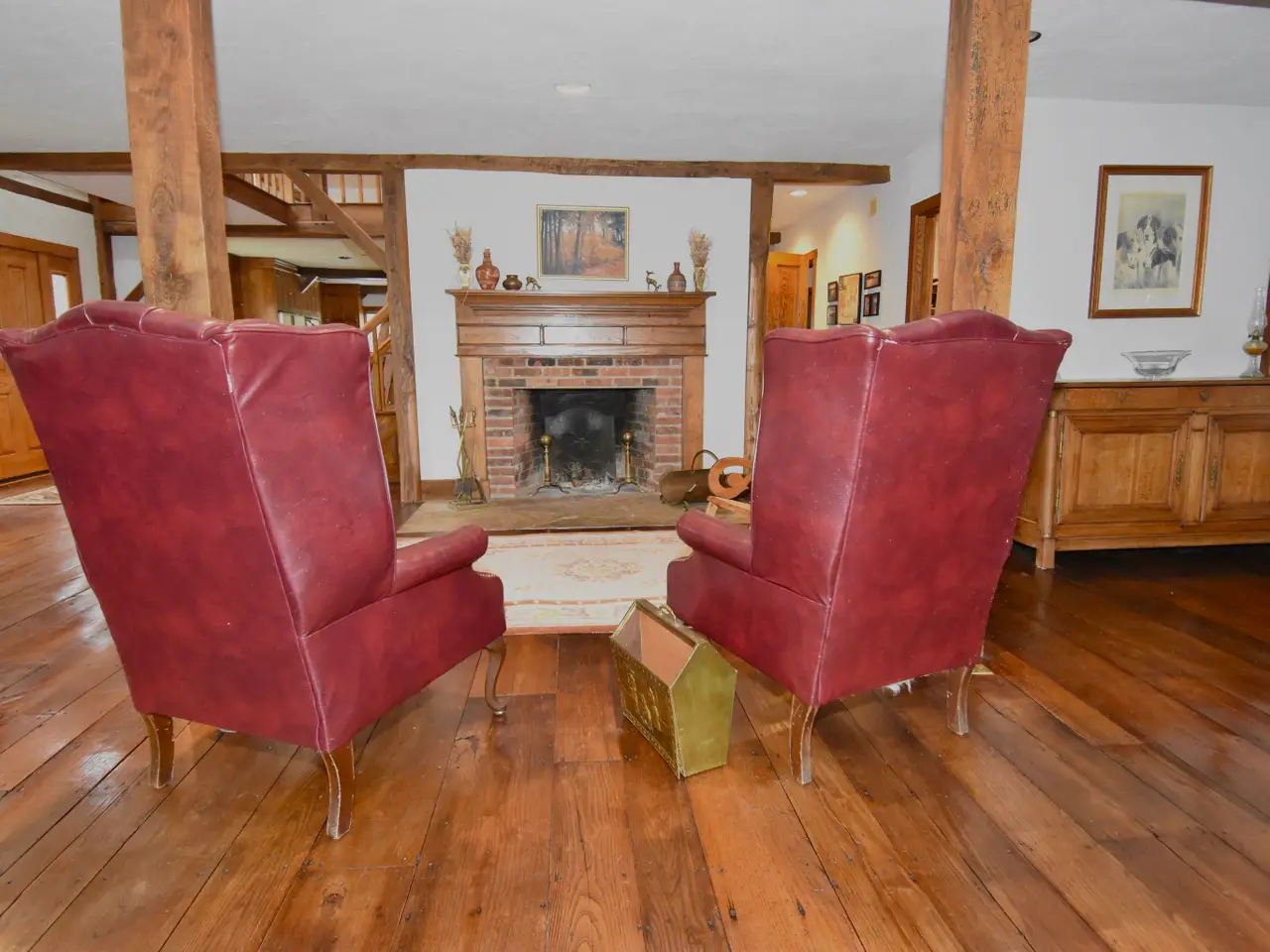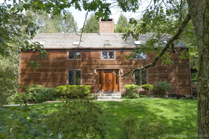 Come home to a unique 3032 sqft, one-of-a-kind custom built Barn home all set on 5 secluded acres. Featuring an open floor plan, beamed ceilings, oak floors, Plaster Walls, fully applianced Kitchen with breakfast bar, a spacious Family Room with brick fireplace, built-ins, & slider leading to back deck. The Living Room with fireplace is adjacent to a spacious Dining Room area & slider leading to large deck with access to side yard. At the end of the day enjoy the cozy Library with fireplace and built-ins. First floor also has an Office as well as a full Bathroom. As you ascend the stairs to the second floor you will marvel at the unique lighted brick archway. Second floor boasts of lovely Primary Bedroom Suite with brick fireplace & raised hearth, walk-in closets, Full Bath with tub, shower & vanities, and slider leading to balcony. Two other large Bedrooms with skylights, Full hallway Bathroom, and Laundry Room with utility sink. Lower level features an in-law/apartment, Storage Room & Mud Room with storage. This home has easy access to Woodbury's town center, shops, top restaurants, antiquing, and recreation with hiking trails & nearby lake. Enjoy all this property has to offer as well as the area!