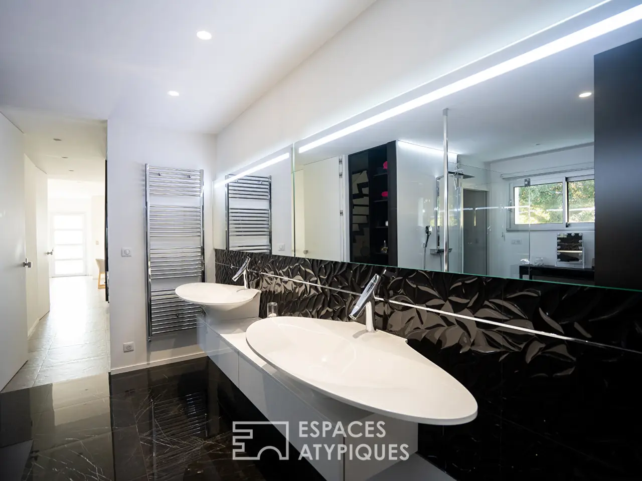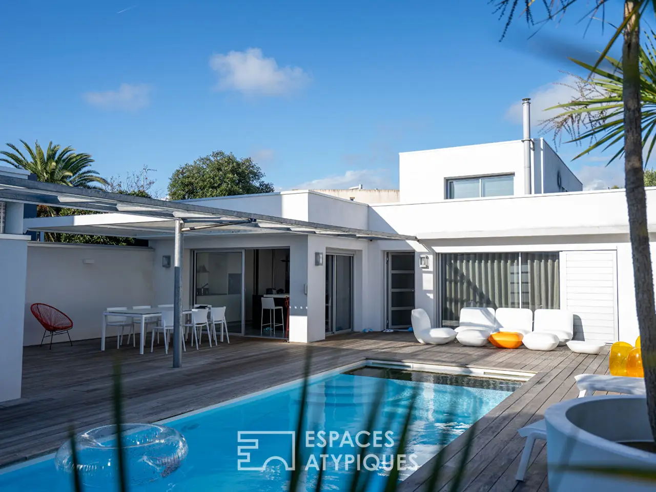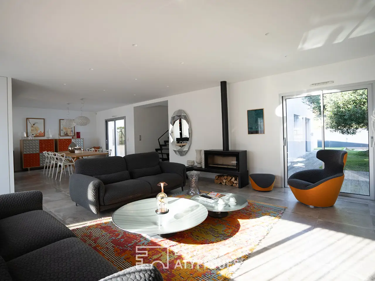 Nestled in the heart of the charming town of Ploemeur, this luxury architect-designed house embodies the perfect balance between modernity, comfort and space. Designed for an exceptional living environment, it offers high-end services and is close to beaches and local amenities. As soon as you arrive, you will be seduced by the contemporary architecture of this house, which is distinguished by its clean lines and quality materials. The land surrounds the property, offering privacy and tranquility. The outdoor space is designed to take full advantage of sunny days thanks to a large wooden terrace, overlooking a magnificent swimming pool. This place of relaxation is perfect for entertaining your friends or enjoying moments of serenity with your family. Inside, the house extends over a harmonious layout. The ground floor accommodates a bright living room, bathed in natural light. This friendly living space is ideal for your moments of sharing and conviviality. The kitchen, fully equipped with modern appliances, is a real culinary creation space, where you can concoct delicious meals with your family. Direct access to the terrace makes it easy to eat outdoors on summer evenings. The house has a large ground floor, with a large private bathroom, offering all the necessary comfort and privacy. Upstairs, you will discover two bedrooms, each tastefully designed. These bedrooms share a soberly arranged bathroom. The view from the windows offers a perspective on the garden and the swimming pool. Additional Spaces The property is not limited to the interior. A carport and an adjoining garage add additional convenience, while protecting your vehicles from the elements. The garage also has a sauna, a real asset for your moments of relaxation after a long day. To complete these services, a pool house adjacent to the swimming pool will allow you to take full advantage of your outdoor space. Location Located in Ploemeur, this house enjoys a privileged location, close to schools, shops and beaches. The town, known for its dynamism, offers an exceptional quality of life, ideal for families as well as professionals in search of serenity. This architect-designed house in Ploemeur represents a rare opportunity on the real estate market. Combining contemporary design, modern comfort and a relaxing setting, it will appeal to lovers of beautiful homes. ENERGY CLASS: B / CLIMATE CLASS: A Estimated average amount of annual energy expenditure for standard use based on 2021 energy prices: between EUR 810 and EUR 1,120/year REF. 391EAM Additional information * 4 rooms * 3 bedrooms * 2 shower rooms * Outdoor space : 751 SQM * Property tax : 2 171 €