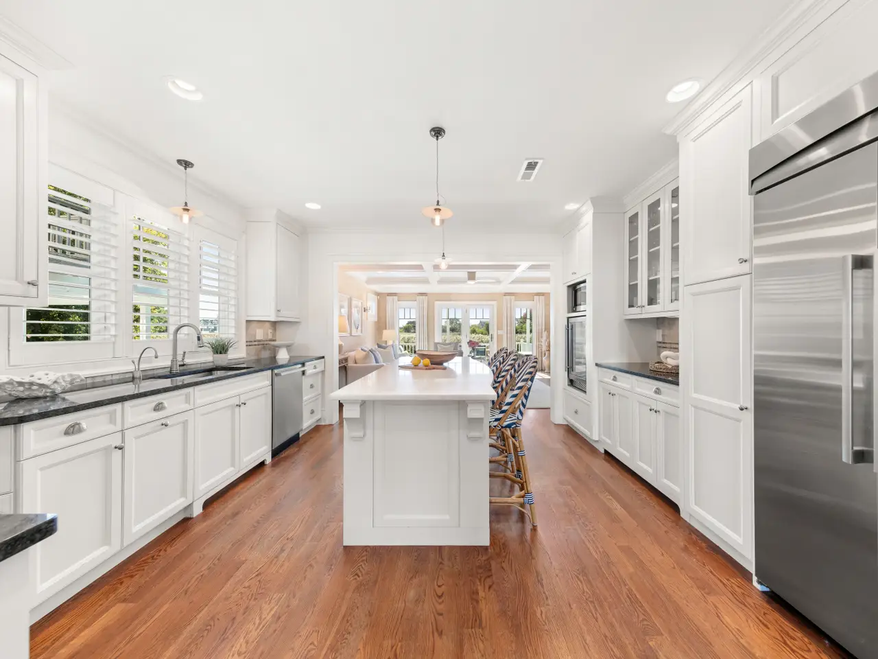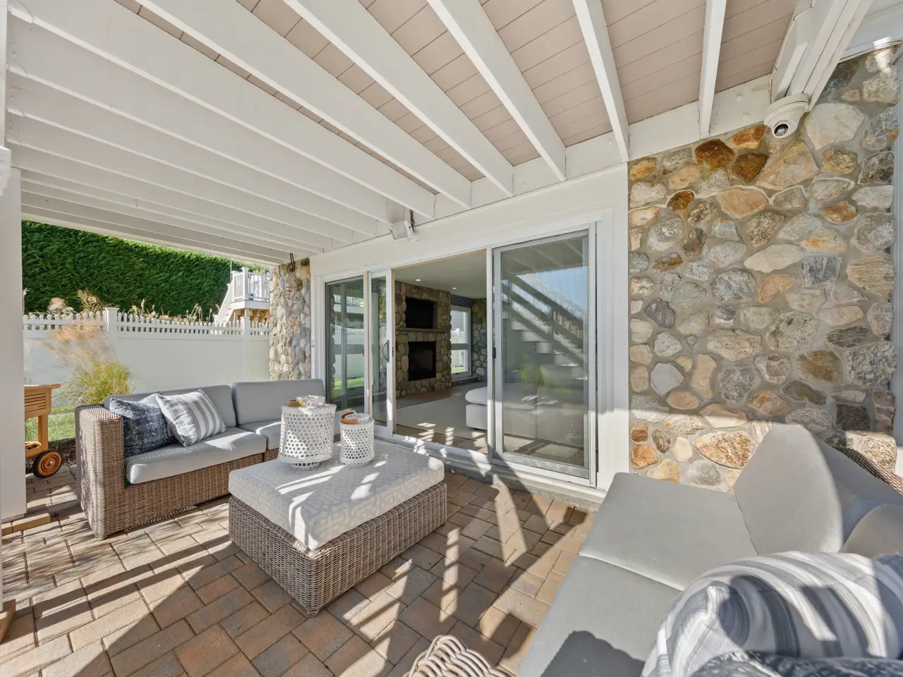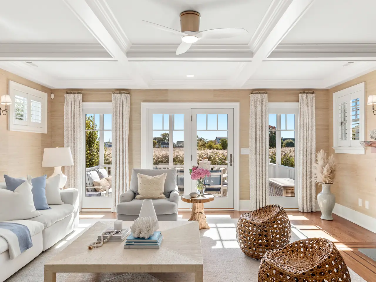 Steps from Penfield Beach via gated Fair Acres Beach Association, 748 Rowland Road is a stunning coastal retreat offering the perfect blend of luxury living & laid-back elegance. Set on a rare, private lot w/sweeping, unobstructed views of protected open space this home is a sanctuary of sunlight, serenity & sophisticated design. The main level unfolds w/an open, airy layout filled w/natural light. A gracious dining room sets the tone for entertaining while the eat-in kitchen impresses w/Thermador appliances, wine fridge & oversized marble island framed by custom cabinetry. The living room stuns w/coffered ceilings, gas fireplace w/reclaimed wood mantle & breathtaking views of the lush space beyond. French doors lead to large deck perfect for alfresco dining & soaking in the coastal breeze. 1st fl powder room & seamless indoor-outdoor flow complete the effortless beachside living vibe. Upstairs, the primary suite is a peaceful retreat w/gas fireplace, oversized walk-in closet, spa-like en suite bath & private deck where ocean breezes & morning light set the tone for the day. 2 add'l bedrooms w/Jack & Jill bath & separate dressing areas provide comfort & privacy for family/guests. Lower level loggia is a showstopper featuring stone floors, gas fireplace & access to patio & stunning professionally landscaped backyard oasis. Attached oversized garage w/epoxy floor, gas, sewer, public water, FEMA compliant.