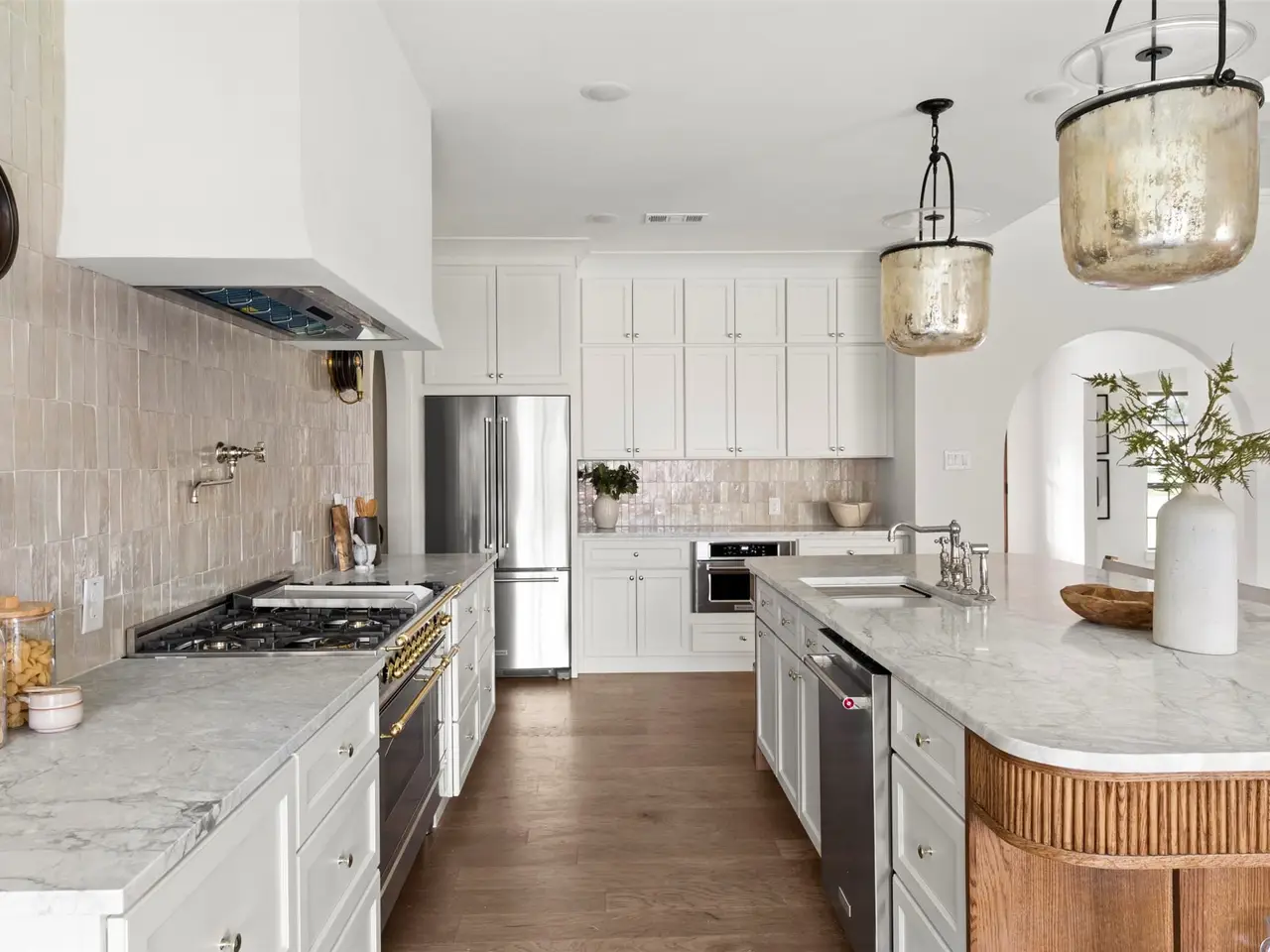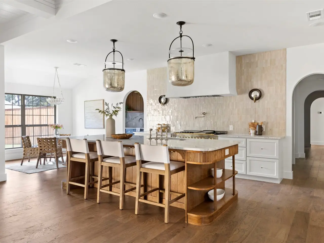 Meticulously renovated and designed by PAKX Homes delivers refined style and modern comfort in every detail. A dedicated home office with custom built-ins offers a quiet workspace, while the formal dining room sets the stage for entertaining. The open living area is anchored by a sleek marble fireplace flanked by custom oak shelving, creating a warm yet elevated feel. The kitchen is outfitted with a full suite of KitchenAid appliances, including refrigerator, dishwasher, and microwave, and features an Italian-made range as a standout centerpiece. A large butlers pantry with marble counters, oak shelves, second refrigerator and wine cooler adds storage and function without compromising aesthetics. Oak hardwood floors flow throughout the home, enhanced by designer lighting, brass fixtures, and custom millwork. The primary suite features a spa-style bath with double vanities, marble counters, a freestanding soaking tub, and an oversized walk-in shower. Down the hall are two other spacious bedrooms, with access to beautifully appointed jack-and-jill bathroom. The fourth ensuite bedroom, tucked privately behind the kitchen, serves as an ideal guest suite, completely separate from the main living and entertaining areas. There's also a fifth flex room offers endless possibilities: fifth bedroom, playroom, media space, or home gym. Every inch of this property reflects thoughtful design, high-end materials, attention to detail and refined craftsmanship.