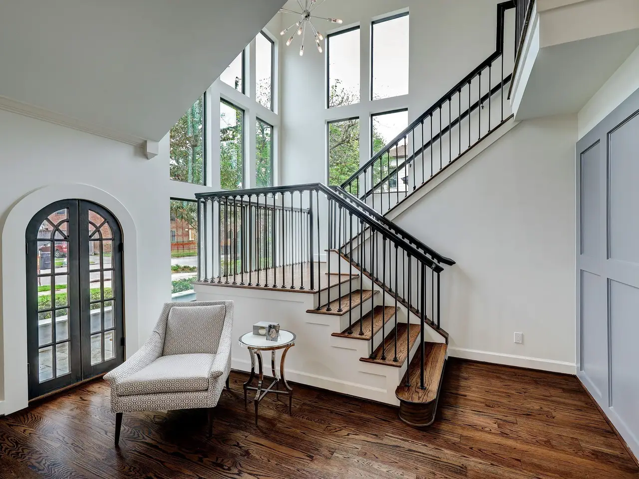 Striking grand staircase with windows