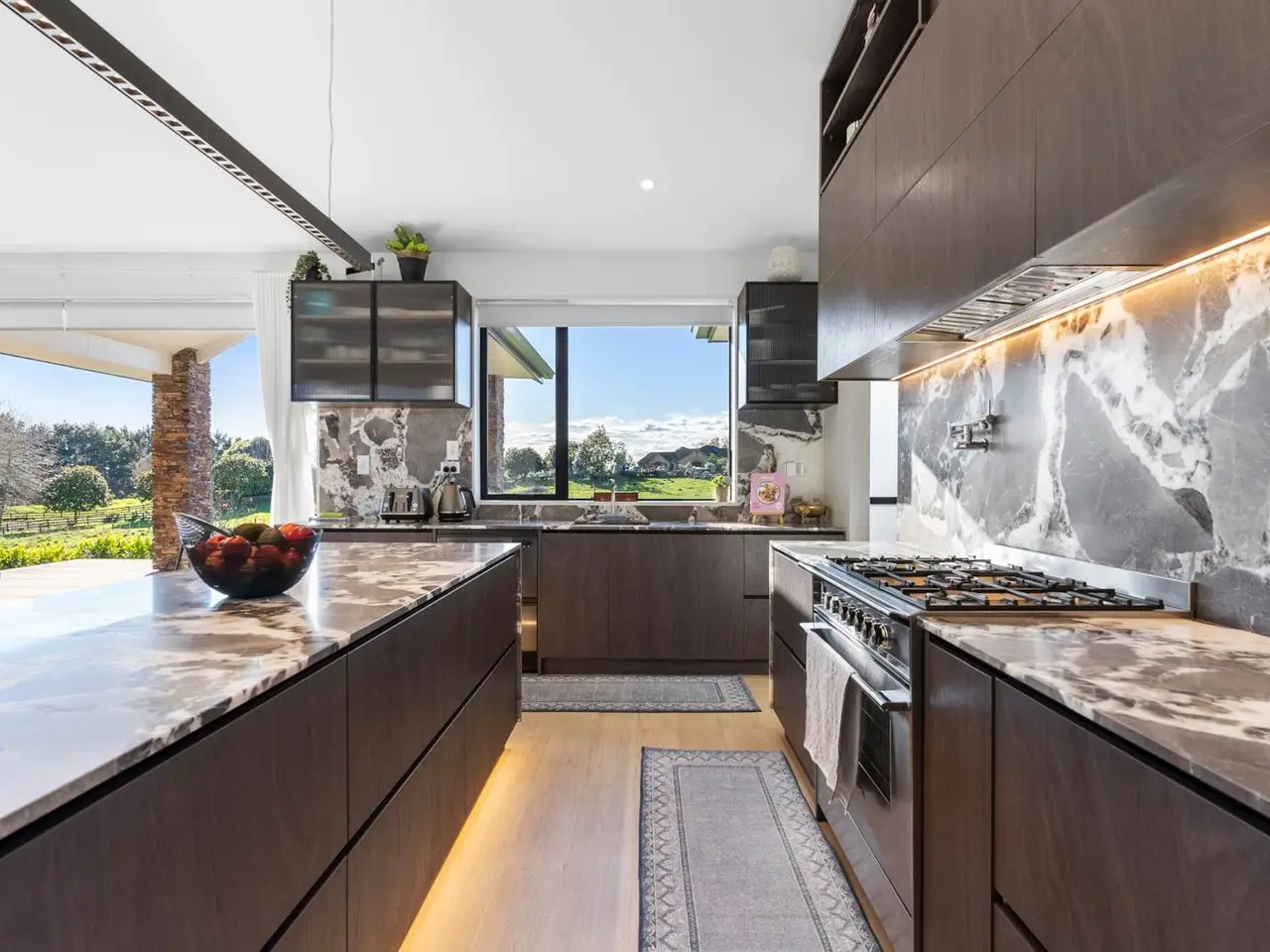 EXTENDED FAMILY, GUESTS OR RENTAL INCOME OPTION Two sets of electric gates and a drive-through portico herald arrival at this excellently designed, recently completed approx 355 square metre (over framing) residence and its secondary approx 65 square metre (over framing) 2 bedroom self-contained unit at the end of the continued concrete driveway. Residing on 2605 square metres with a desirable north-facing aspect, this single level, solid brick with shingle roof home, designed by HQ Designs, was constructed by Mika Builders Limited completed in 2025 (CCC date).Boasting 2.7 ceilings, raked in the expansive open plan living area, 2.4m doors, ducted air conditioning and ceiling fans, fibre optic internet, alarm and camera systems, sensor lighting in the hall and a smart vent system are all included here. Impressive double doors open to a welcoming foyer with resin chandelier and entry into the formal lounge and open plan family living. Both these areas spill out to separate decks and gardens via sliding and stacker doors. An abundance of windows floods the living area with light while a gas fire adds a cosy ambience and comfort. The adjoining dining room flows out to elegant covered outdoor entertaining and far-reaching views from the fabulous Kwila deck with Schist stone pillars. Sleek and shiny, the adjacent show-stopping kitchen demands a standing ovation with exquisite stone benchtops and matching exposed quartz splashback, stone sink, Blum cabinetry, Hansgrohe tapware, Fisher & Paykel 900mm stove with gas burners and butler’s pantry which cleverly incorporates induction hob and adjoining the laundry and opens out to a drying area. Off the hall on the way to the bedrooms, a media room is a welcome addition and the perfect place to relax and unwind. Complete with flame effect electric fireplace and sliding stacker doors to outdoors, the master bedroom boasts walk-in wardrobe, fully tiled double vanity ensuite with bath and separate shower with rain head. Bedrooms two and three both have built-in robes and are joined via a common study nook. They share a fully tiled bathroom. Alongside, the fourth bedroom features walk-in robe and its own fully tiled ensuite with rain head shower. The hallway incorporates generous storage provision. Accessed off the foyer, the multi-functional triple lock up garage has marine carpet, loft storage and separate work from home office space. Outdoors there’s flat lawn area – great play space for kids and plenty of room for the vegie garden and whatever else. Currently attracting $600 of rental income or ideal for extended family living, the ancillary unit with heat pump and HRV, 2.7 metre ceilings and separate power meter, comprises an open plan kitchen with induction cooktop, engineered stone bench and waterfall edge, an adjoining living and dining area, two bedrooms with built-in robes, a bathroom, and lovely rural views. This home is separate and spacious. Conveniently located less than 500 metres from Karaka Primary School and in close proximity to the motorway on-ramp and community services, this home effortlessly combines ultra-stylish family living with luxurious comfort and convenience. Inspection is sure to impress! Near new home completed in 2025 (CCC date)Stunning approx 355m2 (over framing) residence. Second approx 65m2 2 bedroom unit (over framing)2605m2 property. Single level home with north-facing aspect2 sets of entry gates & portico. Split driveway to ancillary unit. Impressive 2.7m ceilings, 2.4m tall doors. Sensor hall lighting. Ducted air conditioning + ceiling fans. Fibre optic internet. Alarm & camera systems. Smart vent system. Abundant storage provision. Feature lighting. Imposing double door entry to tiled foyer with resin chandelier. Formal lounge, sliding stacker doors to private deck. Media room/rumpus. Sunlit open-plan family living/dining. Sliding stackers to north deck. Scenic large covered Kwila decked. Elegant entertaining & leisure. Breathtaking large kitchen. State of the Art design & equipment+ matching butler’s pantry incorporating laundry. Outdoor access. Chic master bedroom, deluxe ensuite, walk-in robe, garden access. Bedrooms 2 & 3 built-in robes, shared study area & tiled bathroom. Bedroom 4 with walk-in robe & fully tiled ensuite. Linen presses. Triple lock-up garage. Marine carpet. Loft storage. Home office space. Ancillary unit with separate power meter. HRV & heat pump. Open plan kitchen, living & dining area. 2 bedrooms + built-in robes. Expansive grassy play area. 2 x 25,000 concrete tanks & filtration. Less than 500m to Karaka Primary School & ACG Strathallan bus routes8.5kms to Karaka shops & community facilities. 10kms to Pukekohe Township5.5kms to north & south motorway on-ramp. 33kms to Auckland Airport Auction: 177 King Street, Pukekohe (Branch Office) on Thursday 11 September 2025 at 2:00PM (unless sold prior)
