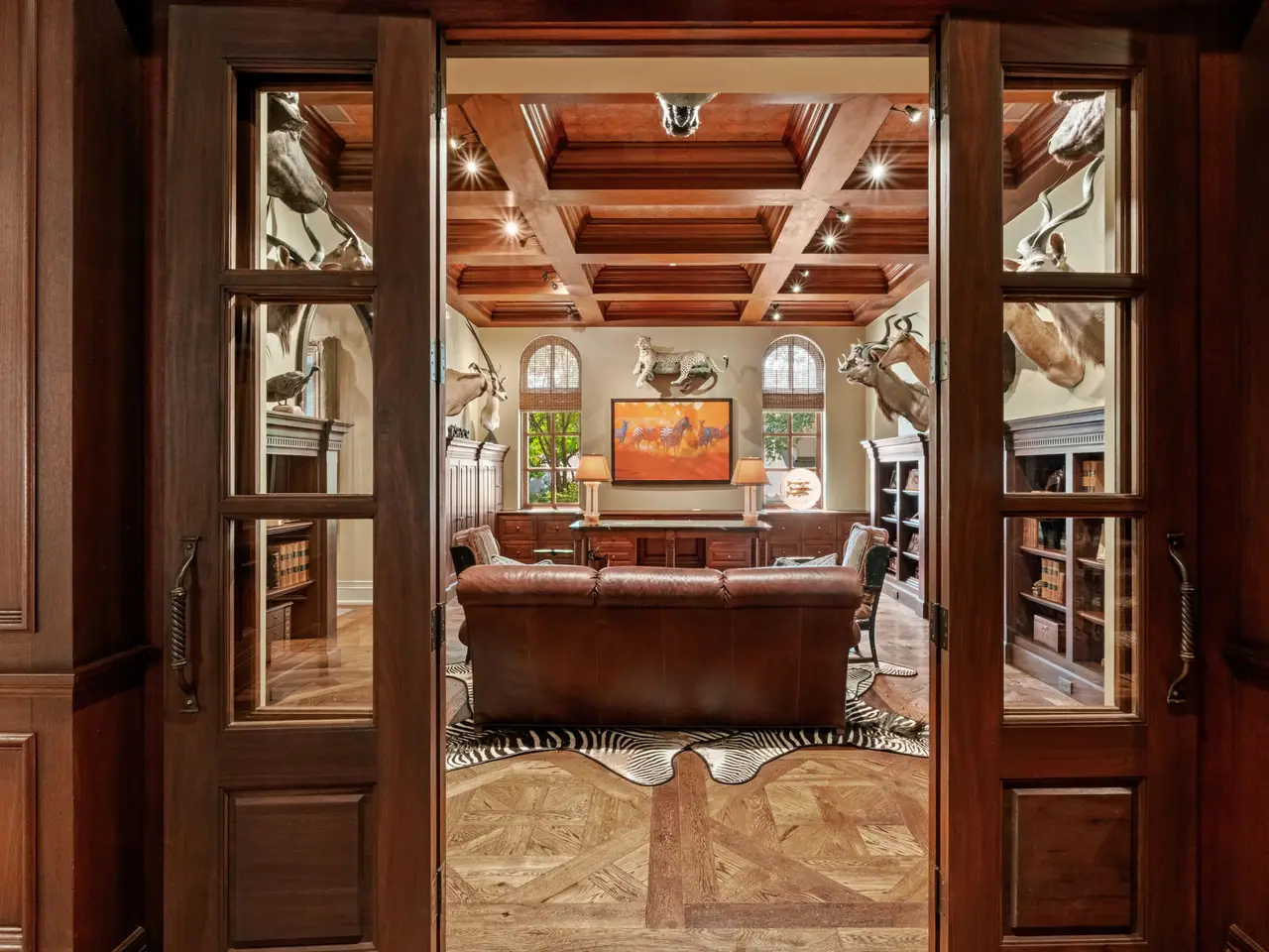 This breathtaking estate, completed in 2009 by Mauze Construction and designed by renowned architect Roy Braswell, exudes unparalleled quality and craftsmanship. With a hand-cut limestone exterior and an Italian-style barrel tile roof, complemented by full copper gutters, this home offers timeless elegance. Inside, custom finishes throughout include Palmer Todd-designed cabinets in the kitchen, bar, primary bath and primary closet. The primary closet is larger than most bedrooms and has two islands the make packing a breeze. Boasting 4 bedrooms, 4 bathrooms, and 4 powder baths, it offers 12-foot ceilings, 4 fireplaces, and a beautiful family room featuring a hand-carved mantel and hand-painted wood beams. The outdoor living space is a true highlight, offering a 1,238-square-foot lanai with 3 fully retractable custom Koaba wood doors, a fully equipped outdoor kitchen, and a cozy fireplace. This is the finest outdoor living area you will ever see. The lower level wine room, complete with custom iron doors to the wine cellar also has a powder room and a catering kitchen. You can walk outside and take the beautiful stone staircase to the lanai. . A private office, custom bar, and spacious family room add to the home®s appeal, while the primary bath with heated floors, a coffee bar, and retractable doors opening to a patio overlooking the pool ensures a spa-like experience. Further luxury is found in the 5-car garage, a separate apartment above the garage, and a gorgeous backyard with a pool, koi pond, and lush oaks. With advanced systems like Lutron lighting, Creston controls, and a mosquito nix system, this estate is a true masterpiece. - 4/4/2025 8:01:20 AM