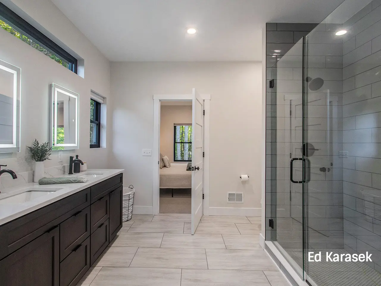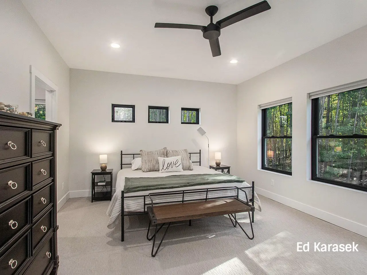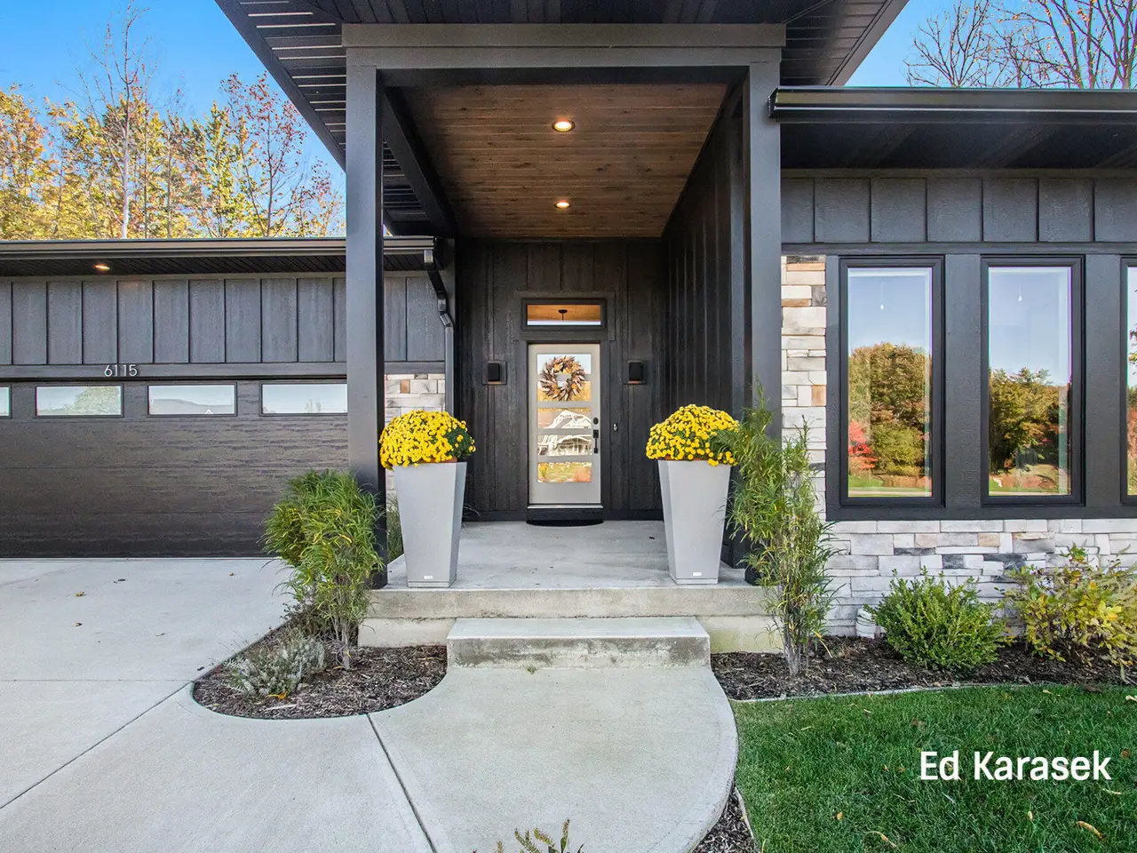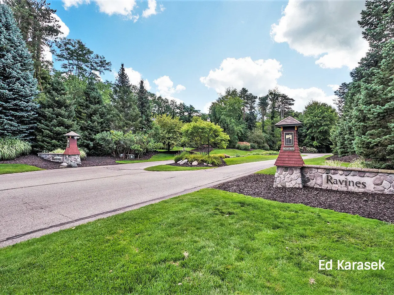 Stunning contemporary ranch in The Ravines, Southwestern Michigan's premier golf community. Set on 1.1 wooded acres, this like-new walkout home offers approx. 3,700 sq ft finished living space with three bedrooms, three full baths, exercise room, and flexible office/bedroom. Enjoy open-concept living, 9' ceilings, engineered hardwood floors, fireplace centered Great Room, a spacious kitchen with custom cabinetry and stainless appliances, and a dedicated pantry accessible from the three-car garage. Ensuite primary bedroom and bath featuring dual sinks and custom tiled shower, with spacious walk-in closet. Lower level features a family room with kitchenette and walkout access, plus a hot tub. Community amenities include private road maintenance, snow removal, trash/recycling, in-ground pool, and sewer infrastructure. Minutes to downtown Saugatuck, Holland, and Grand Rapids--close to beaches, dining, and entertainment. Short-term rentals not allowed, preserving the peaceful setting.