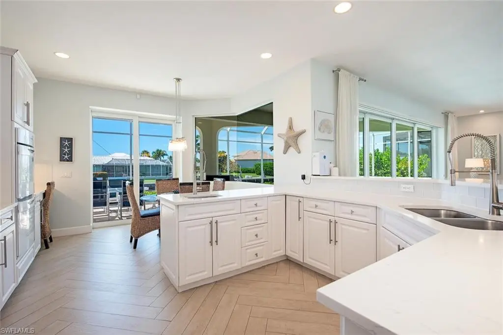 Welcome to a boater’s paradise! This stunning two-story waterfront home offers direct gulf access and breathtaking canal views, perfect for relaxation and entertaining. With a southern exposure saltwater pool and spa that are designed for all-day sun and a beautiful waterfall feature, you'll have your ideal outdoor oasis. Inside, the home features four spacious bedrooms each with an en-suite bath plus a versatile den, two half baths, and a two-car garage. Soaring ceilings and expansive windows fill the space with natural light, while new impact doors and windows provide both aesthetic appeal and storm protection. The chef’s kitchen is outfitted with elegant white shaker-style cabinetry, quartz countertops, and a stylish tile backsplash. Top-of-the-line appliances include an electric cooktop, double wall oven, microwave, refrigerator/freezer, and dishwasher. The cozy breakfast nook, with its bay window overlooking the water, is the perfect spot to enjoy your mornings, while the formal dining area flows seamlessly into the airy great room, which features glass sliders that open to the expansive lanai. The private owner’s suite offers serene water views and direct lanai access. The luxurious en-suite bathroom features pocket doors, a double-sink vanity, a walk-in shower, a soaking tub, and a spacious walk-in closet. Upstairs, a staircase leads to a loft area with an open balcony overlooking the canal. Three generously-sized guest suites, each equipped with en-suite baths, ensure that your visitors have plenty of comfort. Designed for maximum enjoyment, the screened lanai includes a covered seating area, an outdoor kitchen with a sink and shower, making it an ideal space for entertaining. Boaters enjoy boating through the prestigious Estates and Caxambas Pass to the Gulf. Just moments from Marco Island’s pristine beaches, boutique shopping, fine dining, and golf courses, this exceptional residence offers the ultimate blend of coastal tranquility and island living. Don’t miss out on your dream home on the water!