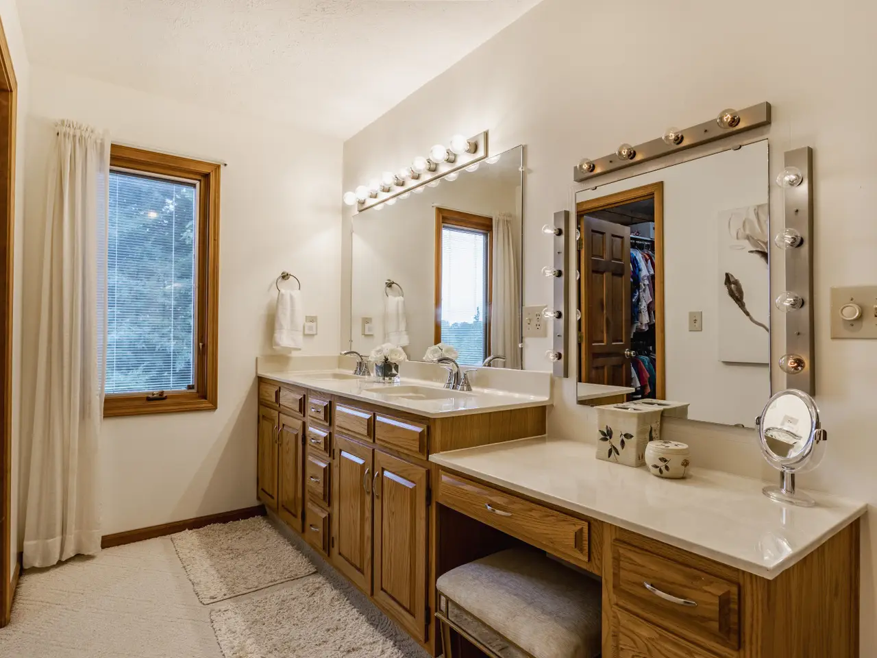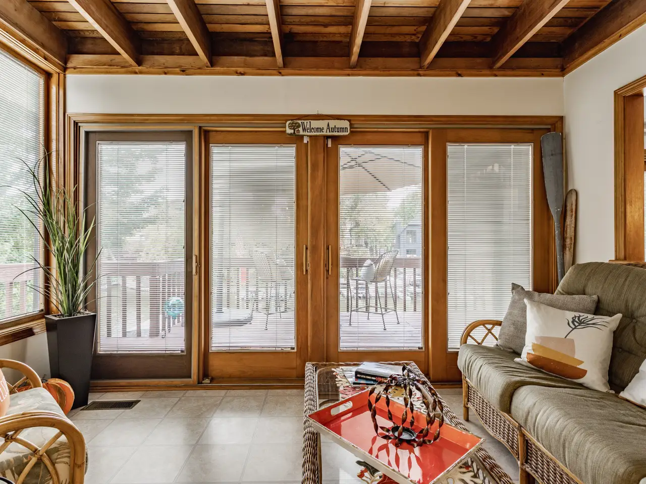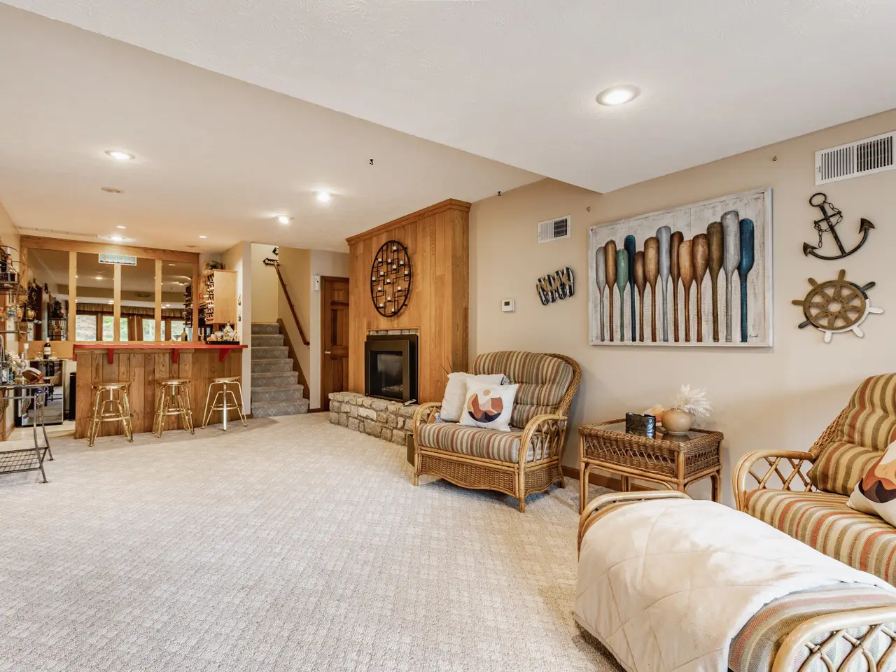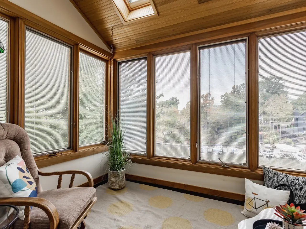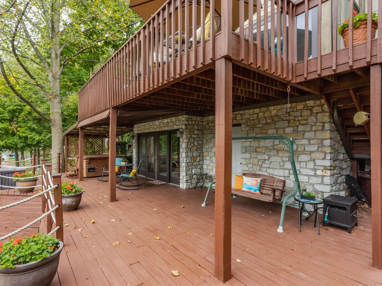 Welcome home to lake life at its best- where comfort meets tranquility on the water! Nestled on a quiet cul-de-sac, this beautiful lakefront home offers spacious living and stunning views. The main level features a two-story great room with vaulted ceilings, new carpet, a two-story stone gas fireplace, and access outside to a multi-level deck-perfect for relaxing or entertaining by the water. The kitchen showcases stainless steel appliances, marble countertops, and a charming garden window, flowing seamlessly into the eat-in area and sunroom, where you can enjoy lake views. Two bedrooms are conveniently located on the main level. Upstairs, a cozy loft overlooks the great room-an ideal reading nook or quiet retreat. The primary suite features another cozy fireplace, its own sunroom with automatic skylights, blinds, and screens-perfect for enjoying your morning coffee with a peaceful lake view. Primary also includes an on-suite bathroom with an oversized marble tub and shower with dual showerheads. The cedar-lined closet includes a hidden door for extra storage. The walk-out basement opens to a beautiful deck designed for entertaining, complete with a hot tub and relaxing lake views. Inside, you'll find a wet bar, gas fireplace, flex room, and generous storage areas-perfect for both gatherings and quiet evenings in. Step outside to enjoy your private boat dock with canopy and one lift, ideal for effortless lakeside living. Recent updates include a new roof and new AC unit, both completed in 2023.