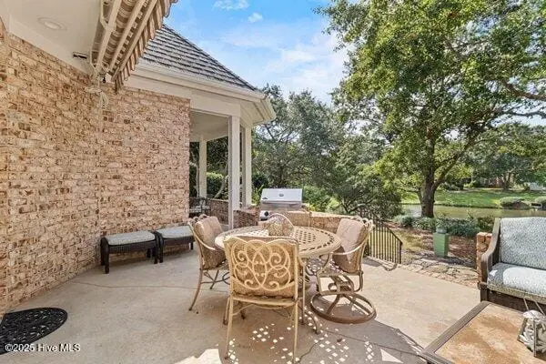 Meticulously maintained brick residence in the private, gated community of Landfall offering low maintenance living with all bedrooms on the main floor and thoughtful updates throughout. This home features a bright, open layout with hardwood floors, a spacious living room with custom built-ins, a gas log fireplace, and a formal dining area that flows seamlessly for dinner parties or gatherings.The guest bedrooms are generously sized with recently updated carpet, while the master suite impresses with two closets and an ensuite bath featuring a water closet, double vanities, and a walk-in tile shower. The kitchen, designed for both style and functionality, is equipped with stainless steel appliances, a prep sink in the island, gas cooktop, and dining area for casual meals. Upstairs, a versatile bonus room includes a full bath and heated storage room, with a walk-in attic providing additional, easily accessible storage.Outdoors, a partially covered back porch with built-in gas grill overlooks the pond, creating an inviting space for entertaining or quiet relaxation. Additional features include a two-car garage and sealed crawl space with dehumidifier, all within one of Wilmington's most sought-after gated communities.