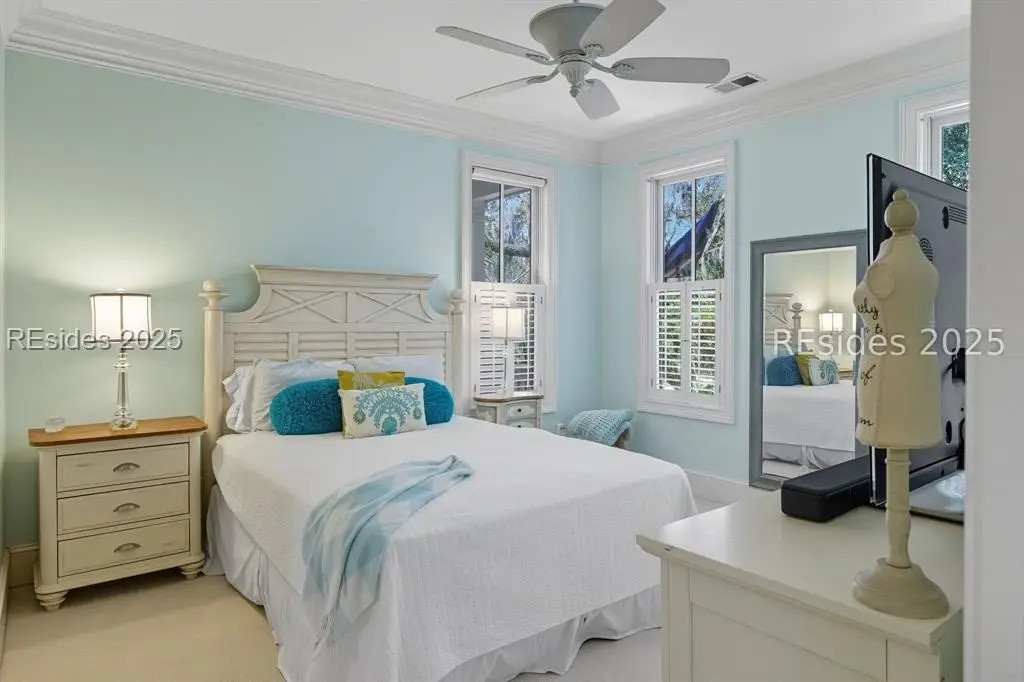 This stunning 3-story, 3,194 sq ft home in Haig Point offers an unparalleled blend of luxury, comfort, and breathtaking views. With 4 bedrooms, 4 full baths, and 2 half baths, this residence captures sweeping panoramas of the iconic 5th hole of the Signature Course along with unbelievable Calibogue Sound vistas. Designed for effortless entertainment, the open-floor plan features a chefs kitchen, formal dining room, multiple living areas, custom built-ins, and a cozy fireplace. The picturesque staircase and dedicated office add charm and function, while spacious baths and multiple primary suites provide exceptional comfort. The second-floor suite's private balcony frames serene waterfront and golf views, creating a retreat within a retreat. Outdoor living shines with a wide screened porch, grilling deck, and detached cart garage. A walk-in attic adds both storage convenience. Whether hosting gatherings or enjoying quiet moments, this property delivers both elegance and ease. Enjoy island living without the crowds in this rare coastal retreat on a bridge-less island, where every day feels like a private getaway. Haig Point offers a park-like setting of open spaces, centuries-old oaks, and sweeping water views, with amenities including a Rees Jones Signature 20-hole golf course plus a 9-hole course, racquet sports, equestrian facility, fitness center, pools, and dining. Stroll for miles along uncrowded beaches or enjoy seamless mainland access with a private ferry and 24/7 water taxi to Harbour Town. With 24/7 security, daily UPS and FedEx delivery, Instacart to your door, and even dry-cleaning pickup, this unique community blends privacy, luxury, and convenience.