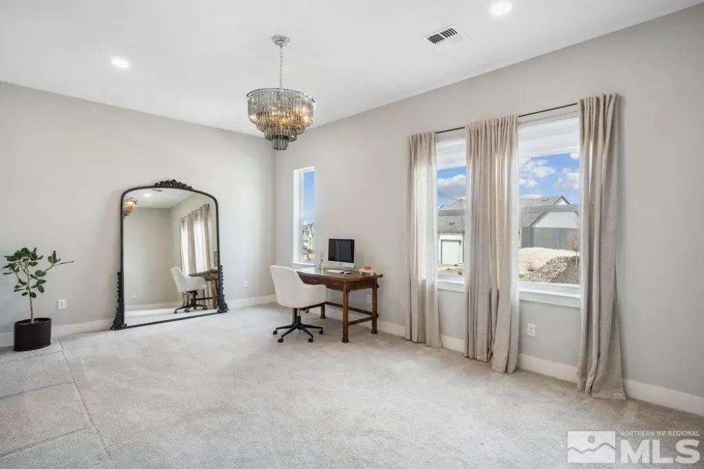 STUNNING AND MODERN masterpiece! You'll find timeless luxury and high-end living in this fabulous single-story home. Open floor plan concept, soaring ceilings, dedicated office (not included in bedroom count), and so much more. Extensively landscaped including a retaining wall, covered and uncovered patio area, and a gated dog run. The three-car garage has been upgraded to include 16 commercial electrical outlets. Lovely views of Mt Rose from the back yard. Top notch HOA amenities!