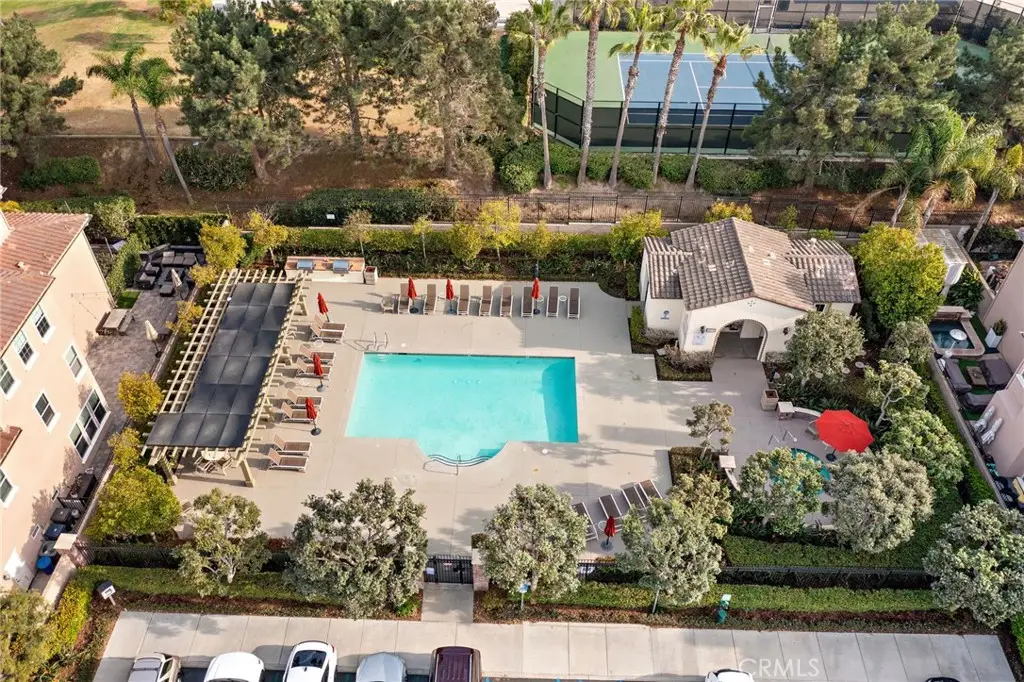 This stunning home, nestled at the end of a quiet cul-de-sac in a desirable gated community, offers unparalleled privacy and tranquility. With 4 spacious bedrooms and 3.5 bathrooms, the home provides the perfect balance of comfort and functionality. The open-concept family room, bathed in natural light, features a sleek, built-in entertainment center, ideal for relaxing or entertaining. High ceilings and large windows enhance the bright, airy feel throughout. Two primary suites offer private retreats, each with its own ensuite bathroom. The property backs directly to Greer Park, with no neighboring properties next to it, ensuring a serene and secluded environment. The two-car attached garage adds convenience and extra storage. Outside, enjoy an expansive backyard with an in-ground spa, firepit, and towering trees that enhance your privacy. Residents also have access to the community's association pool, completing this luxurious, private retreat.