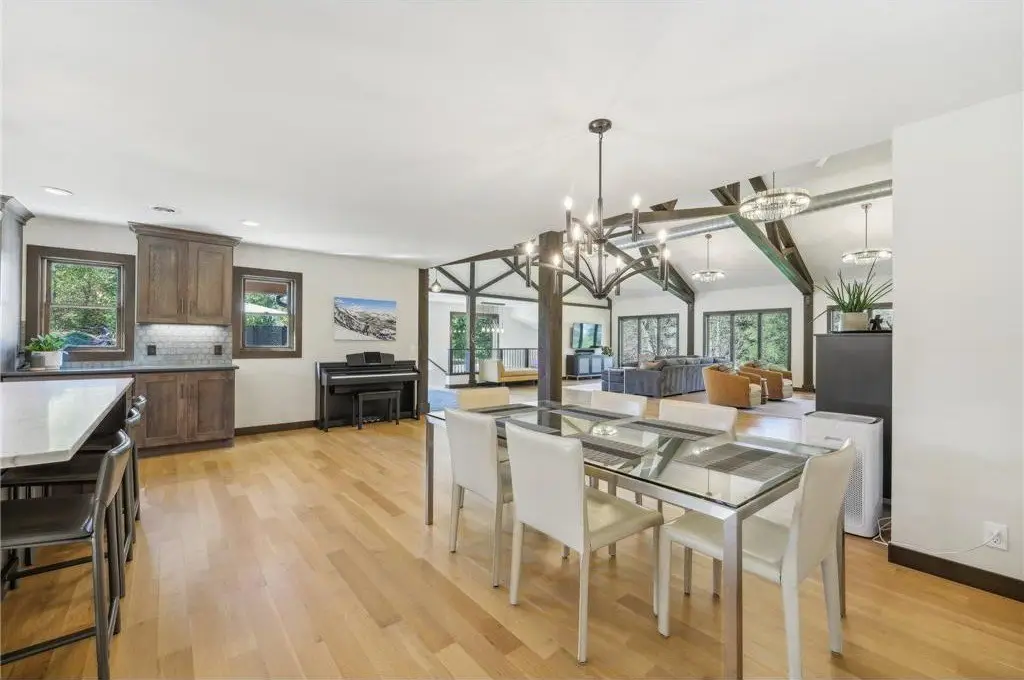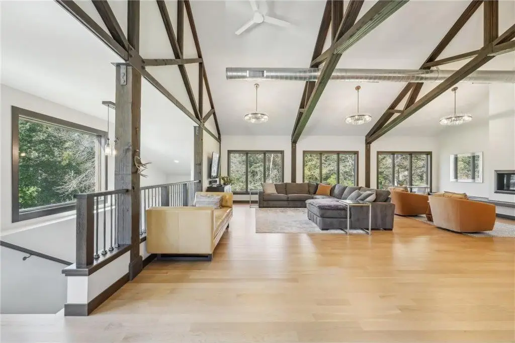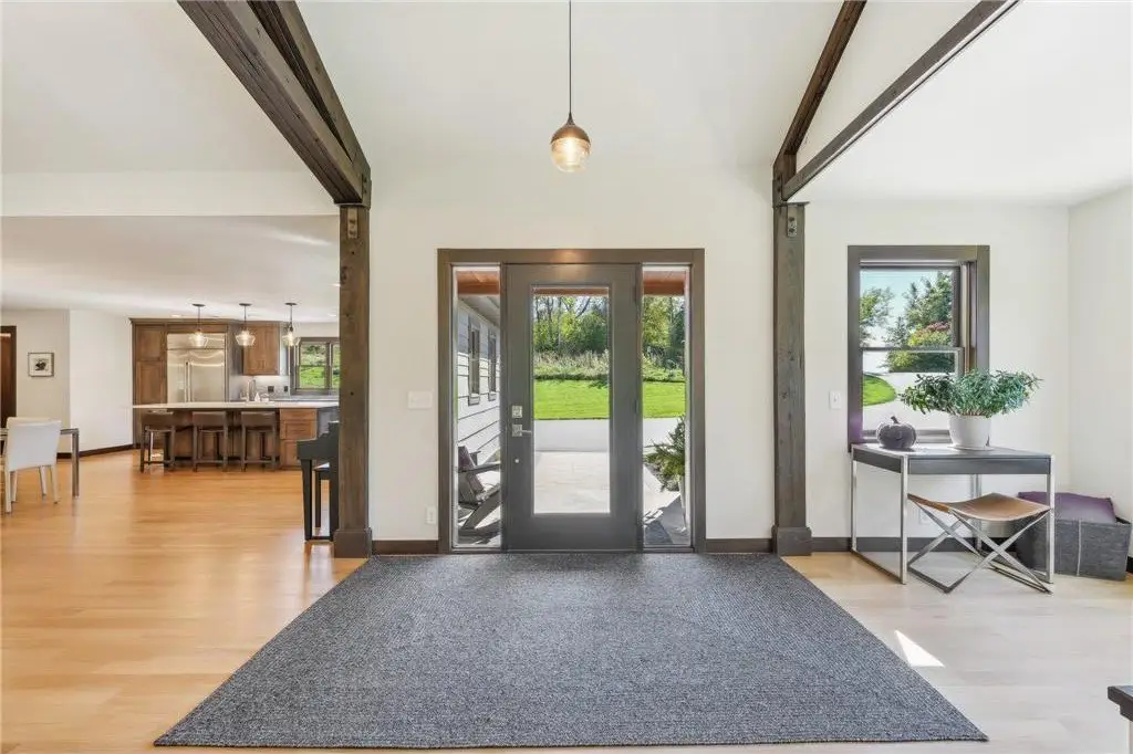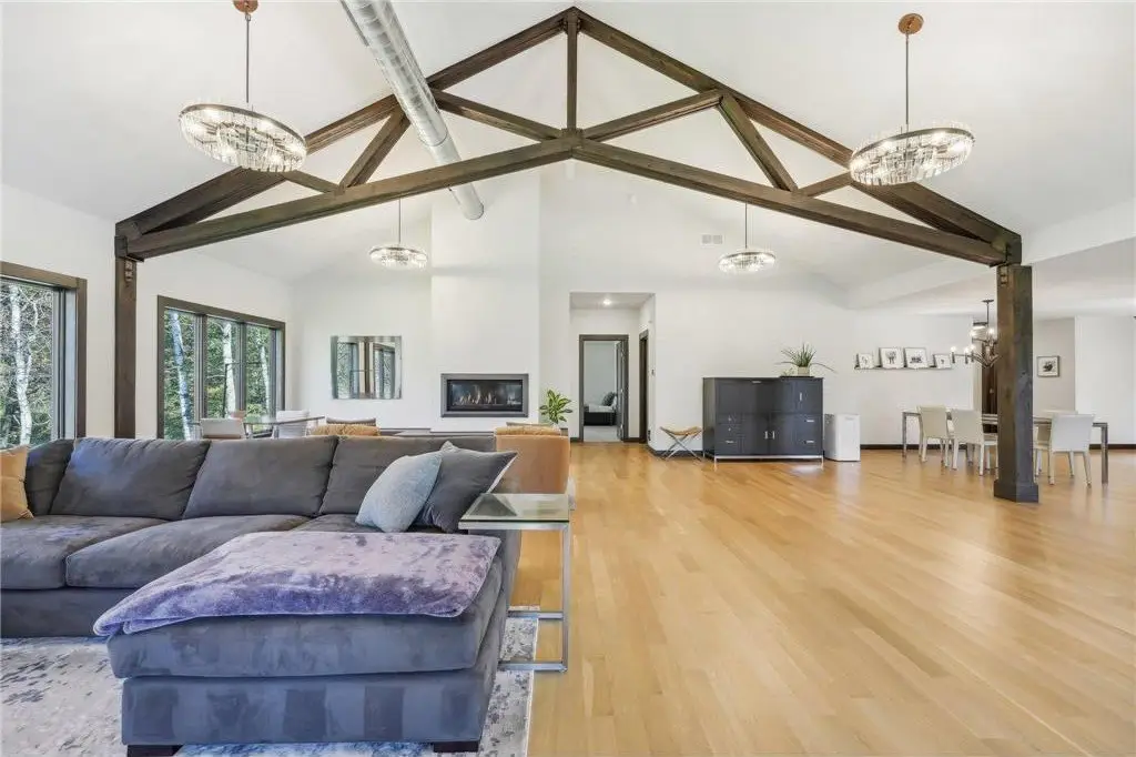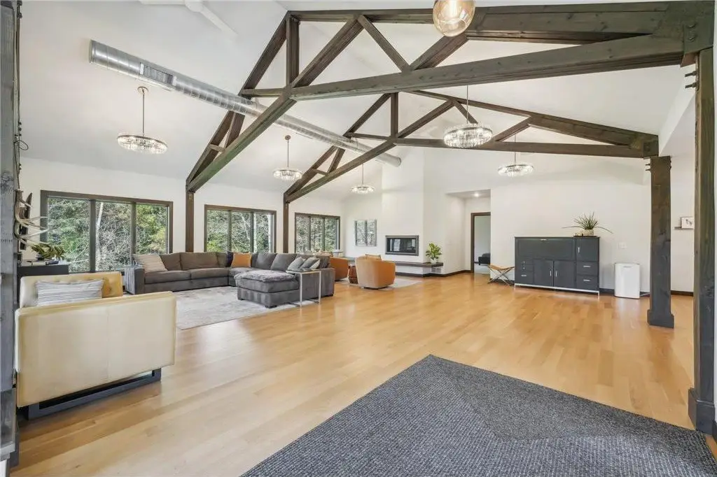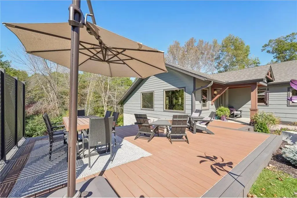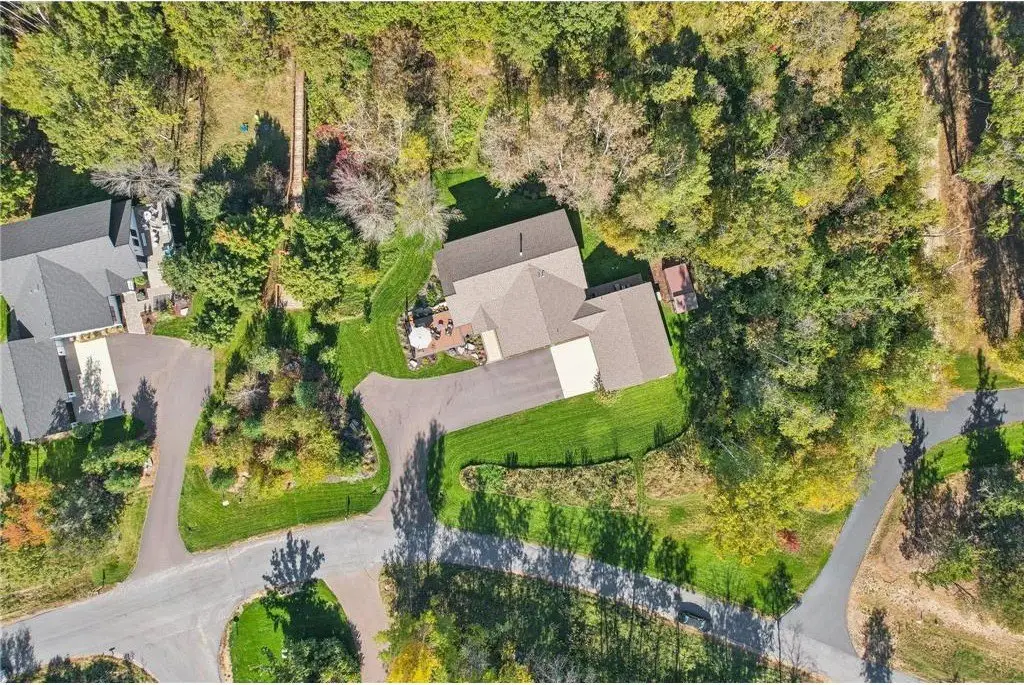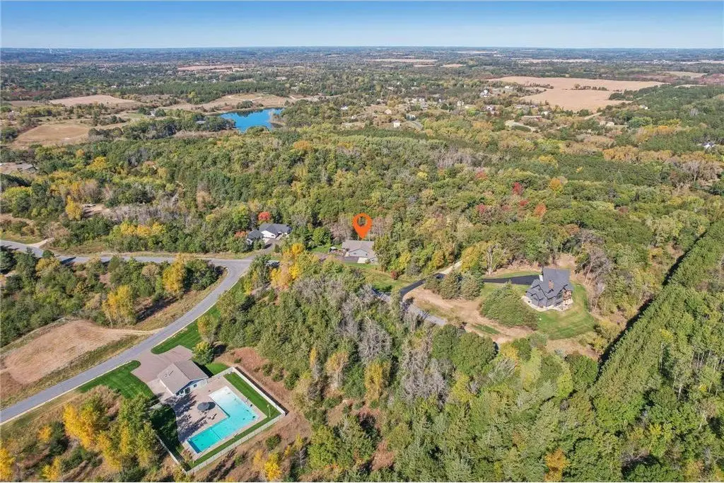 Nestled on 5+ Acres of serene, wooded land, this masterfully crafted custom-built home boasts high-end finishes & intricate details at every turn blending luxury with tranquility. The main level open concept design offers floor to ceiling wood beams with exposed ductwork, expansive windows inviting an abundance of light & modern amenities with Old World elegance. Your Gourmet Chef’s Kitchen with large Quartz center island opens to the Dining & Great rooms perfect for entertaining colleagues, friends & family. The Main level offers your primary ensuite with two walk-in closets, double sinks, soaking tub & large tiled walk-in shower. Your primary suite is your sanctuary featuring large corner windows for viewing. Main level laundry/mudroom too. All newly renovated interior & exterior in 2019. This is your private retreat, formerly known as Camp Rolling Ridges of St. Croix Valley Girl Scout Camp & now known as Crane Hill. Enjoy the sunset, beautiful trees, wildlife & trails throughout your private property. Also included in your private acreage is 1 bathroom building, another 2nd bathroom building converted to storage with overhead garage door, 6 covered Pavilions, a woodshed and a new chicken Coop with Run. Nice 40 x 30 heated finished att. garage w/zero entry to home. Private screened maintenance free decking, professional landscaped & irrigation. Shared community heated zero entry pool & rec center for parties. A Truly one-of-a-kind property to call home. Located just minutes from Willow River State Park, Downtown Historic Hudson & the St. Croix River! Quick 94 access to Mpls, St. Paul.