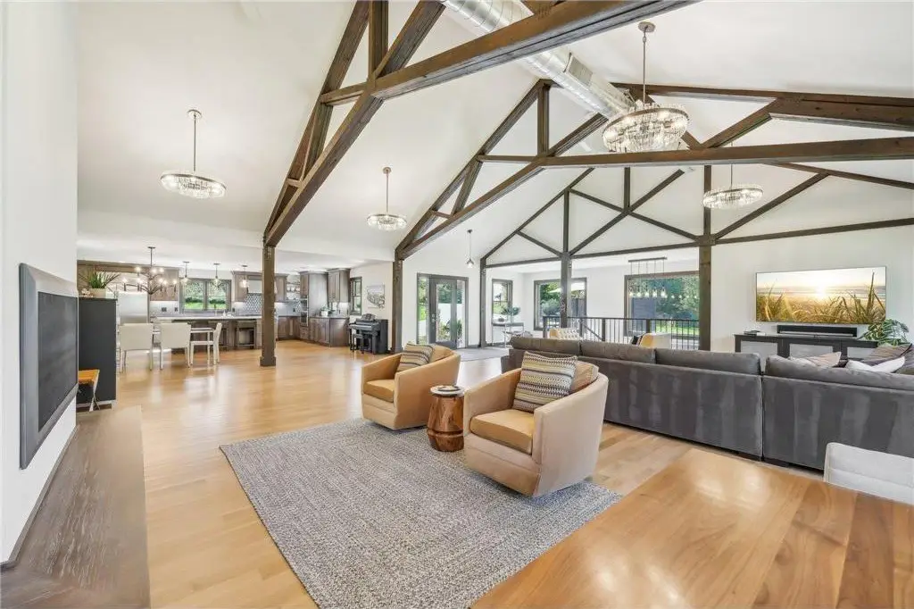 • Floor to ceiling wood beams with exposed ductwork