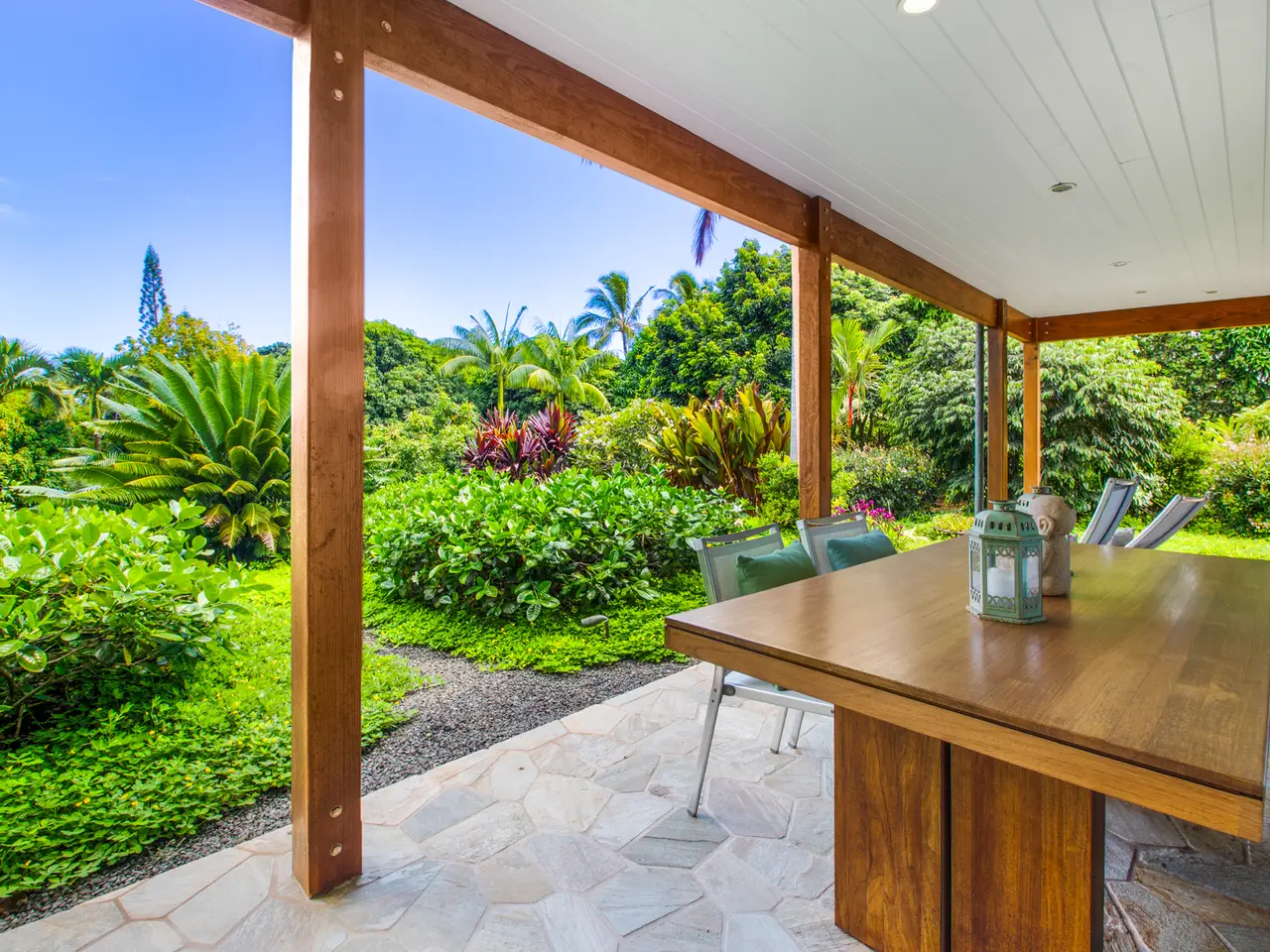Set above one of Kauai’s most iconic stretches of coastline, this 1.3-acre property offers private, deeded access to coveted Secret Beach via a scenic footpath. Built just 10 years ago and meticulously maintained by its original owner, the 2,000 sqft residence is tucked into a lush botanical landscape with ocean views and a focus on indoor/outdoor living. Sapele wood flooring runs throughout, with tile and stone finishes in the bathrooms. A sculptural Sapele wood and glass floating staircase anchors the two-story layout. Upstairs, the main living space opens to an expansive lanai with sweeping ocean and sunset views. Multiple sliding doors and well-placed windows bring in natural light and steady trade winds, blending the interior spaces with the surrounding gardens. The home is fully air-conditioned and equipped with a whole-house water purification system, electric tankless water heater, and a 14-panel owned photovoltaic system. Additional highlights include a dedicated dance or exercise room, a tropical outdoor shower off the half bath, and copper gutters and trim. Infrastructure is in place to support future additions, including underground electrical for a potential pool. An attached garage and carport offer ample storage for all the gear needed to enjoy Kauai’s outdoor lifestyle. Select custom furnishings are included, and concept plans are available to expand the residence into a 3-bedroom, 3.5-bath estate. A private, well-executed retreat in one of the North Shore’s most sought-after locations—just minutes from Kilauea town, the historic lighthouse, world-class golf in Princeville, and a collection of Kauai’s finest beaches.
