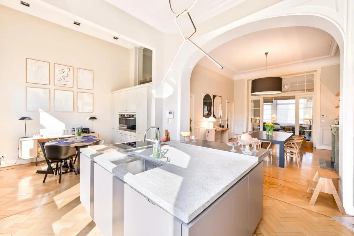 Just a stone's throw from Place Brugmann, on one of Brussels' most iconic avenues, this mansion charms with its stunning 7.5-metre French stone façade, refined architecture and south-facing city garden (plot of ± 3 ares). With a living area of ± 520 m², the house offers bright reception rooms, a fully equipped kitchen, an office, as well as 5 bedrooms and 4 bathrooms, including a large master suite. The sunny garden is a real haven of peace, rare at this address. A garage for two cars completes this exceptional property, which combines residential prestige and contemporary comfort in the heart of a sought-after neighbourhood. EPC: D+