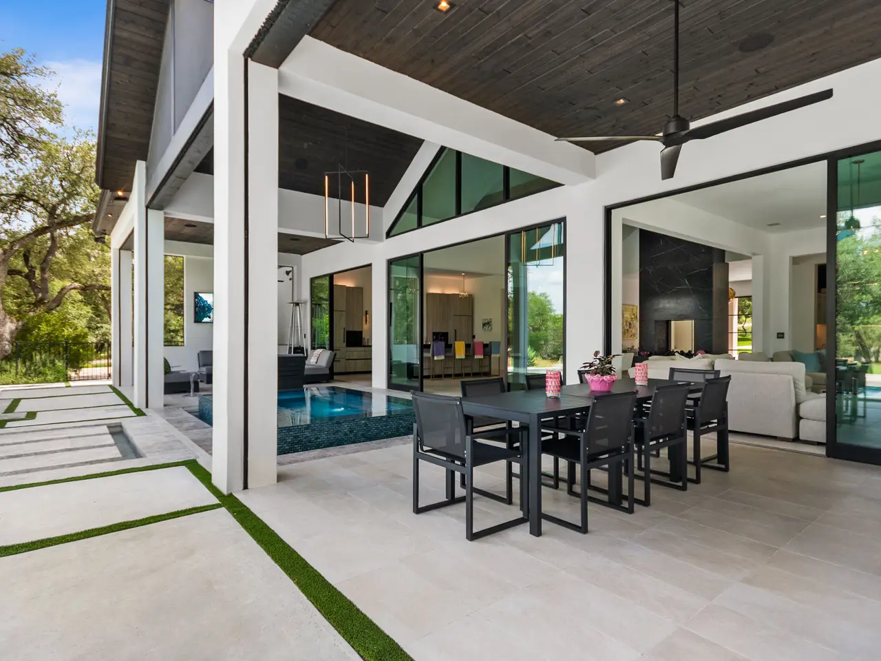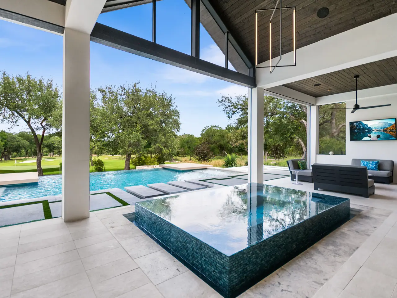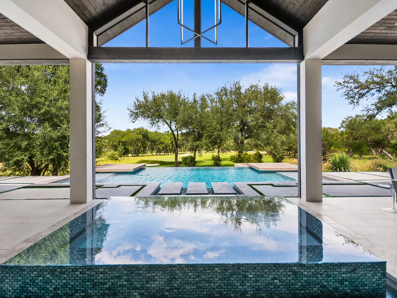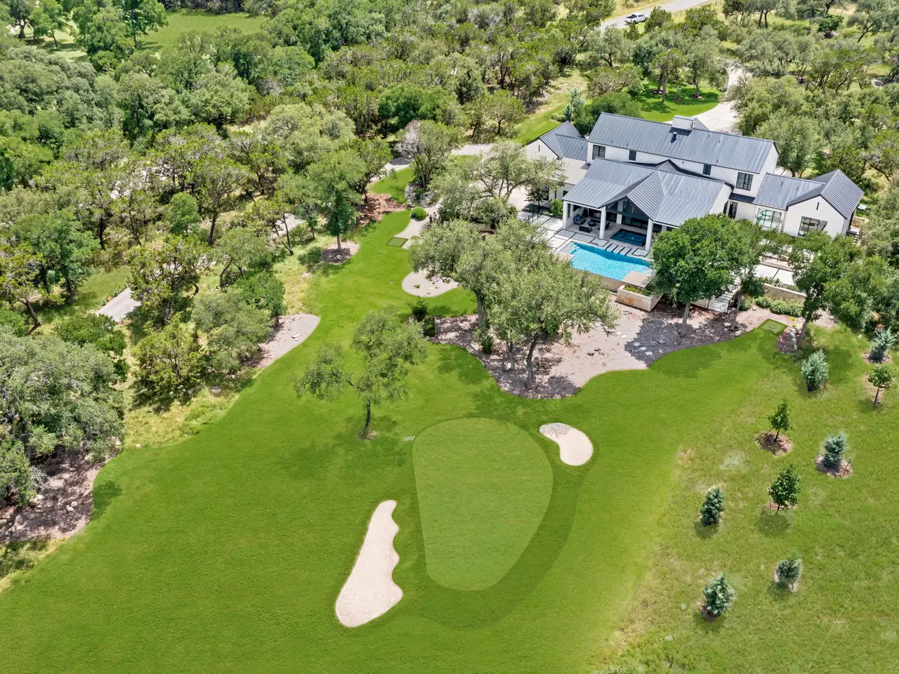 Welcome to this luxury estate featuring a transitional style home with an additional guest home and an executive par 3 golf course! With no neighboring houses in sight, this 9.6 acre gated property within Cordillera Ranch borders a river on one side and a nature park on the other side making this a unique offering in the Texas Hill Country. Both homes blend traditional architecture with striking designer finishes, smart home automation and modern comforts. Completed in 2023, both residences feature new biophilic design elements, open living areas with spacious rooms for gatherings of family & friends, vaulted ceilings with hand-hewn oak beams and expansive windows for long views of nature. 10-foot sliding glass doors that stack create an even more open and seamless indoor/outdoor living experience. Quality craftsmanship is evident throughout including Italian cabinetry by Snaidero, custom millwork, Porcelanosa marble tiled bathrooms, unique glass stair railing, floating cabinets, custom steel, wood & glass doors, floor-to-ceiling marble slab fireplace, large format limestone floors & stairs and a unique interior Living Wall featuring a variety of 170 plants with integrated irrigation for maintenance free care. Enjoy resort-style amenities in your own back yard including golf, kayaking, fishing & tubing in the river and swimming in a heated negative edge pool & spa with floating decks & sun ledges. There's even an indoor Hemlock wood sauna room! This expansive outdoor oasis provides hours of entertainment and relaxation for adults and children of all ages. The outdoor living room, cooking/dining room and negative edge spa are roof covered with outdoor heaters for year round enjoyment and protection from rain. With the touch of a button, all the electronic screens lower to enclose this outdoor patio. What fun it is to hang out in the oversized spa that seats so many friends while watching your favorite sporting event on the nearby TV! The side patio with a custom circle walkway features a unique sunken lounge with tiered built-in seating thats perfect for parties. State-of-the-art audio/visual systems, surround sound and monitored security components are strategically placed throughout both homes and patios which include indoor and outdoor TVs, hidden speakers and security cameras. Both houses offer chef's kitchens with top-of-the line appliances, stone counters, classic inset cabinetry with ample storage. Additional highlights include a coffee bar and a wine bar with quartzite counters and sink, lacquered cabinetry, 2 wine tower refrigerators, large walk-in pantry and a puppy shower in the mudroom. Artfully placed light fixtures adorn the walls and ceilings along with LeGrand designer electric components with unique shapes and metallic finishes. Combined the homes offer 6 spacious bedrooms with ensuite bathrooms, large curbless walk-in showers, 2 luxurious tubs, ceiling fans and automated curtains. The game room features a wet bar and under cabinet fridge/freezer. Enhanced by tree lighting, the professional landscaping is composed of all drought-tolerant native trees, plantings, grasses and realistic looking artificial turf for ease of maintenance. To ensure ample space for vehicles and storage, there are 7+ garage spaces. The full house generator ensures uninterrupted comfort. Such a gently used property as the homeowners have spent little time there so you receive the benefit of a nearly new estate. Master Full Golf Membership is available for purchase.