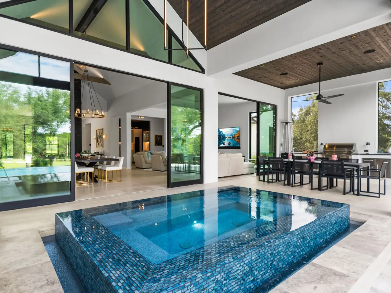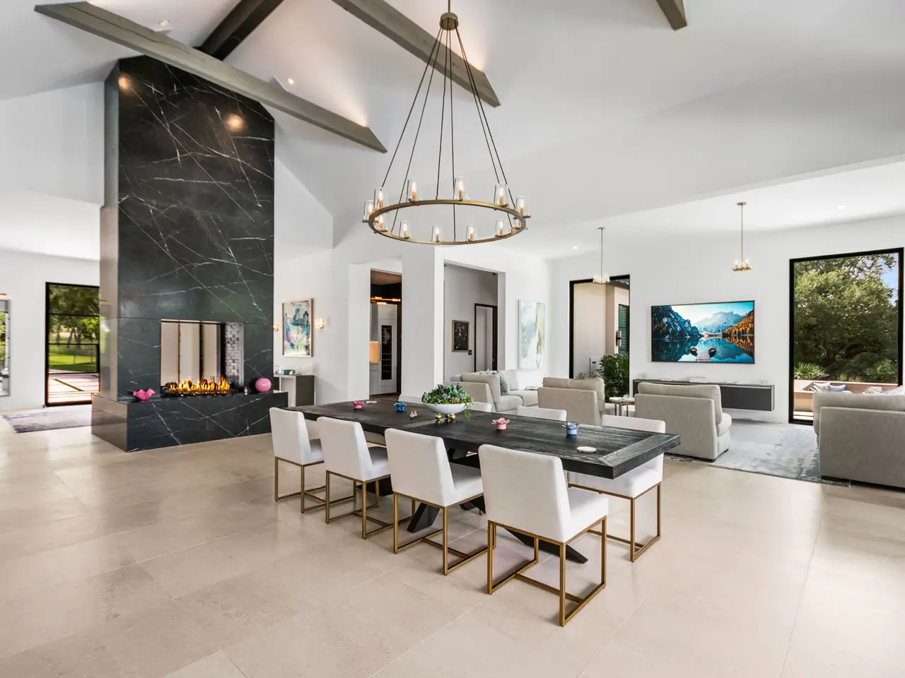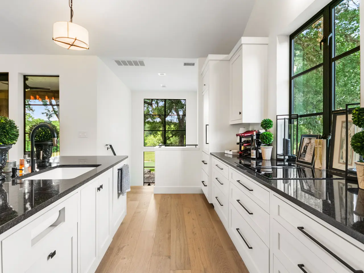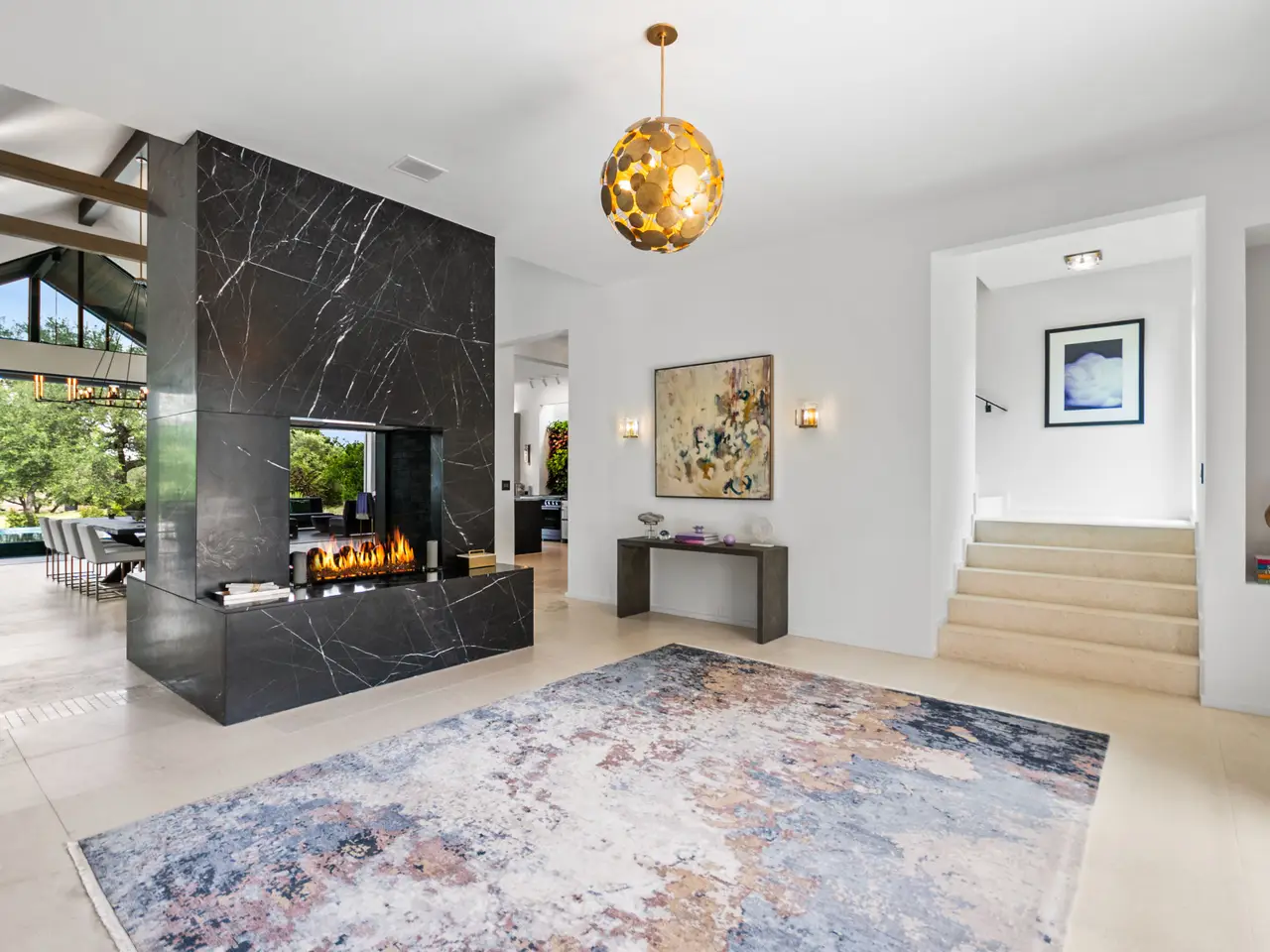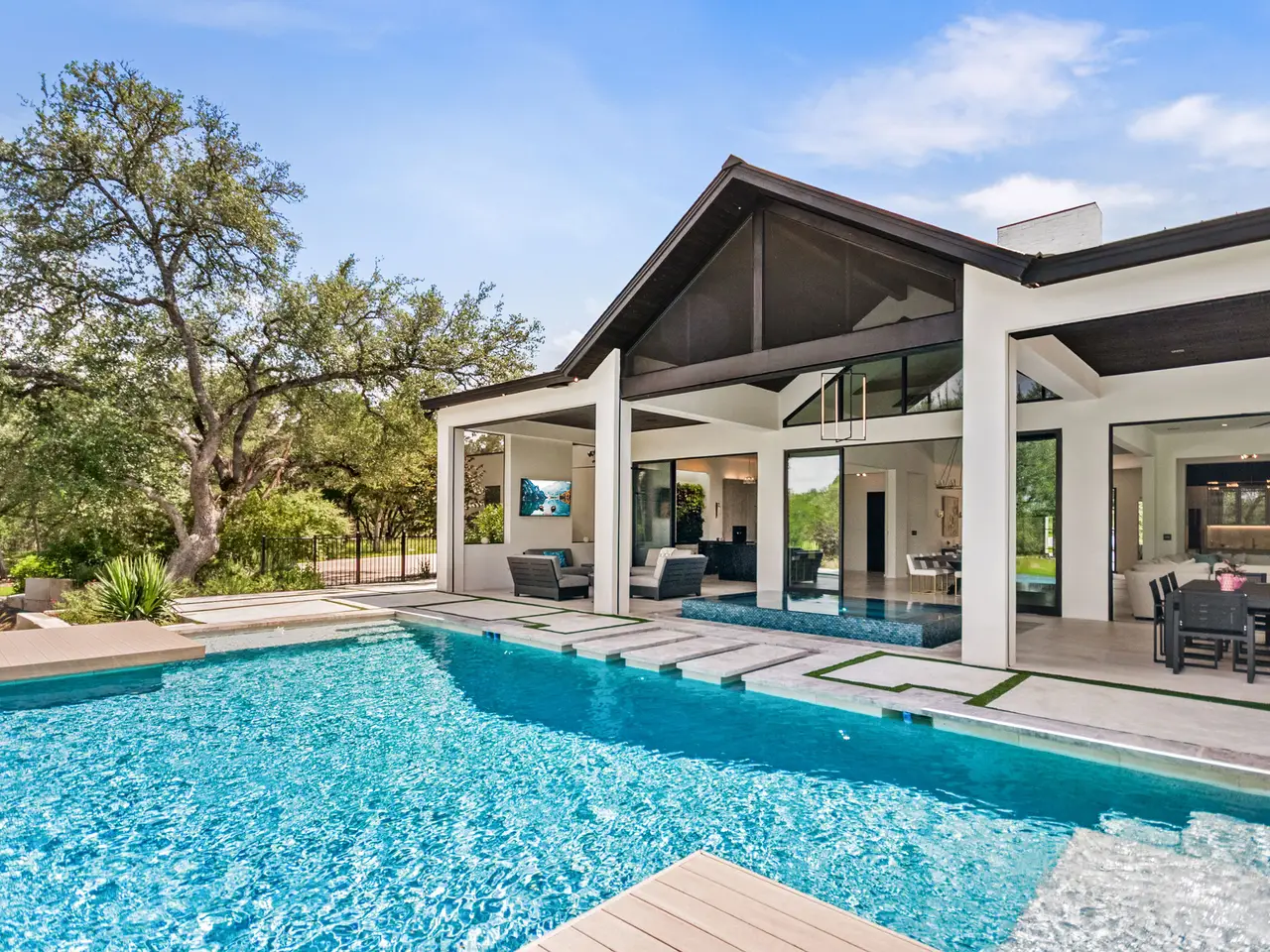 Welcome to this luxury estate featuring a transitional style home with an additional guest home and an executive par 3 golf course! With no neighboring houses in sight, this 9.6 acre gated property within Cordillera Ranch borders a river on one side and a nature park on the other side making this a unique offering in the Texas Hill Country. Both homes blend traditional architecture with striking designer finishes, smart home automation and modern comforts. Completed in 2023, both residences feature new biophilic design elements, open living areas with spacious rooms for gatherings of family & friends, vaulted ceilings with hand-hewn oak beams and expansive windows for long views of nature. 10-foot sliding glass doors that stack create an even more open and seamless indoor/outdoor living experience. Quality craftsmanship is evident throughout including Italian cabinetry by Snaidero, custom millwork, Porcelanosa marble tiled bathrooms, unique glass stair railing, floating cabinets, custom steel, wood & glass doors, floor-to-ceiling marble slab fireplace, large format limestone floors & stairs and a unique interior Living Wall featuring a variety of 170 plants with integrated irrigation for maintenance free care. Enjoy resort-style amenities in your own back yard including golf, kayaking, fishing & tubing in the river and swimming in a heated negative edge pool & spa with floating decks & sun ledges. There's even an indoor Hemlock wood sauna room! This expansive outdoor oasis provides hours of entertainment and relaxation for adults and children of all ages. The outdoor living room, cooking/dining room and negative edge spa are roof covered with outdoor heaters for year round enjoyment and protection from rain. With the touch of a button, all the electronic screens lower to enclose this outdoor patio. What fun it is to hang out in the oversized spa that seats so many friends while watching your favorite sporting event on the nearby TV! The side patio with a custom circle walkway features a unique sunken lounge with tiered built-in seating thats perfect for parties. State-of-the-art audio/visual systems, surround sound and monitored security components are strategically placed throughout both homes and patios which include indoor and outdoor TVs, hidden speakers and security cameras. Both houses offer chef's kitchens with top-of-the line appliances, stone counters, classic inset cabinetry with ample storage. Additional highlights include a coffee bar and a wine bar with quartzite counters and sink, lacquered cabinetry, 2 wine tower refrigerators, large walk-in pantry and a puppy shower in the mudroom. Artfully placed light fixtures adorn the walls and ceilings along with LeGrand designer electric components with unique shapes and metallic finishes. Combined the homes offer 6 spacious bedrooms with ensuite bathrooms, large curbless walk-in showers, 2 luxurious tubs, ceiling fans and automated curtains. The game room features a wet bar and under cabinet fridge/freezer. Enhanced by tree lighting, the professional landscaping is composed of all drought-tolerant native trees, plantings, grasses and realistic looking artificial turf for ease of maintenance. To ensure ample space for vehicles and storage, there are 7+ garage spaces. The full house generator ensures uninterrupted comfort. Such a gently used property as the homeowners have spent little time there so you receive the benefit of a nearly new estate. Master Full Golf Membership is available for purchase.