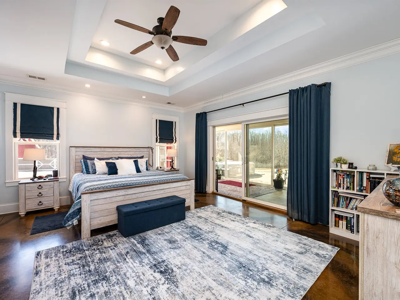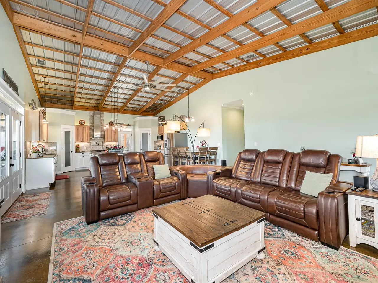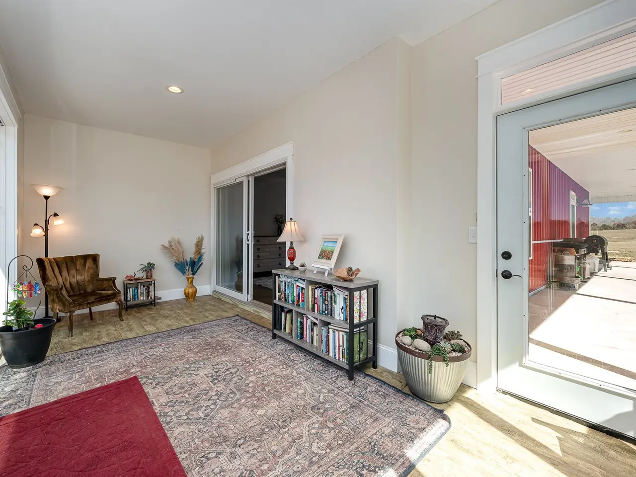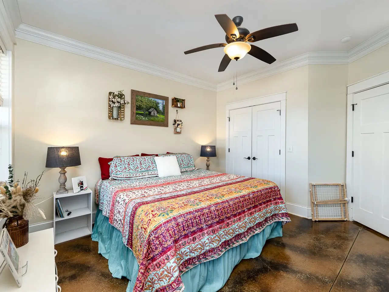 Nestled on 10 acres yet close to downtown Mooresville. Breezy open spaces, 9-foot ceilings, and distinctive custom touches throughout. Gourmet kitchen with custom concrete countertop inlaid with glass, stained concrete floors. Striking stone fireplace in the great room. The spacious hobby/craft room is perfect for creating. Those needing serious workspace, the 4,000 sq. ft. shop is an absolute dream! Complete with an office that could double as a studio apt, fully equipped with 3-phase inverter & 110 receptacle wiring, Multiple outlets for welding/machinery, Fully plumbed for compressed air, plus an Ingersoll Rand 80-gallon air compressor, Three 12'x10' roll-up doors, 15' eave height, and a vaulted ceiling with a 21' center height, 1,500-lb hydraulic 2-post lift. Walk through the woods to your private retreat. 532 sq. ft. off-grid oasis powered by solar backup, heated by woodstove, with kitchen, great room, and sleeping loft. Eligible to be annexed to MGSD.