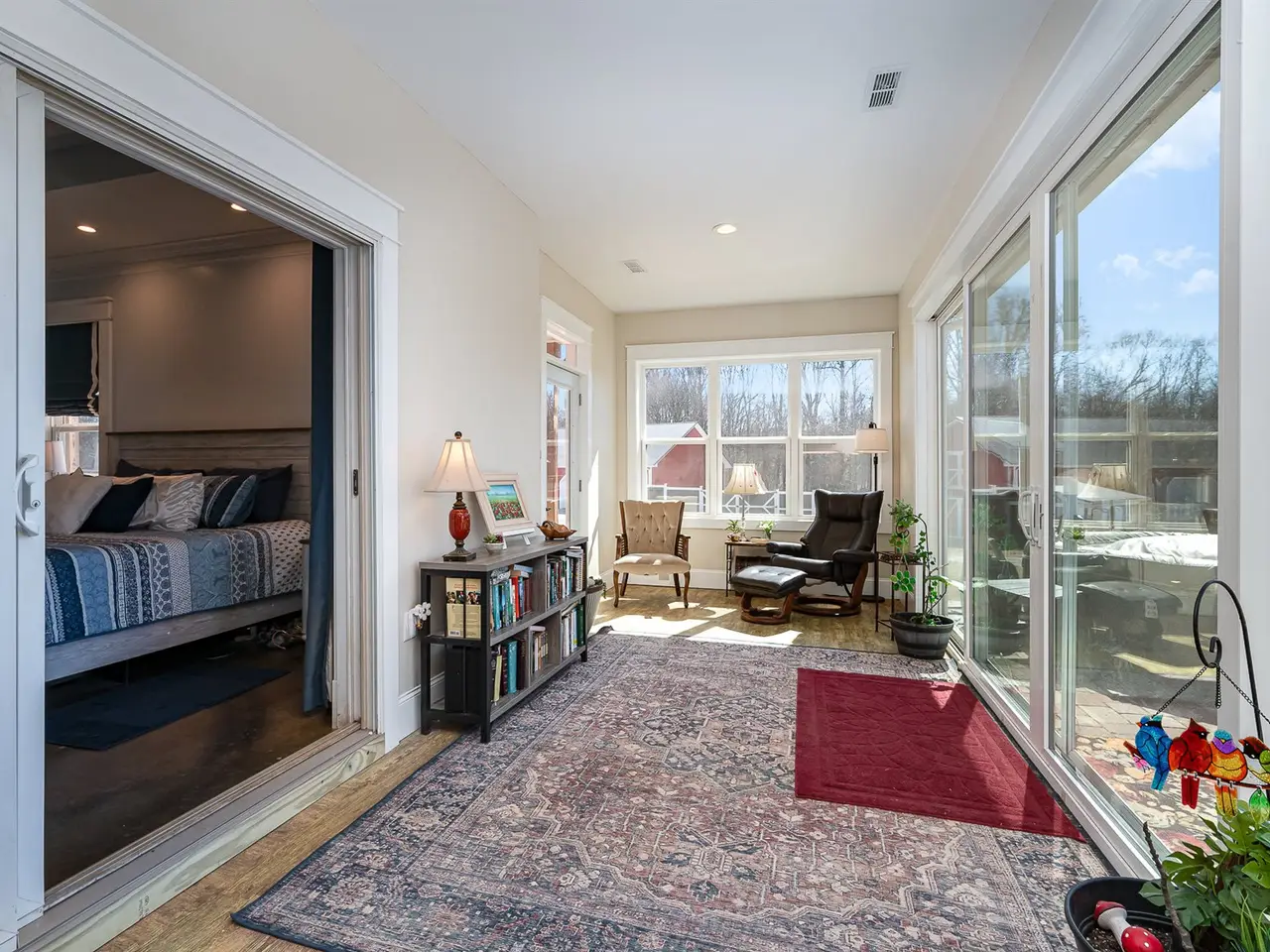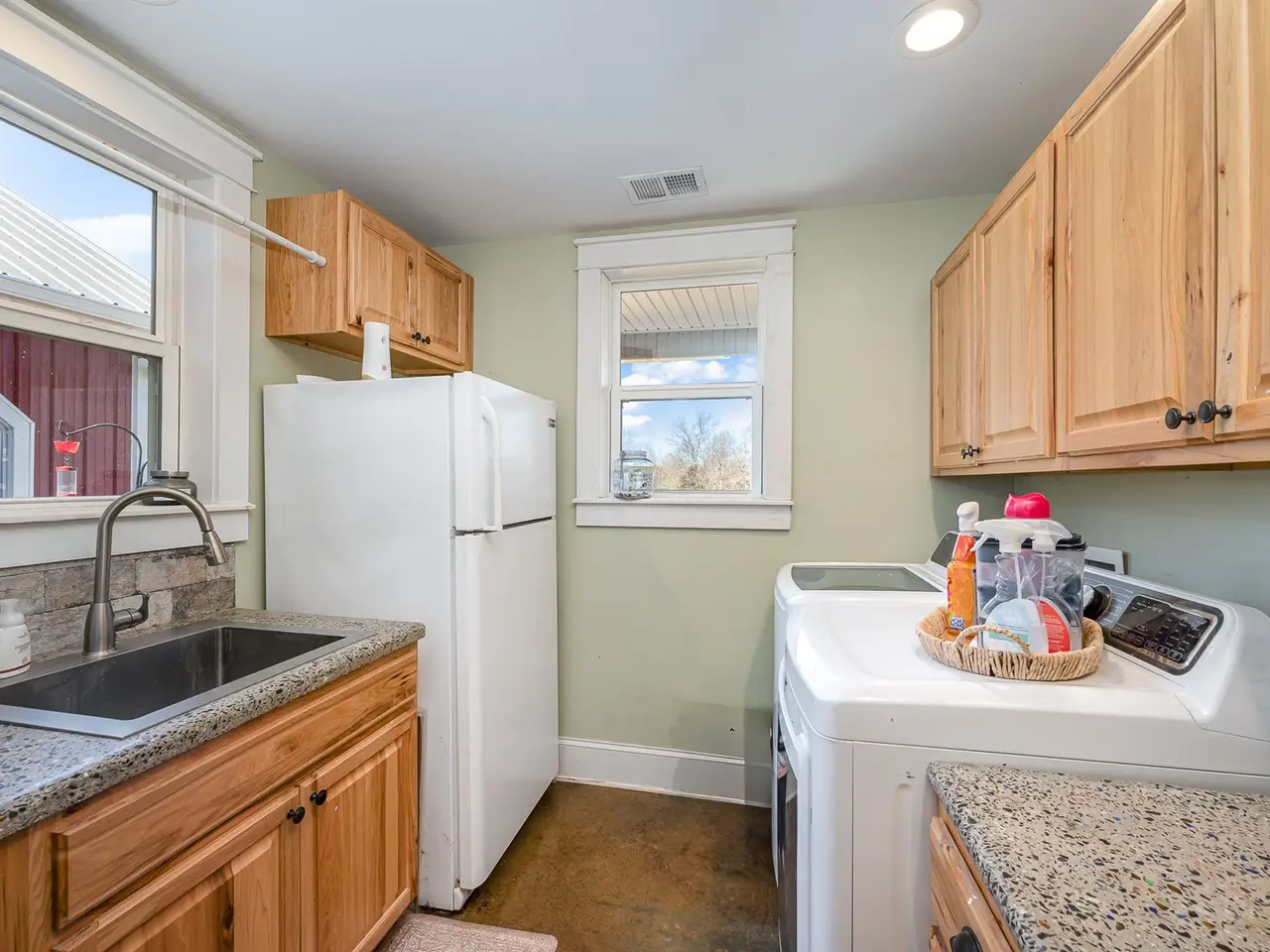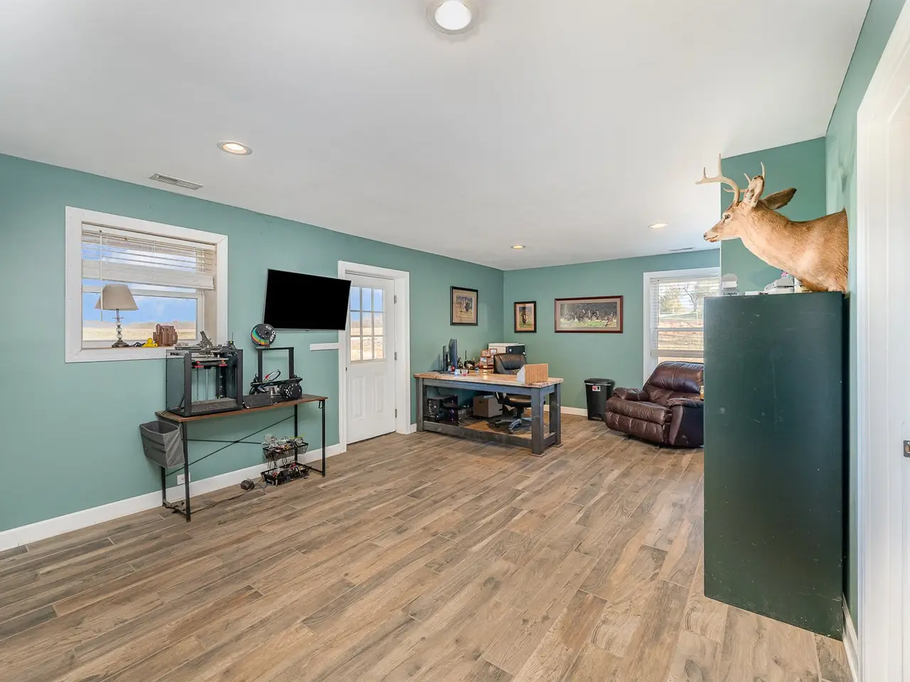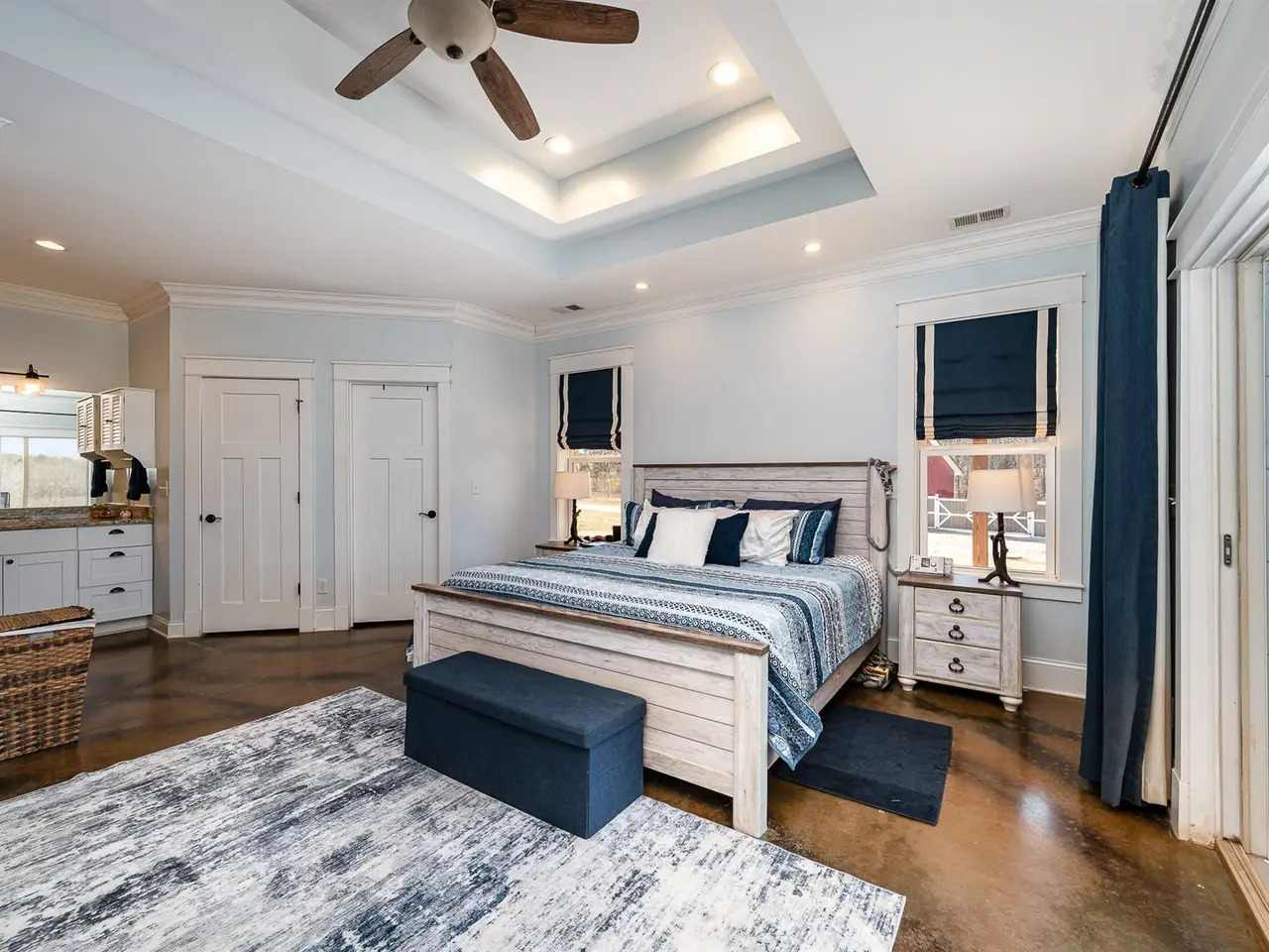 Nestled on 10 acres yet close to downtown Mooresville. Breezy open spaces, 9-foot ceilings, and distinctive custom touches throughout. Gourmet kitchen with custom concrete countertop inlaid with glass, stained concrete floors. Striking stone fireplace in the great room. The spacious hobby/craft room is perfect for creating. Those needing serious workspace, the 4,000 sq. ft. shop is an absolute dream! Complete with an office that could double as a studio apt, fully equipped with 3-phase inverter & 110 receptacle wiring, Multiple outlets for welding/machinery, Fully plumbed for compressed air, plus an Ingersoll Rand 80-gallon air compressor, Three 12'x10' roll-up doors, 15' eave height, and a vaulted ceiling with a 21' center height, 1,500-lb hydraulic 2-post lift. Walk through the woods to your private retreat. 532 sq. ft. off-grid oasis powered by solar backup, heated by woodstove, with kitchen, great room, and sleeping loft. Eligible to be annexed to MGSD.