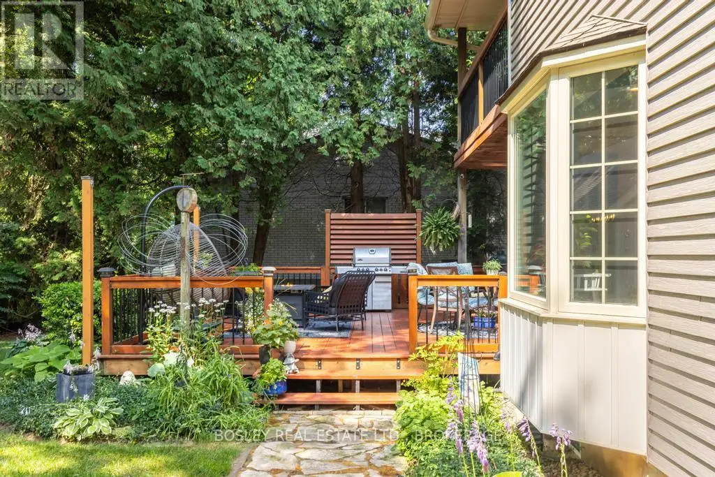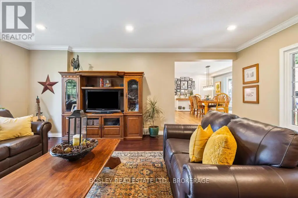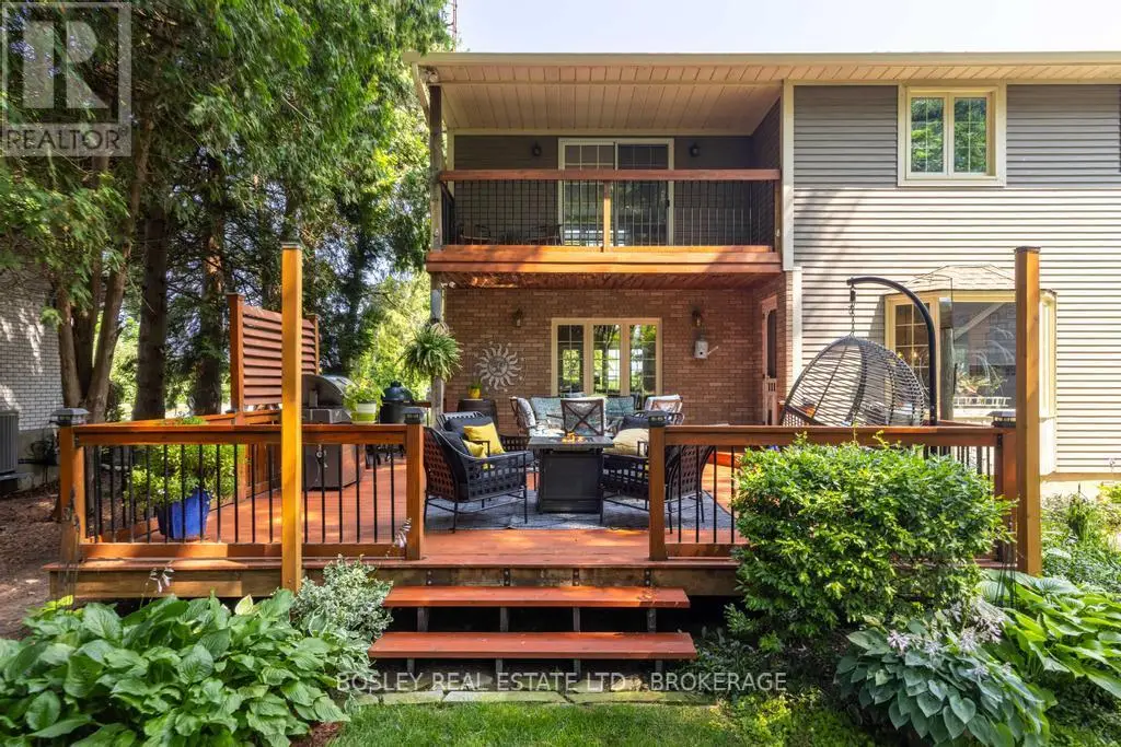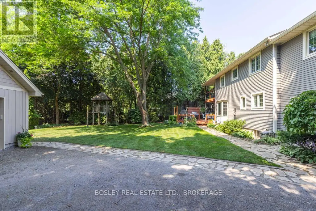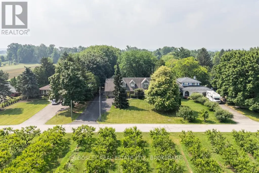 A perfect slice of country living with the convenience of the city mere minutes away, it'll be easy to picture yourself here. This property offers the space and lifestyle that'll check all the boxes! Let's get into it - Here are some standout features you and the family will appreciate: (1) Beautifully landscaped 1-acre lot with mature trees and open space to roam. (2) Picturesque views of the neighbouring orchard across the street to remind you that you're not in the city anymore. (3) Room for everyone (and their cars!) with a large driveway that fits 10+ vehicles. (4) Oversized detached garage (864 sq. ft.) with bonus loft space ideal for a studio, hobbyist, or future guest suite. (5) What's country living without a bonfire?! This striking custom stone firepit with tile surround is built for evenings under the stars. (6) Expansive back deck with space for dining, relaxing, and entertaining. (7) 2,880 sq. ft. of interior living space designed for family life and flexibility including a large sunken family room with stone gas fireplace, PLUS a living room down the hall for nights when the family can't agree on which show to watch together. (8) Updated eat-in kitchen with quartz counters, tiled backsplash, and under-cabinet lighting, as well as a bright formal dining room for those larger gatherings. (9) Four spacious bedrooms plus a bonus den off of one of the bedrooms which could be used as a 5th bedroom or as a separate living space for your college or university kid. The kids are never going to leave home :) (10) The primary bedroom is large with a 3-pc ensuite bathroom and sliding doors out to a private balcony overlooking the scenic backyard. This home offers a true family lifestyle all just minutes from the city core and the QEW. A special, scenic country retreat that still keeps you close to everything. (id:7434)