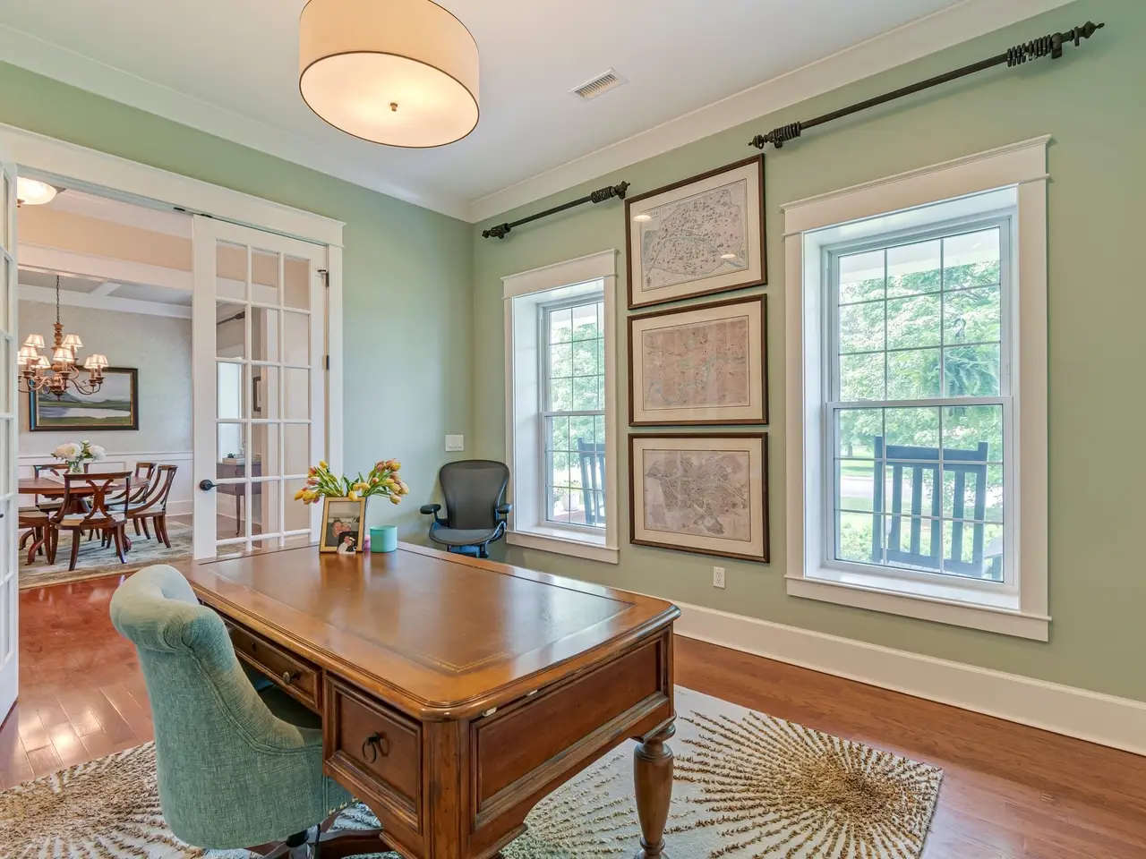 Chef's kitchen had a makeover! New quartz island, subway tile & new lighting! Exclusive opportunity to own this expansive, thoughtfully designed one-level home complete with a 1,200 sq ft separate living or working space. This meticulously cared for & quality-built, one owner home, is perfectly situated on picturesque Lovelace Lane. With over an acre lot & spacious backyard with mature trees, it is ideal for creating your own private oasis or adding a pool. Engineered hardwood floors, coffered ceilings & extensive trim. Four oversized bdrms with ensuite baths are thoughtfully tucked away from the main living areas, allowing for personal privacy. The open-concept design includes distinct spaces for living, dining, and family room, creating an ideal layout for both entertaining and daily living. Upstairs, is a generous bonus room with a 1/2 bath and over 500 sq ft of walk-in attic space, providing ample room for storage and future expansion. The main living area was designed to age in place, offering long-term comfort and accessibility. The home features a 3 car side entry garage, a spacious screened-in back porch, paver patio, fire pit of Tennessee flagstone, and a gas line for a grill, perfect for outdoor entertaining. Attached to the home is a 1,200 sf bldg with a private entrance: a rare and versatile space. This area can serve as a media room, office, studio, guest suite, pool house, or in-law/multi-generational living quarters. The layout allows for the addition of a kitchenette and a shower to the existing half bath, giving maximum flexibility. Built for efficiency and sustainability, the home features James Hardie fiber cement siding, triple-pane windows, tankless water heaters, and foam insulation. Additionally, a storm shelter is integrated into the original concrete construction of the home, offering peace of mind. A one-of-a-kind home that delivers in every way-comfort, craftsmanship, functionality, and flexibility in a serene and convenient location.