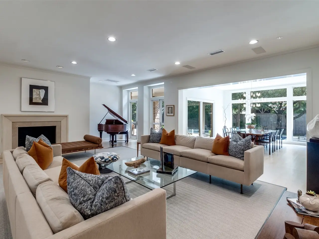 At the end of a quiet street, next to a charming city park sits 5606 Dittmar Place - a home that blends thoughtful design with luxurious living. Extensively remodeled in 2020-2021 (by Architectural Firm: Bernbaum Magadini) the interiors are now open, bright and finished with the highest quality materials. Step inside to a spacious living room with soaring ceilings and a cozy fireplace. The dining room, framed by dramatic floor-to ceiling windows, overlooks the beautifully landscaped backyard, complete with a pool, spa and generous grassy areas for play and entertaining. The primary suite is a true retreat, featuring its own fireplace, private patio, and spa-like bath with Danby Marble vanities, a soaking tub, separate shower, and 2 oversized walk-in closets. A chic powder room is conveniently located nearby for guests. The chef's kitchen has been completely reimagined with a marble-topped island, Subzero glass-door refrigerator & freezer, Wolf 6-burner range, and a bar equipped with a wine cooler and ice maker. Just beyond, a functional office with a full bath and the more casual den with a third fireplace offers versatile main-level living. Upstairs, you'll find a secondary office and lounge, a guest room with ensuite bath, and 2 additional bedrooms sharing a travertine-appointed bath. A flexible exercise or studio space completes the second floor. So much storage and a 3 car garage. Sophisticated, with clean-lines and move-in ready, this home offers an elegant lifestyle in one of the area’s most peaceful settings.