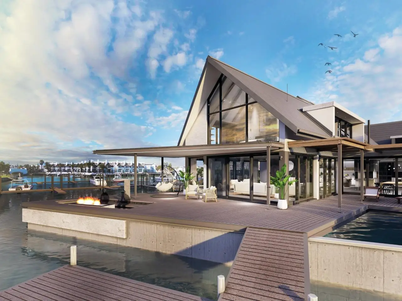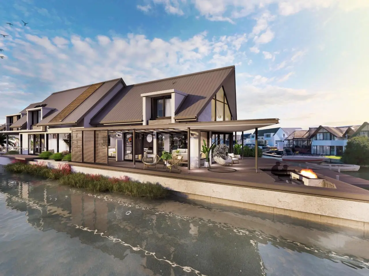 Exclusive Mandate - Introducing "The Pinnacle" - Your North-Facing Canal Dream Home All within the secure Marina Village gated estate and sold off plan to allow you to customise for your own personal touch. Welcome to The Pinnacle, an extraordinary canal-side residence that redefines elegance and modern living. This stunning home is the perfect blend of tranquil retreat and sophisticated entertainment space, ideal for both family life and unforgettable holidays. Step into a world of luxury, where the open-plan design invites light and warmth into every corner. The ground floor is a masterpiece of style and functionality, featuring a state-of-the-art gourmet kitchen, a spacious dining area, and formal and informal lounges that flow seamlessly together. A dedicated bar area adds a touch of glamour, opening out onto an expansive deck complete with a sparkling pool and a cozy fire pit - the ultimate setting for outdoor relaxation and captivating canal views. The upper level boasts five beautifully appointed en-suite bedrooms, offering privacy and comfort for both family and guests. The pajama lounge provides the perfect space for quiet evenings or family time. The piece de resistance is the luxurious main suite, set apart in the right wing and accessed via a charming bridge. This sunlit sanctuary, with its north-facing design, exudes privacy, tranquility, and sophistication. Whether you're looking for a dream home or an opulent holiday retreat, The Pinnacle is designed to complement every season - from sun-soaked summers by the water to cozy winter nights by the fire. Make The Pinnacle your private oasis and embrace a lifestyle of unmatched luxury. This breathtaking canal home awaits you - don't miss the chance to call it yours!