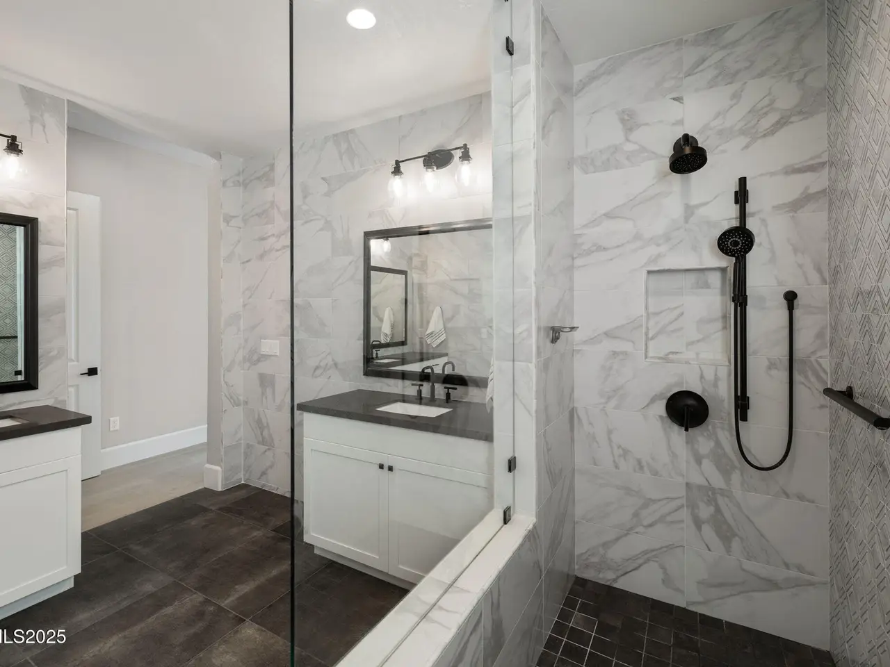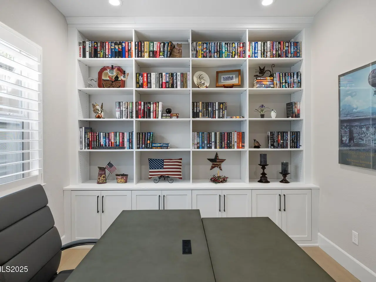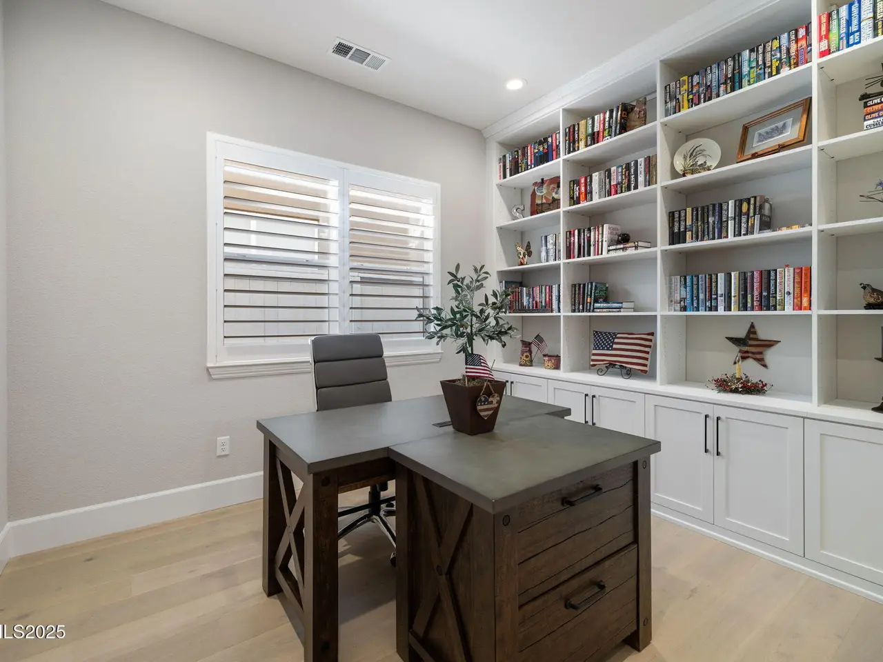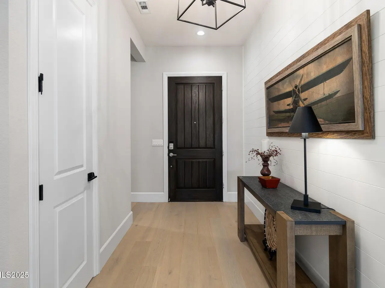 Single-level living behind the private gates of Rancharrah. This true lock-and-leave modern farmhouse combines luxury, comfort, and convenience with timeless design details including custom beam ceilings, shiplap, and an abundance of natural light. The thoughtfully designed floorplan offers a spacious primary ensuite, a secondary ensuite, and a private office with gorgeous custom built-ins. The heart of the home features a chef's kitchen with quartz countertops, craftsman-style cabinetry with rollout drawers and black hardware accents, JennAir stainless steel appliances, and farmhouse porcelain sink at kitchen island. The dining area is a focal point with a show-stopping chandelier and flows right into the great room anchored by a dramatic floor-to-ceiling stone fireplace, perfect for cozy evenings. European oak flooring flows seamlessly throughout the main living areas. Outdoor living is equally impressive with a covered patio, built-in barbecue, firepit, low-maintenance landscaping, and a tranquil water feature. Living in Rancharrah, Northern Nevada's most luxurious development, means enjoying incomparable amenities. The reimagined Club at Rancharrah is just a short walk away and offers resort-style living with a pool, outdoor cantina with poolside service, private dining at Nineteen 57, a three-level fitness center, group classes, kids' clubs, summer camps, family movie nights, seasonal events, and even a full-service spa and salon. Outdoor recreation includes pickleball and bocce courts, while private meeting and event spaces add to the exclusivity. Beyond the gates, enjoy easy access to the Village at Rancharrah with fine dining, shops, and wellness services. The location also places you minutes from Bartley Ranch's trails and amphitheater, Reno-Tahoe International Airport, Midtown, and Downtown Reno. Mt. Rose Ski Resort is just 18 minutes away, with Lake Tahoe only 40 minutes from your door. This home is a perfect balance of refined interiors, effortless lifestyle, and unmatched amenities in one of Reno's most prestigious communities.