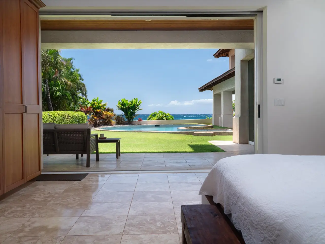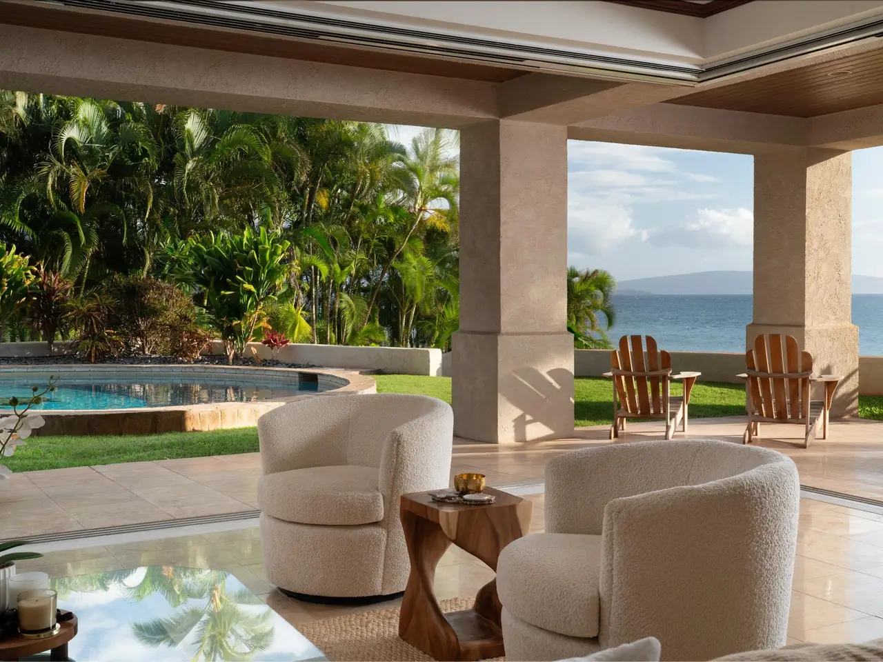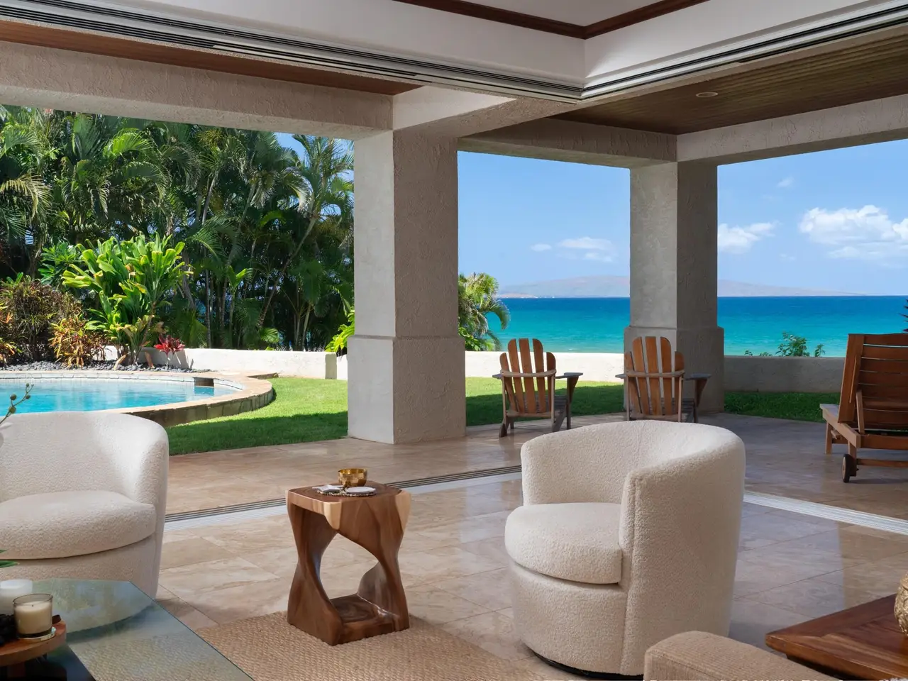 Hawaiiana meets contemporary design with this exceptional estate on the pristine shores of Keawakapu Beach. Beyond the gated entrance lies a world of relaxation and rejuvenation, where quality adjoins an unrivaled location. Upon entering the property, you're surrounded by lush tropical landscaping and the soothing sound of waves crashing against the shoreline. The grand entrance opens into a sprawling foyer where warm tones and gentle breezes are abundant. The open and airy interior seamlessly blend indoor and outdoor living spaces to capitalize on Maui's year-round sunshine and uninterrupted ocean views. The first level features an expansive kitchen with butlers pantry, sprawling great room, and the primary guest room with en suite. Outside the multiple sets of dramatic pocket sliders, is a large courtyard area and pool, just steps away from the sand. Below the pool area is an additional large yard, perfect for entertaining and an outdoor shower for rising off after a day at the beach. Retreat upstairs to the massive primary suite, where there are panoramic views of the Pacific Ocean and Keawakapu Beach. Complete with a luxurious en suite bathroom and private balcony. Additional highlights of this exceptional property include a spacious 1,000 square foot garage, providing ample space for your vehicles, water toys, and outdoor gear. Perhaps the best feature of this home are the unparalleled views of three neighboring islands – Molokini, Kaho'olawe, and Lana'i – from just about every room in the house. Experience the Maui lifestyle in this exquisite beachfront retreat, where every day feels like a vacation and paradise is truly found at home.