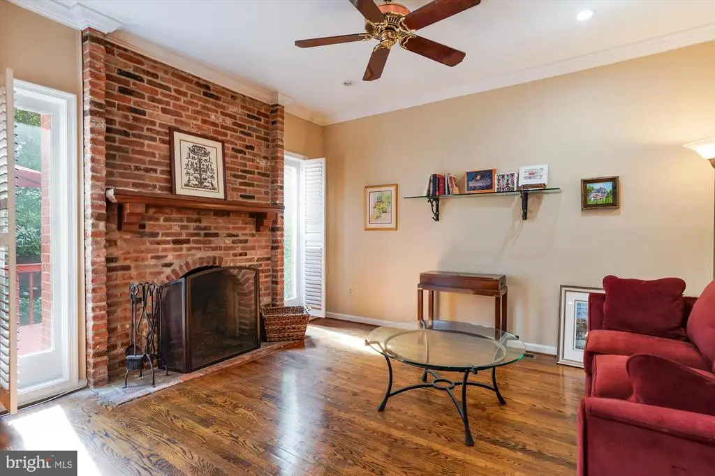 You will love this magnificent brick interior townhouse in highly sought after Carriage Hill -- a small community of 13 homes in zip code 22207 North Arlington and only one mile to Chain Bridge. Main Level. As you enter the foyer, with marble flooring, there is a large closet for guests' coats and powder room. The two-landings staircase to upper one set off the dramatic entry. The elegant living room to your right has just the perfect place for your piano and the almost floor-to-ceiling windows have custom plantation shutters. The framed doorway in living room leads to an elegant dining room. The well designed gourmet kitchen with island and eat-in area opens to a charming deck and serves as a great outdoor living space. The family room, adjacent to the kitchen, is highlighted by a wood-burning fireplace with custom plantation shutters on almost floor-to-ceiling windows on each side of fireplace. Glowing hardwood floors on two levels. Just painted throughout with dove white paint, chair railing and crown molding too. Upper One. Primary bedroom suite has a spectacular walk-in closet and French doors to balcony. Bedrooms two and three are large sized. Two full baths and all hardwood flooring. Lower One. A recreation room with wet bar, wood burning fireplace and almost floor to ceiling windows on each side of fireplace which leads to a patio. Fourth bedroom, full bath and a large laundry/storage room. There are two assigned parking spaces, plenty of guest parking and sidewalks to walk your doggies. A beautiful gazebo, as you enter Carriage Hill, where the mailboxes are located. Top Arlington County Public Schools. This beautiful home is sited away from traffic noise and overlooks the quiet landscaping of the common area. The answer to your dreams.