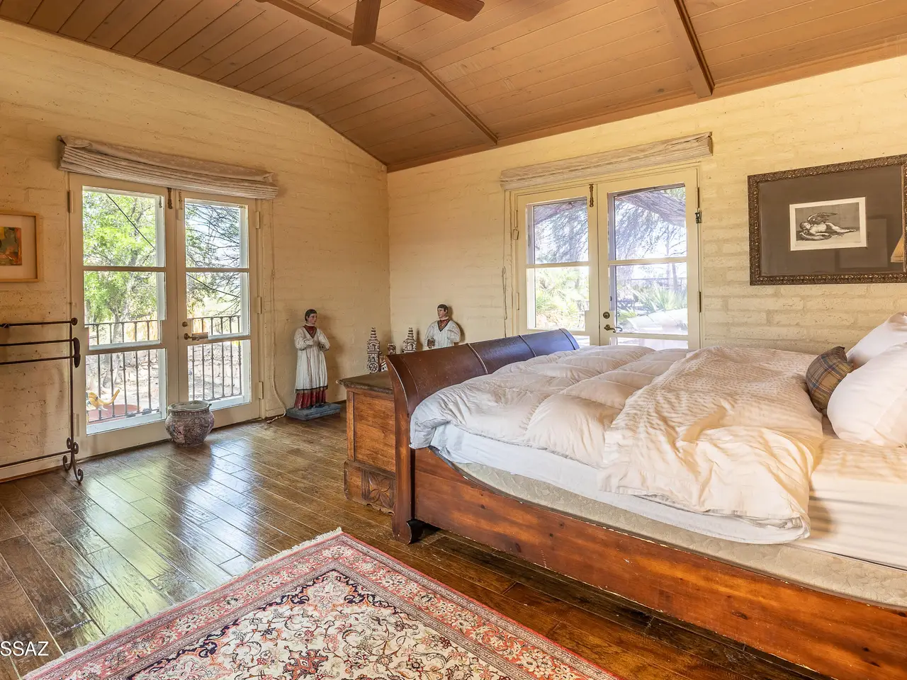 TAR Home Winner & Long Realty Tanque Verde Office Winner. Timeless elegance meets western charm in this historic estate set among sweeping desert landscapes. Featuring original burnt adobe architecture, soaring ceilings, stone floors, wood beams, fireplaces, and generous living spaces, the home offers a rare blend of heritage and modern comfort. Designed with equestrian potential, it includes two 3.4-acre parcels where stables and corrals once stood, providing space to build, ride, or sell, along with a private well. This hillside property boasts panoramic mountain and desert views, a spacious updated kitchen, pantry, and grand entertaining areas, making it a unique opportunity rich in history and character.