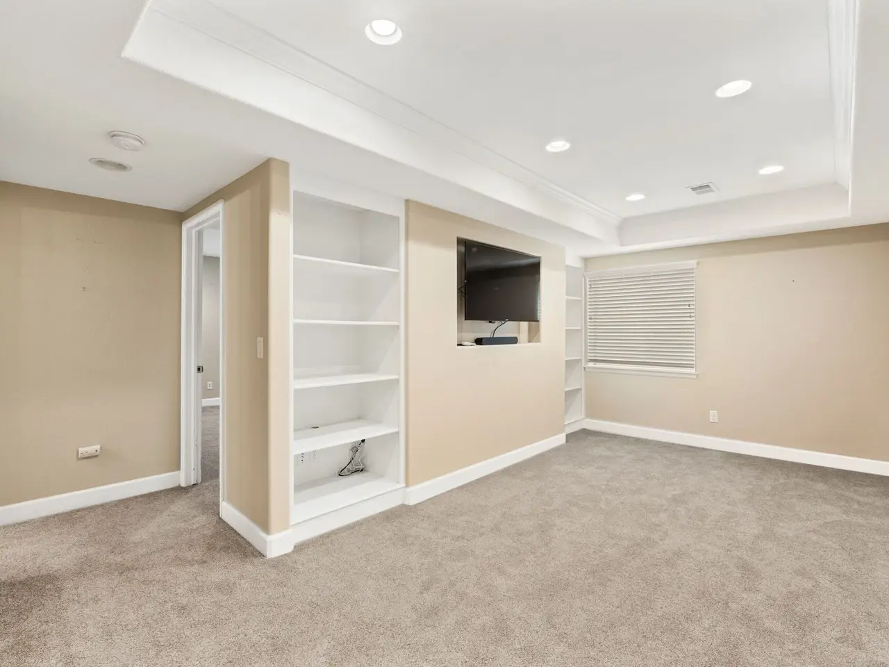 • Custom floor-to-ceiling bookshelves