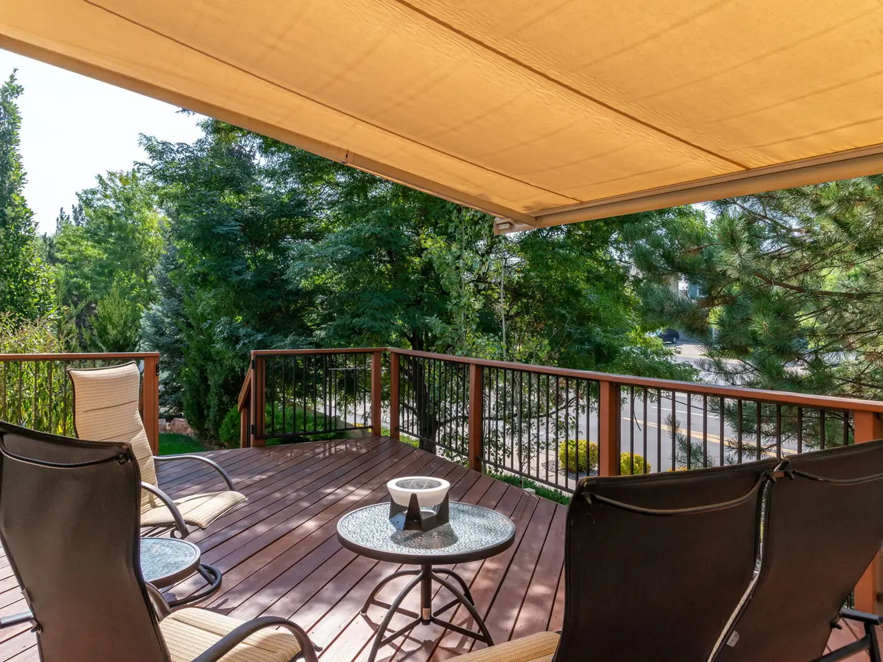 Fabulous corner-lot home in highly desirable Ryan Ranch, with stunning views of Table Mountain and the Rockies! Step inside to an open, light-filled floor plan featuring a gourmet kitchen with granite countertops, a large center island with seating, stainless steel appliances, and rich cherry wood cabinets. Hardwood floors flow throughout the main level, connecting the spacious family room, formal living and dining rooms, and a private main-floor study. Enjoy year-round outdoor living on the expansive mahogany deck with a covered pergola and powered shade awning. The private backyard is fully fenced, beautifully landscaped with mature plantings, and perfect for pets. A 3-car garage includes newer polyurea flooring plus upgraded storage. Upstairs, you'll find a large great room with hardwood floors, custom floor-to-ceiling bookshelves, generous bedrooms, and soaring ceilings. The professionally finished garden-level basement offers incredible flexibility with a convenience bar, recreation room with pool table, fitness area, large bedroom, full bath, and a spacious storage room. This home offers endless gathering spaces-including a family room, great room, loft, and entertainment areas-making it perfect for both everyday living and hosting. Recent upgrades include outdoor lighting, kitchen counters and cooktop, new mahogany deck, pergola, powered awning, new windows in kitchen and dens, ceiling fan and whole house fan, Generac whole-house generator, new carpet, and more. Ideally located on the Golden/Arvada border, this home is just steps from two recreation centers, shopping, and offers easy access to both downtown Denver and the mountains. With no neighbors on three sides, privacy abounds. The HOA covers common area maintenance, trash, fencing, and snow removal for truly low-maintenance living. This one-of-a-kind home is ready to impress-schedule your showing today!