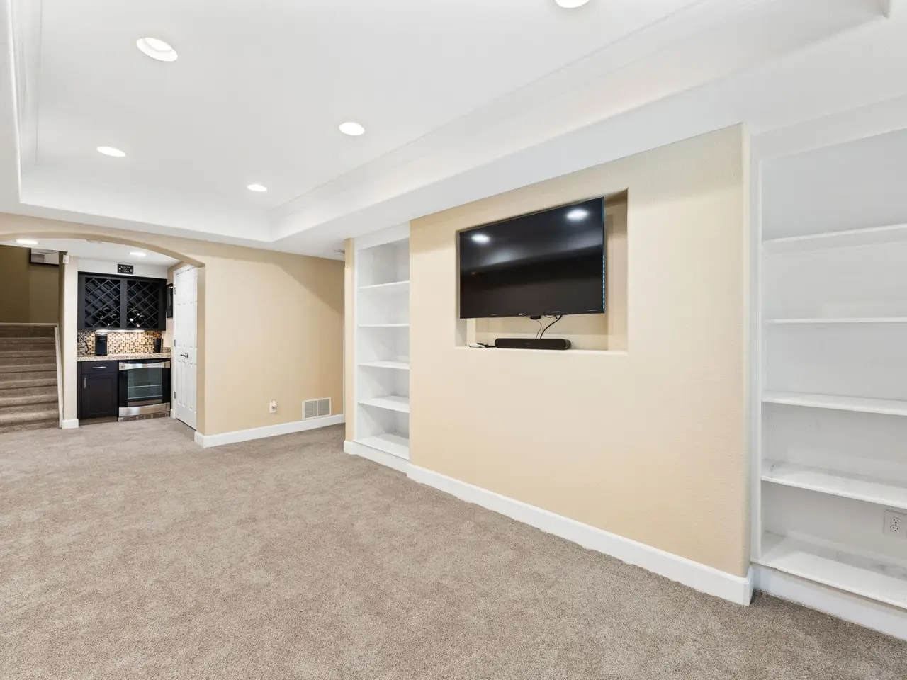 • Garden-level basement with bar