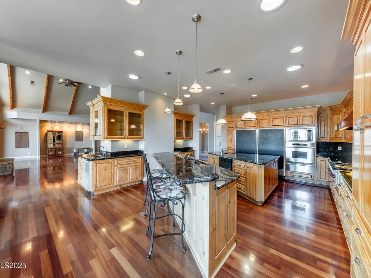 • Travertine and slate accents Two kitchen islands
