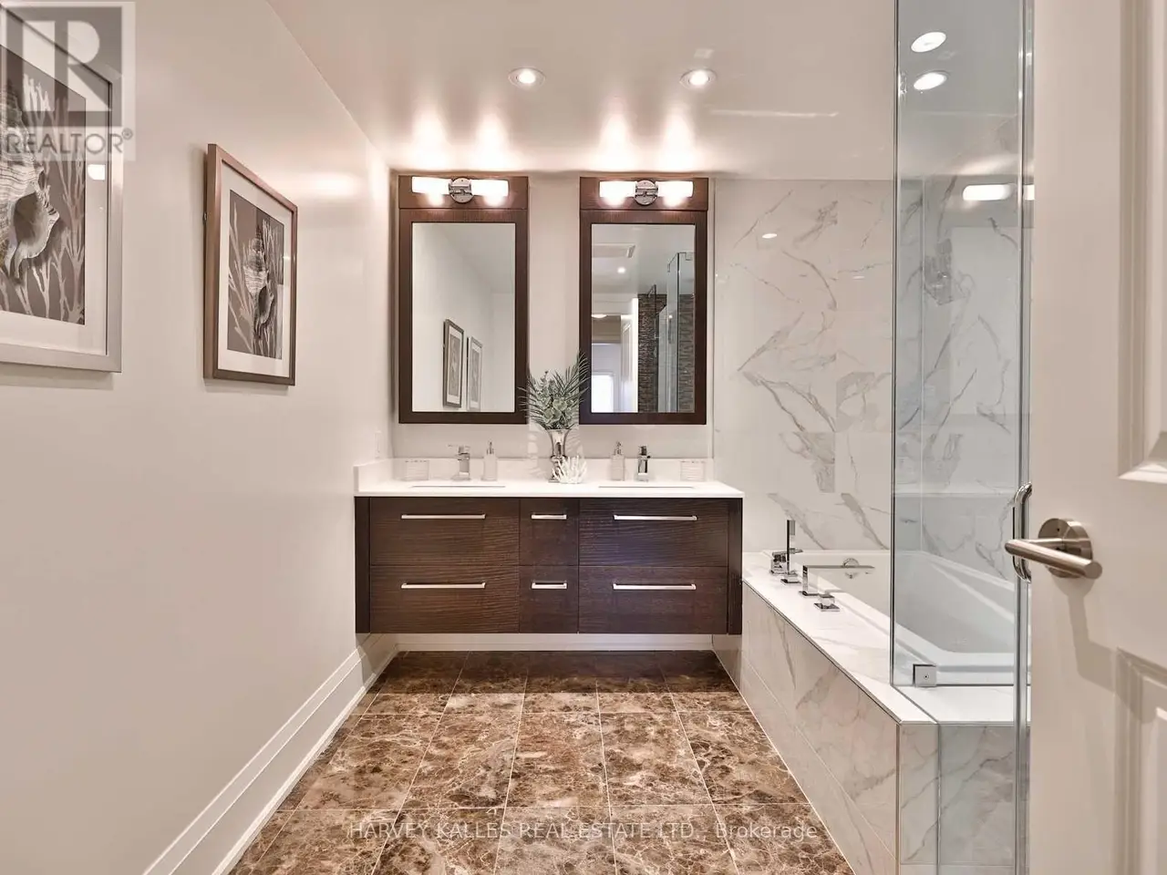 Nestled in the highly coveted community at Bayview & York Mills, this luxurious 4+1 bedroom,5-bath townhome blends modern comfort and sophistication. A private elevator services all three levels, boasting over 3,500 sq. ft. of upscale design, soaring ceilings, and an abundance of natural light throughout. Two private rooftop terraces offer the perfect setting for relaxing and entertaining under the stars. The thoughtful layout begins on the main floor with an inviting foyer, elegant home office, large powder room, and a well-purposed mudroom with convenient access to the 2-car garage. The 2nd level flows effortlessly from the contemporary living room showcasing a cozy fireplace and surround sound, leading to an open dining space suited for family gatherings, a 2nd powder room, and a chef's kitchen featuring a spacious breakfast area and generous balcony. The 3rd level master retreat is a serene sanctuary, including a stunning 7-piece ensuite, his-and-hers closets, and a private Juliet balcony, with two additional sunlit bedrooms designed for ample comfort. The lower level features an expansive home gym/rec space, a massive bedroom that doubles as a home theatre, a full bathroom, and laundry room. Fantastically located just steps from premier area amenities, and minutes from top schools, HWY 401, golf courses, and private clubs. A rare lifestyle opportunity in York Mills, where everyday luxury and convenience awaits!