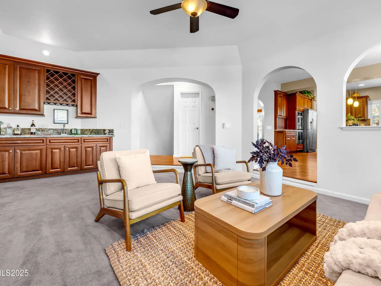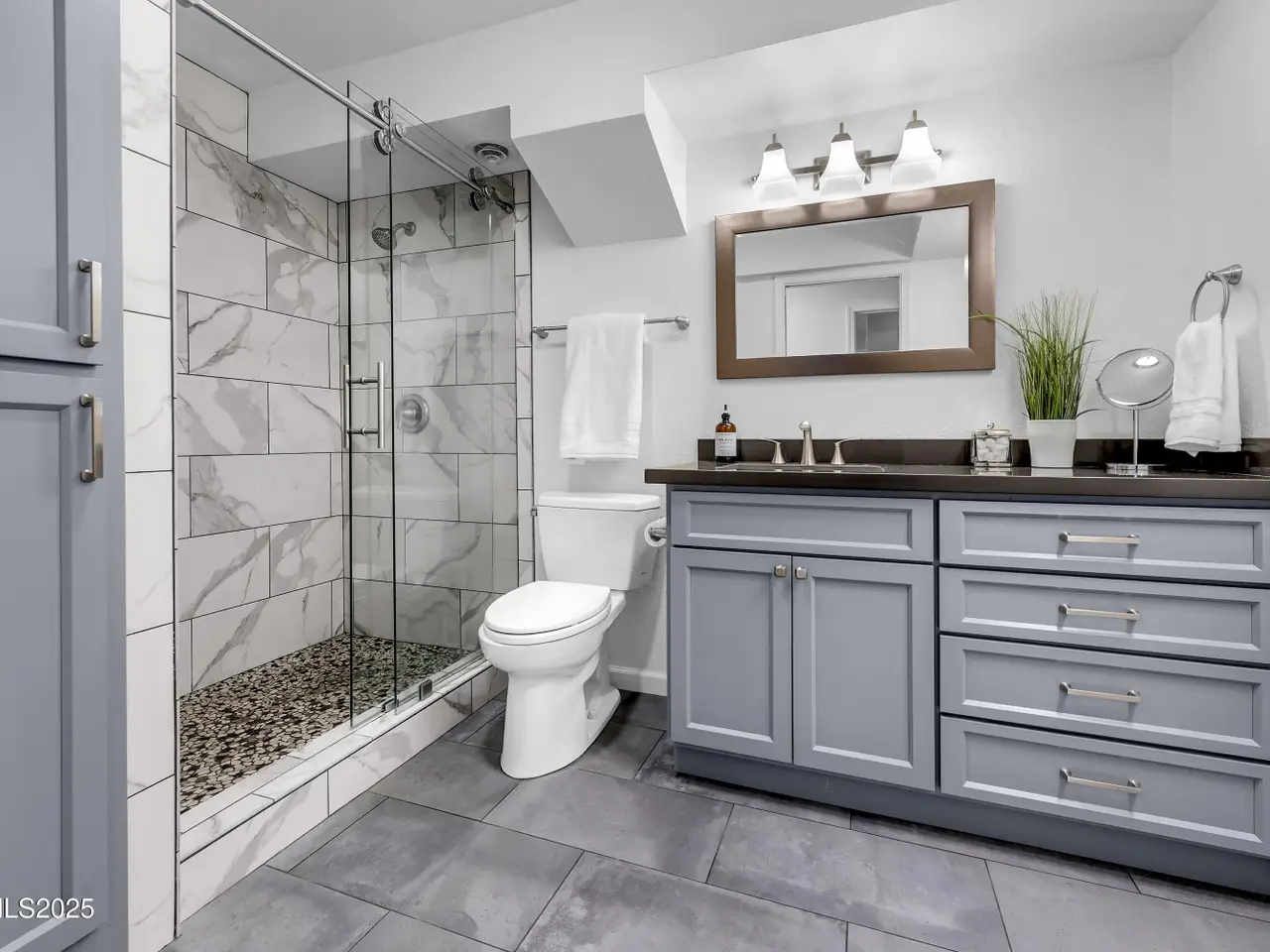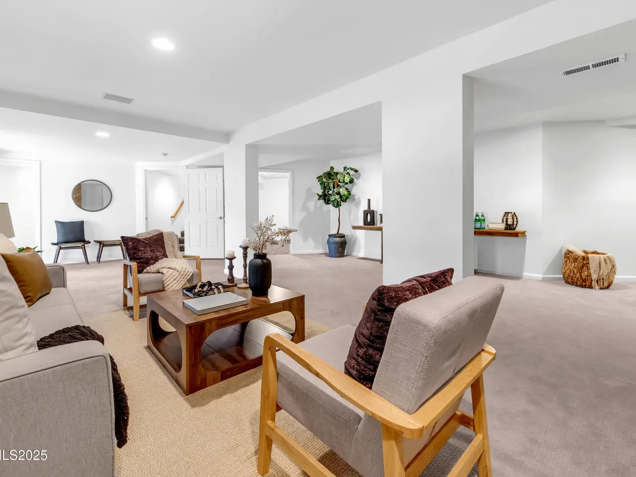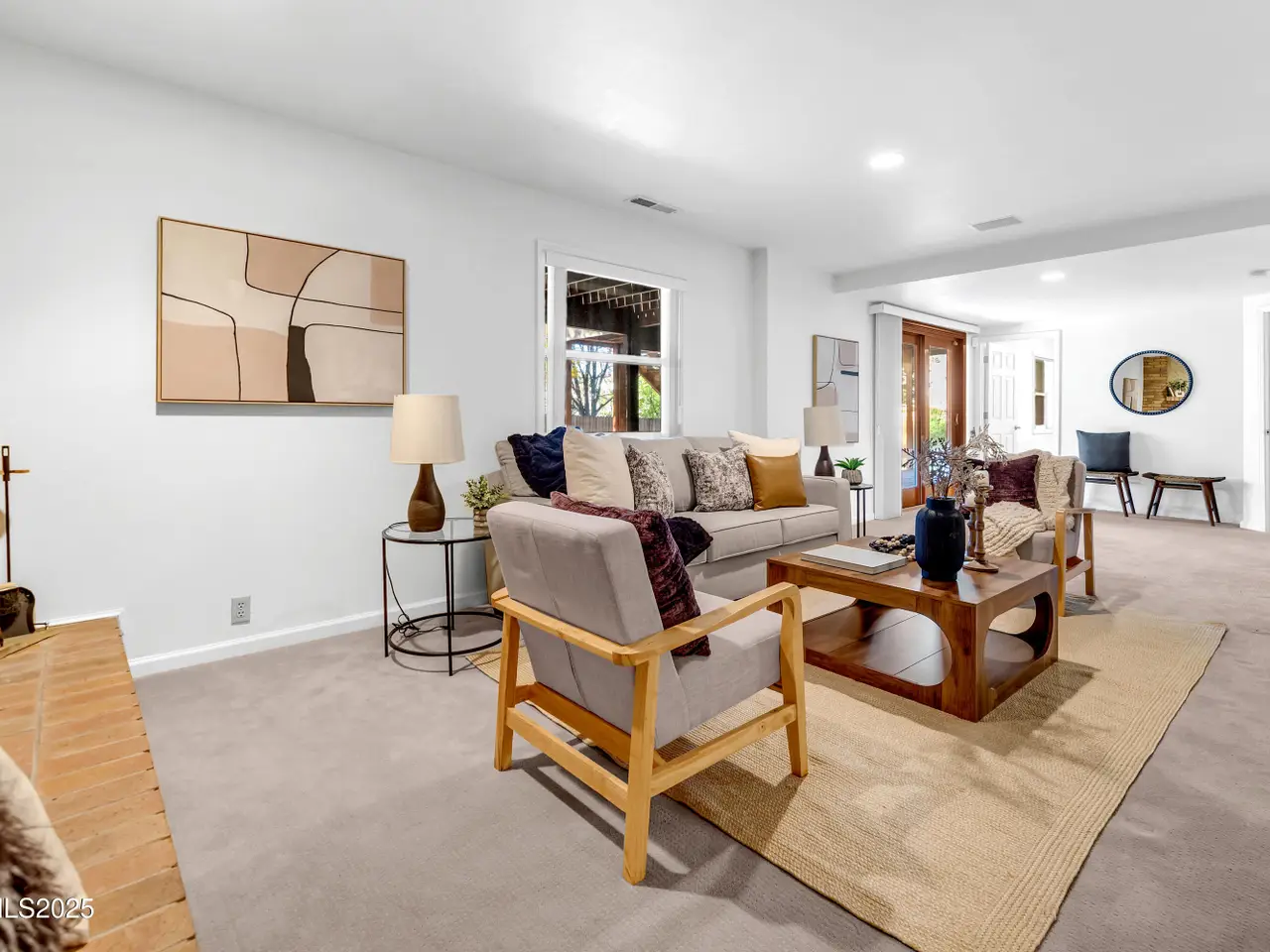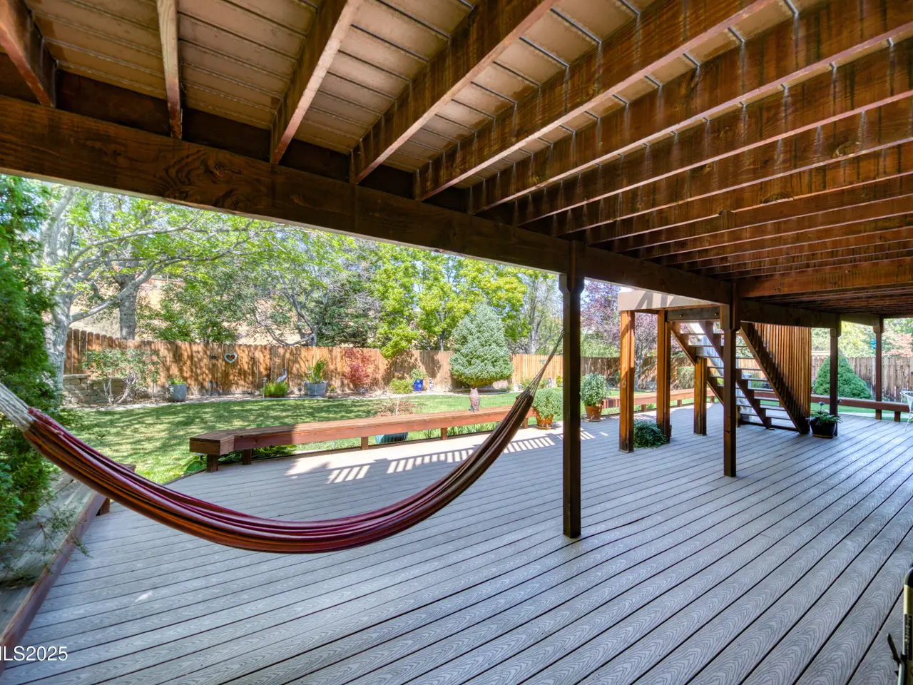 This majestic home, nestled on one of Reno's most picturesque streets, offers an unparalleled living experience. Centrally located in SW Reno, it provides convenient access to all the amenities and attractions you desire. Step into quality craftsmanship and custom details in this meticulously maintained home. The main level boasts beautiful wood floors, plantation shutters, and high ceilings. An inviting entry features a sweeping staircase beneath a dramatic cathedral ceiling. The living and dining rooms are open yet defined, offering tree views through large windows and deck access through French doors. The kitchen is a chef's dream, featuring a corner sink with windows overlooking mature trees, a walk-in pantry, a center island with a breakfast bar, an appliance garage, a trash compactor, a dining nook, and high-end appliances. It overlooks a warm and inviting family room, complete with a wood-burning fireplace and ceiling fan. A bar with display cabinets, a sink, and granite counters makes entertaining effortless - the perfect spot to relax and enjoy a game or movie. The large primary bedroom, conveniently located on the main floor, offers tall ceilings, ceiling fan, and French doors leading to the deck. Its spacious en-suite bathroom includes a soaking tub, a roomy shower, and an extensive vanity with two sinks, complemented by separate his and hers closets. The second story features a large loft/office with built-in shelves and double doors for privacy, along with three generous bedrooms and a full bathroom with a tub. The walk-out basement offers endless possibilities: multi-generational living, a teenage hangout, family entertainment space, a man cave, additional office space, or simply room to spread out. The spacious main area includes a wood-burning fireplace, a nook ideal for a game table, and easy access to the lower deck and backyard. There's also a large bedroom and full bathroom, plus a bonus room, perfect for an in-law unit or guest suite. Abundant storage is available in a huge laundry/utility room and additional storage closets. Outside, mature and well-maintained landscaping on the expansive half acre lot provides picturesque views from every window. Two beautiful Trex-style decks, one on the main level with convenient stairs to the ground level deck. A wonderful place for parties or relaxing afternoons. An extra-large, finished three-car garage features built-in cabinets and new paint. There is NO HOA. A private road maintenance agreement is 500 per year, and an access road easement in the back of the property is managed by the City of Reno. The kitchen refrigerator, washer, dryer and basement TV are included. The home also features a 2022 HVAC system and a newer water heater. Come visit this extraordinary home!