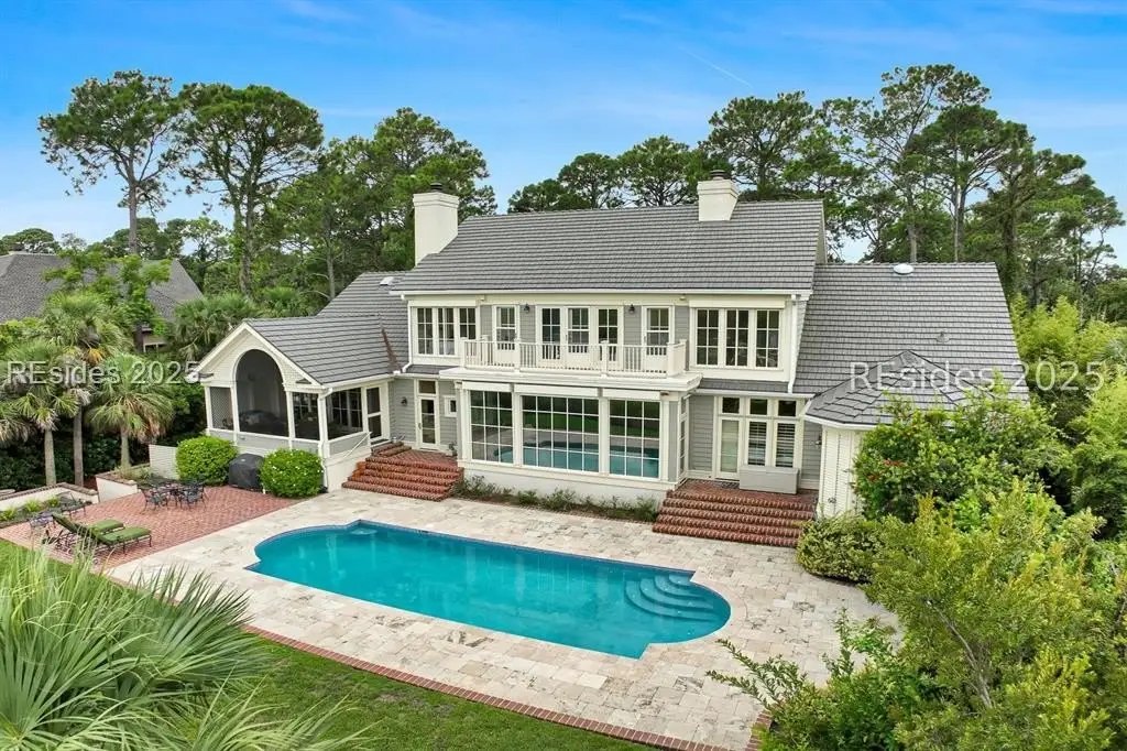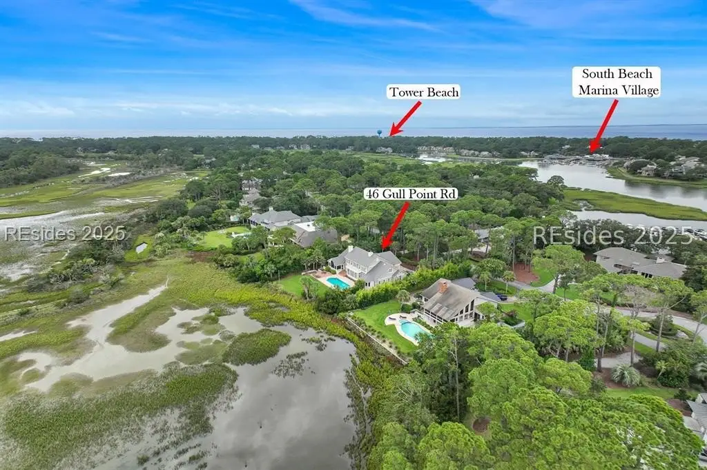 Located on one of the few true neighborhood premier streets in Sea Pines, this custom-designed four bedroom, 3.5 bath home designed by acclaimed designer, Joe Hall, spans nearly 4,700 square feet and offers stunning marsh views all the way to the iconic Harbour Town lighthouse and a short distance to the Atlantic Ocean. This residence blends timeless craftsmanship and features a 2017 metal roof, hardwood flooring, crown molding, elevator to all levels, and plantation shutters throughout. This property offers a first level owner suite, multiple living/dining areas, two fireplaces, screened porch, and true indoor-outdoor living that brings the beauty of the Lowcountry indoors. The outdoors is spectacular with a covered porch, impressive swimming pool, and breathtaking water views. Residents of Gull Point enjoy unparalleled amenities, including a private slip at the community marina if desired, tennis courts, a playground, kayak/paddleboard storage, and neighborhood events. This is the Low Country lifestyle you have been waiting for where fishing, boating, walks on the beach, and forever marsh views are everyday occurrences!