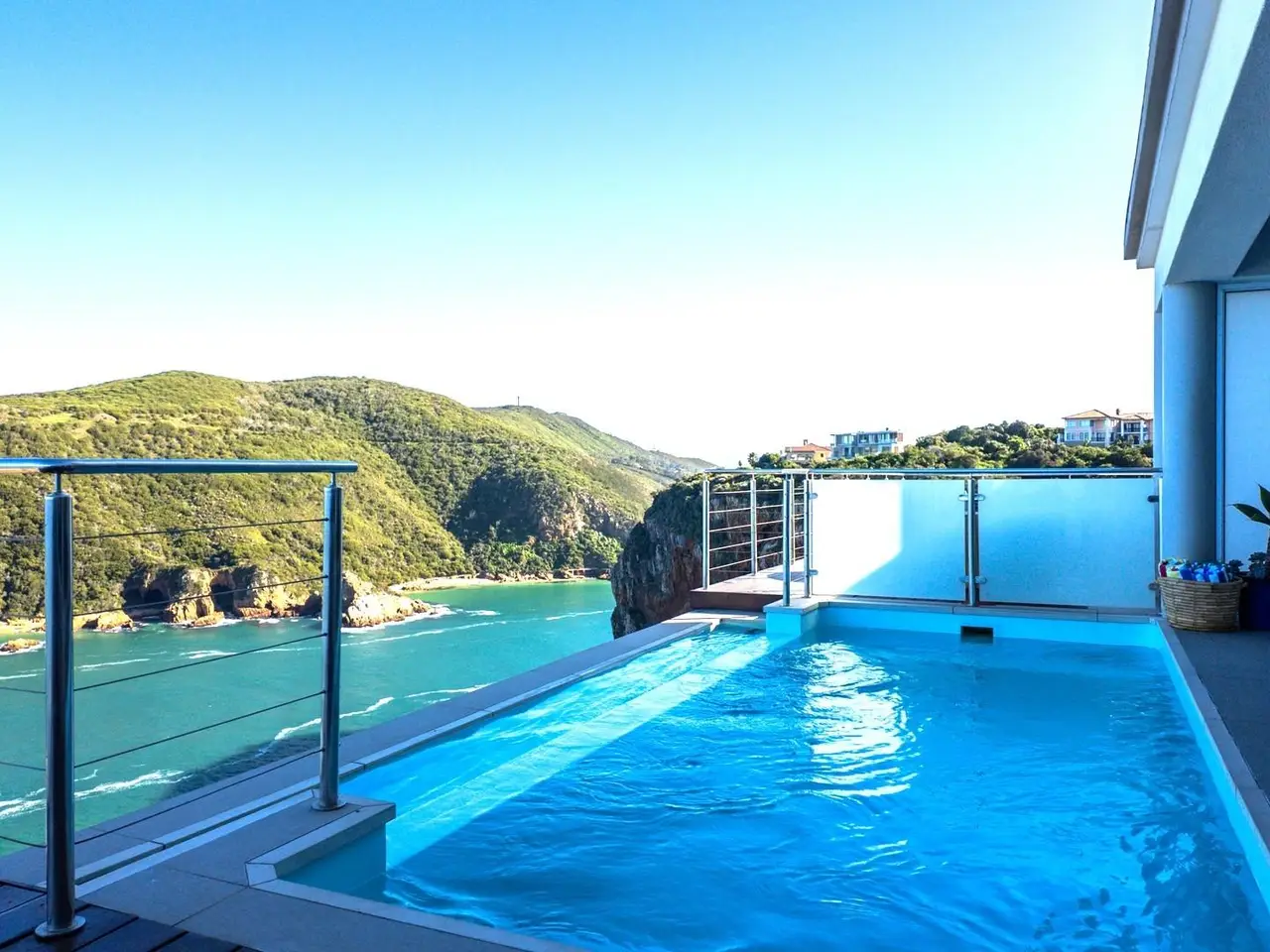 A World-class Residence with Unrivaled Views and Timeless prestige Discover an exceptional opportunity to own a world-class property perched on the edge of the captivating Knysna Heads- where uninterrupted ocean and lagoon views meet refined comfort and contemporary elegance. This extraordinary home blends luxurious coastal living with a setting so unique, it has received international acclaim. Offering eight beautifully appointed en-suite bedrooms, all in a modern open-plan style, the residence is ideal for multigenerational living, a grand holiday escape, or simply enjoying expansive space and privacy with visiting guests. Every detail has been crafted to elevate daily livingGÇöfrom sun-soaked entertainment decks and a solar-heated rim-flow pool overlooking the Indian Ocean, to a fully equipped wine tasting room perfect for hosting unforgettable evenings. A tranquil treatment room adds a spa-like touch, ideal for in-house wellness and personal indulgence. A Prestigious Boutique Hotel with Global Recognition This property currently operates as an internationally acclaimed 5-star boutique hotel. Recognized by the Haute Grandeur Global Hotel Awards as South AfricaGÇÖs Prime Location Hotel, with further accolades for Best View and Best Relaxation Hotel, it offers a turnkey opportunity for discerning investors. The asking price is exclusive of VAT. Most furniture, fittings, and appliances are included to ensure a seamless transitionGÇöwhile select items such as the H+ñstens beds and wine cellar contents may be negotiated separately. Whether you're looking for a luxurious private sanctuary, a home with guest accommodation potential, or a high-end hospitality assetGÇöthis one-of-a-kind property delivers on every front.