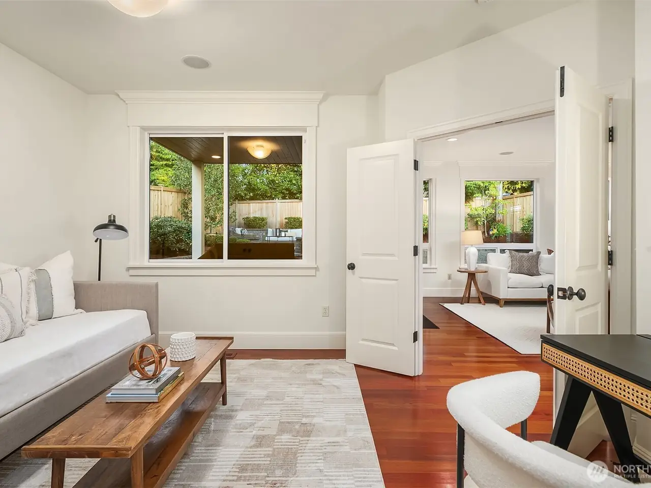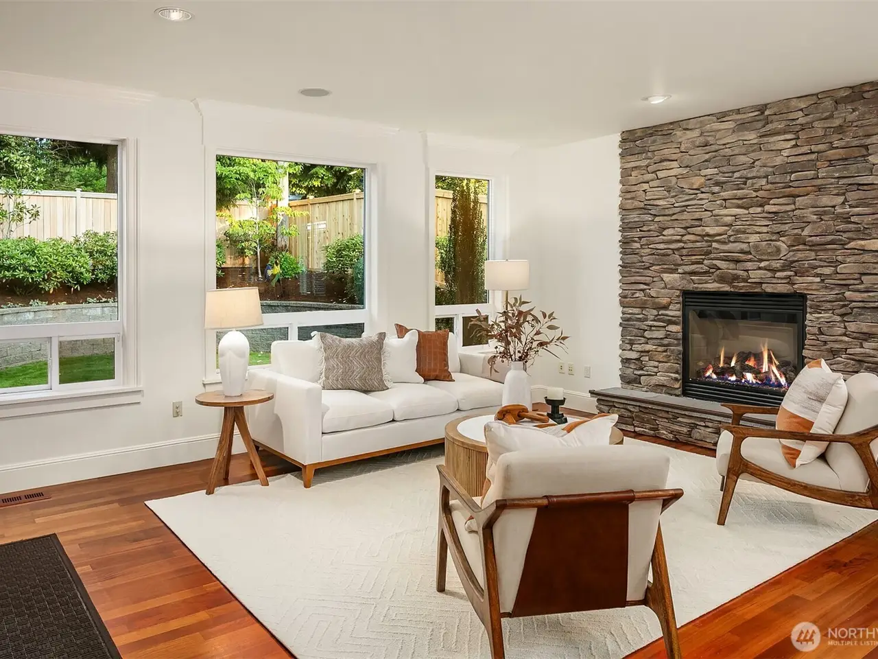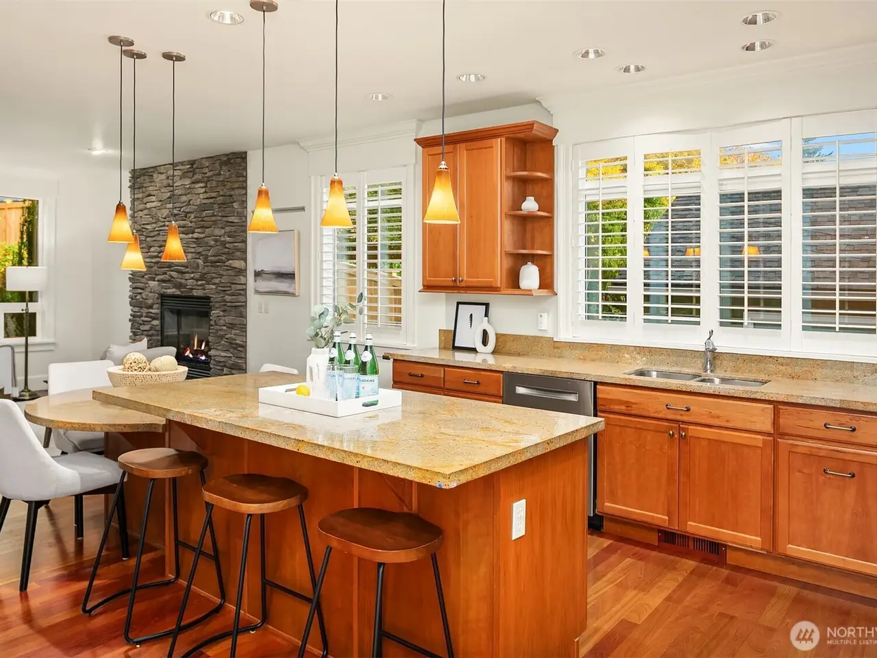 Beautifully maintained home in the sought-after Laurelhurst community. Built in 2006, this classic residence features hardwood floors, custom molding, arched doorways, & soaring ceilings throughout. The main level includes a bedroom/office, powder bath, formal dining & living areas, plus a spacious kitchen & family room with stone-surround fireplace & bar-style counter seating. Upstairs offers two bedrooms, laundry, a secondary bath, & a generous primary suite with private office space, walk-in closet, soaking tub, oversized shower, & double vanity. The sunny backyard boasts a patio, built-in BBQ area, grass, new fencing, & vibrant gardens. Oversized two-car garage provides ample space for parking, storage, & workouts.