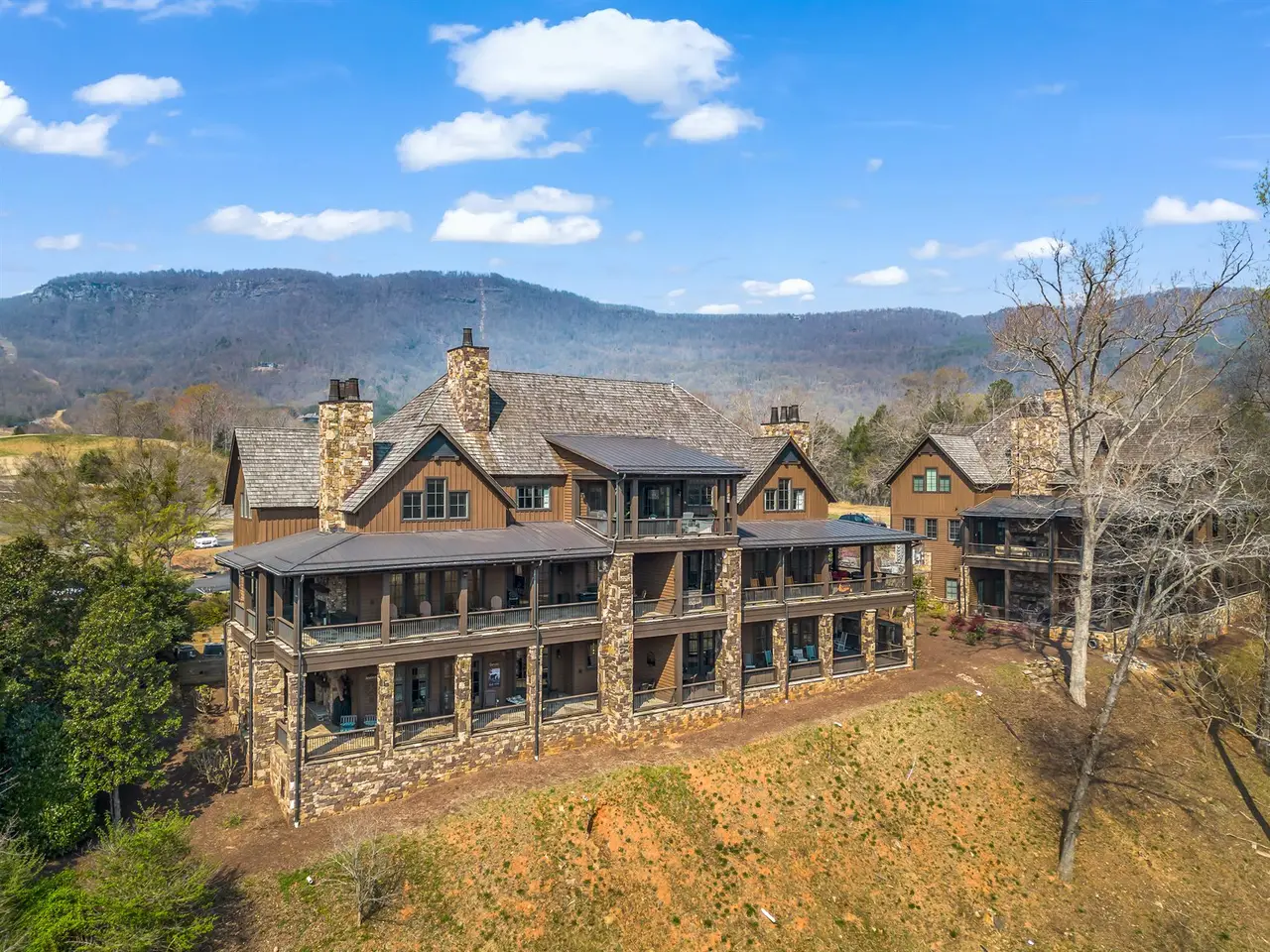 This luxurious penthouse embodies sophistication & serenity. With private elevator access you'll step directly into a haven of elegance. Breathtaking views of championship golf course, shimmering pond & mountain ridge tops. Designed for relaxation & entertaining, featuring open-concept floorplan with a cozy fireplace perfect for intimate evenings and a covered patio ideal for al fresco dining against the backdrop of nature's splendor. Spacious primary suite offers a retreat of its own, thoughtfully separated from well-appointed guest ensuite bedrooms to ensure privacy and tranquility. Located within the gated sanctuary of Brights Creek, this community redefines luxury living. Residents are greeted by a 24-hour staffed Greeters Cottage. Club membership available for purchase. Brights Creek Club enhances the lifestyle with its 19-hole Tom Fazio-designed championship golf course, hiking trails, tennis/pickleball courts, sophisticated mountain lodge featuring restaurant and bar.