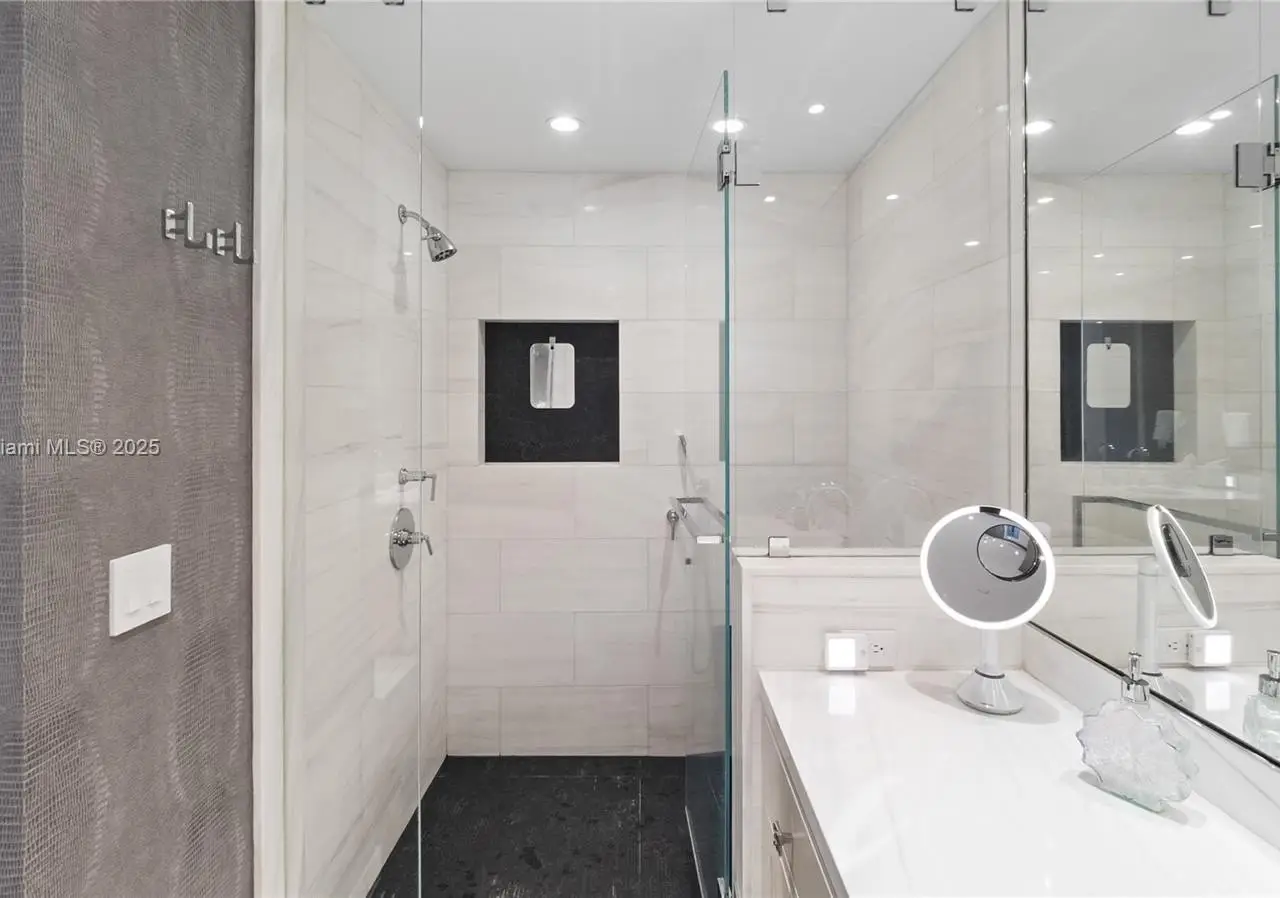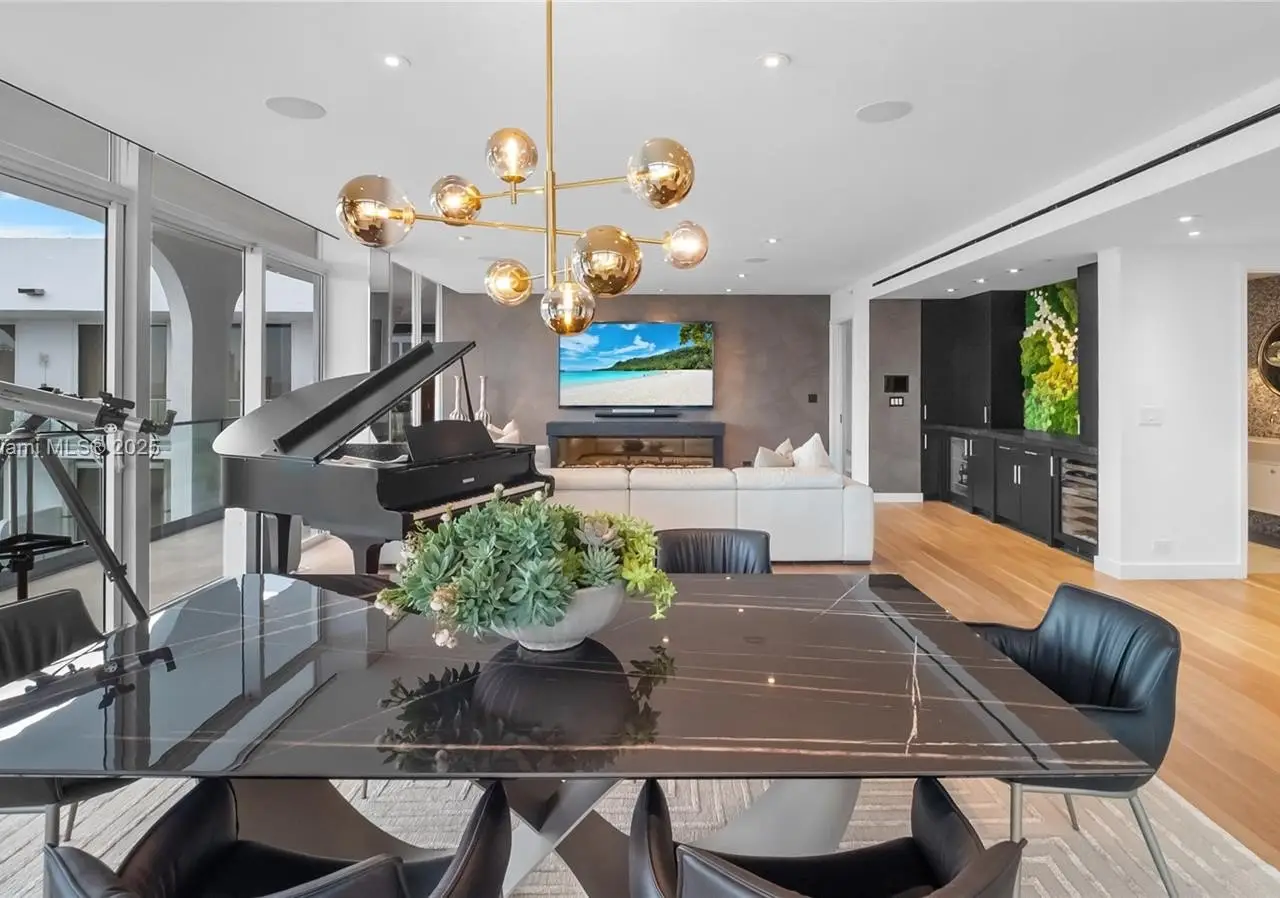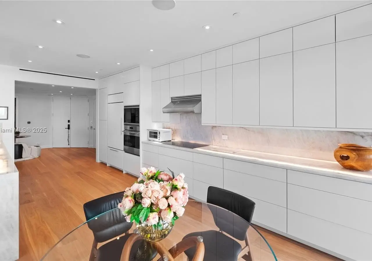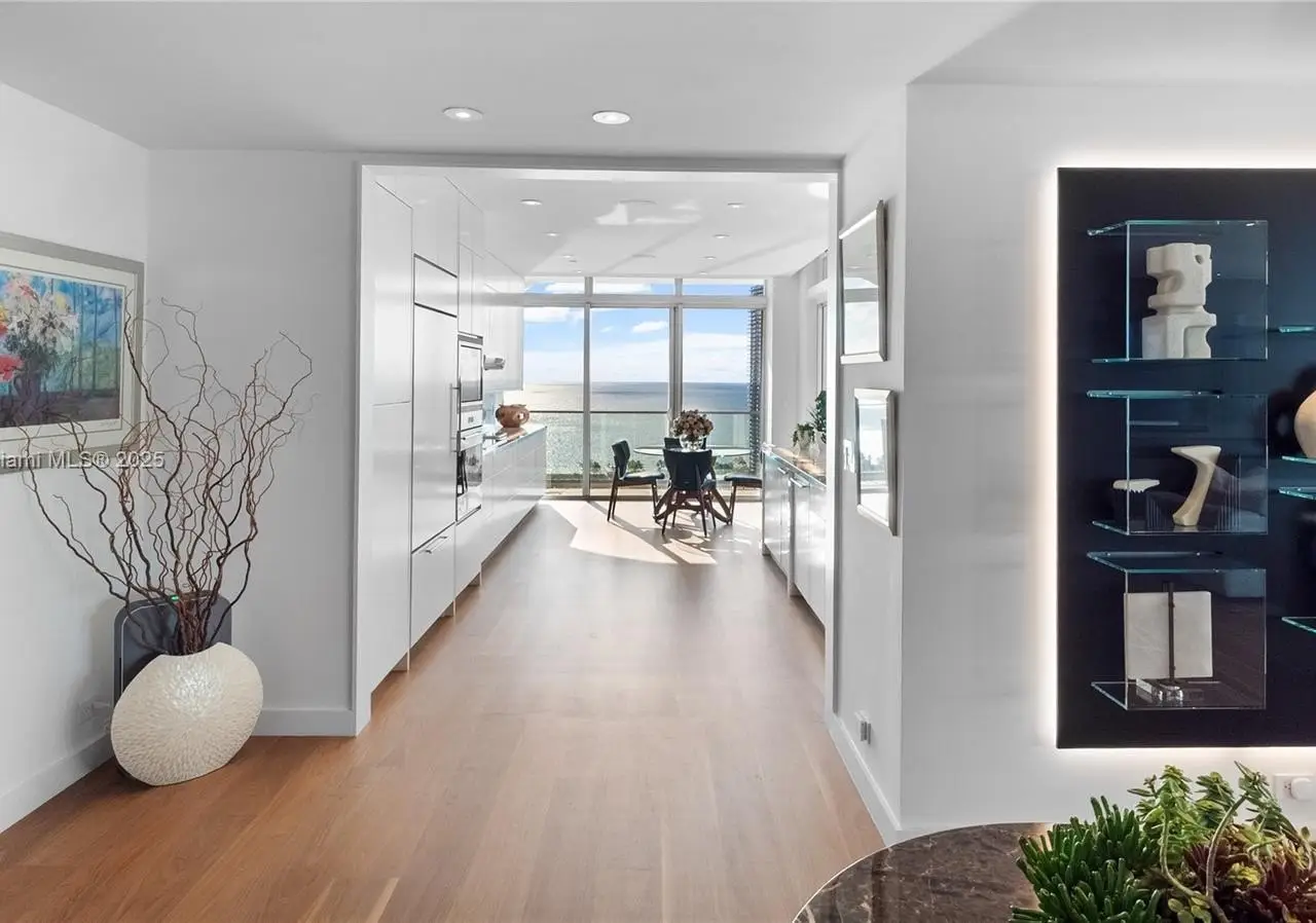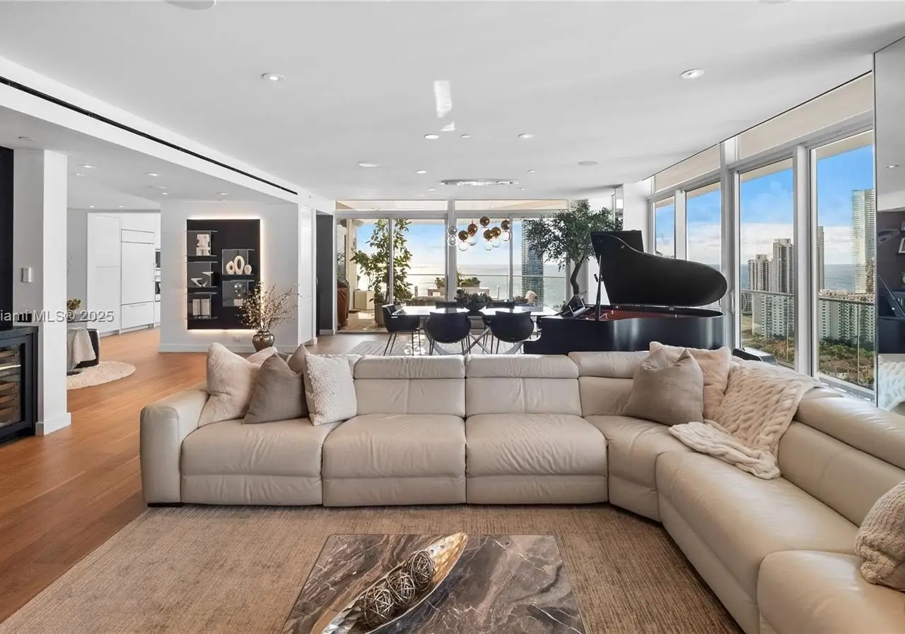 Experience luxury living in this exclusive penthouse with breathtaking direct ocean and Intracoastal views. Perfectly located near Aventura Mall, beaches, and fine dining, this 5-bedroom, 3.5-bath residence features two master suites, including a primary with a custom women's closet and a stunning Versace-tiled bath. The gourmet kitchen boasts Wolf and Sub-Zero appliances, Italian finishes, and Cristalito countertops with underlighting. Elegant interiors include custom cabinetry, a Versace-trimmed fireplace, Sonos audio, Lutron lighting, and remote blinds. A wraparound balcony invites outdoor dining and entertaining. Resort-style amenities include pool, valet, fitness center, restaurant, theatre, social room & marina. Fully funded reserves.