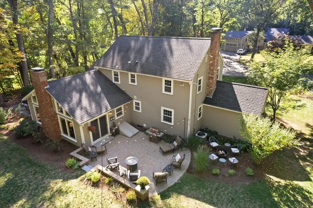 This picture-perfect colonial home is nestled in a peaceful cul-de-sac and exudes maximum curb appeal! Meticulously maintained and updated, this residence features upgraded windows and doors, a brand-new heating system, central air conditioning, and much more! The grand vaulted family room serves as the heart of the home where a wood-burning fireplace acts as a warm focal point, illuminated by oversized picture windows for abundant natural light. This room also provides easy access to two beautiful outdoor patios, perfect for dining al fresco, sipping morning coffee, or entertaining guests. The yard is private, and expansive, offering hours of enjoyment and play. A cozy front-to-back living room features French doors that lead to a bright and cheerful home office or playroom. The second level is home to 4 bedrooms and a full bath, while the lower level boasts a great bonus room, ample storage, and a large unfinished space with great finish potential. This home is truly a gem!