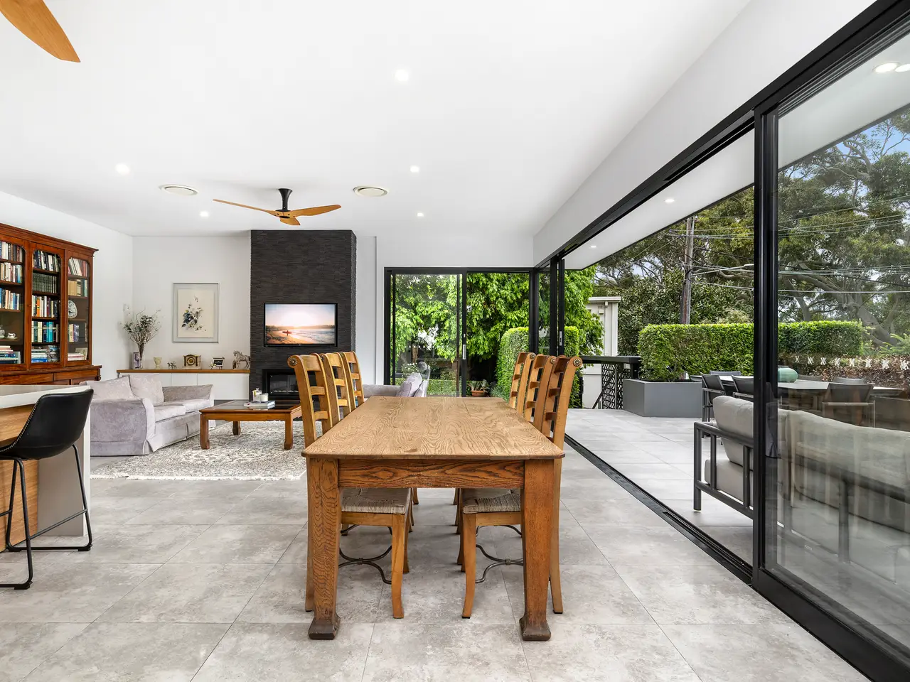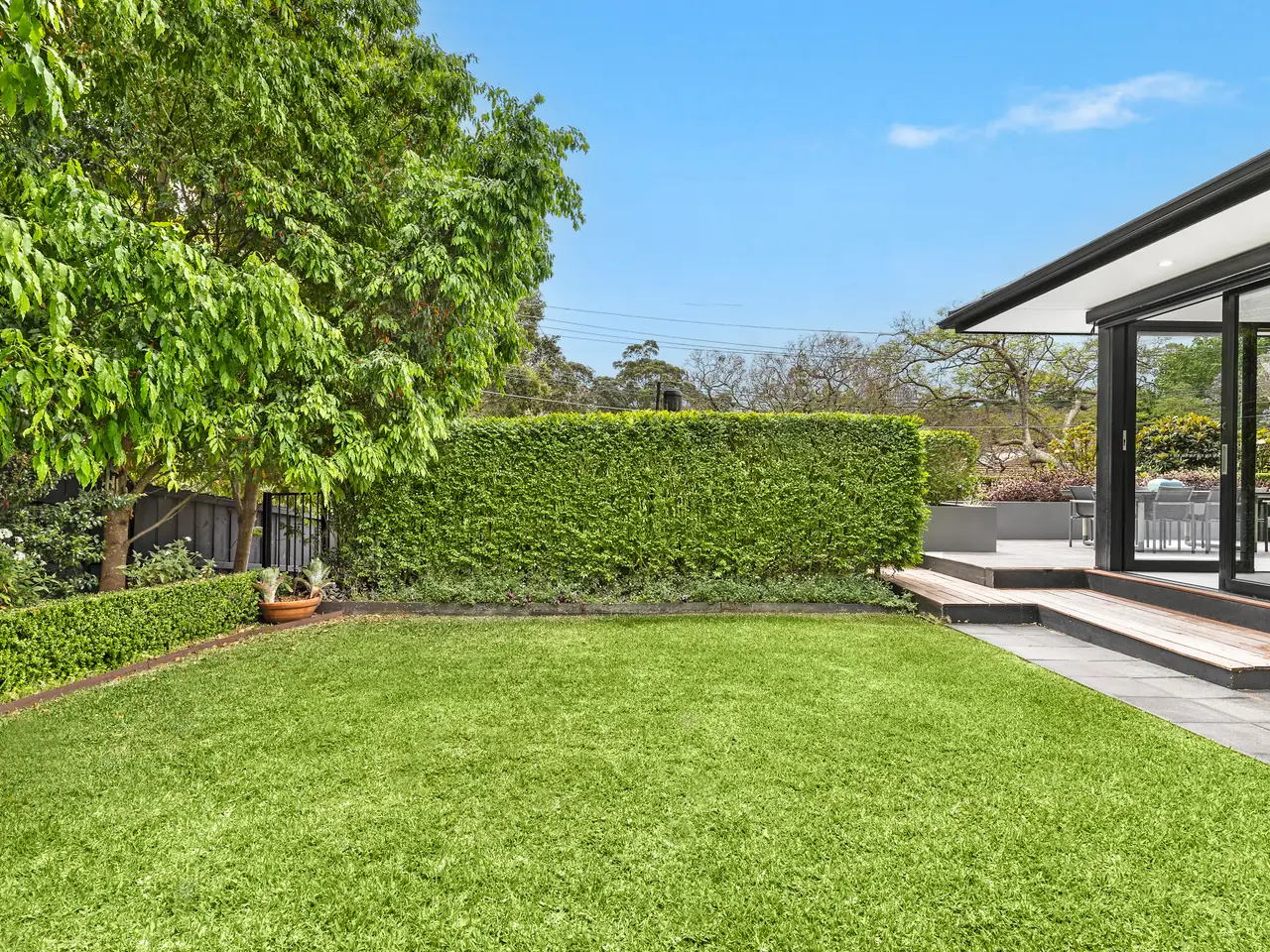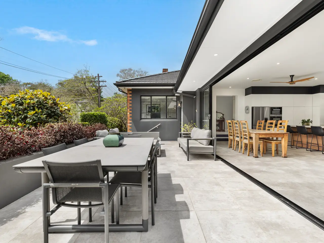 North facing terrace with sliding glass