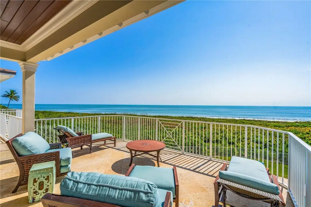 Majestic Oceanfront Estate exudes treasured Vero Beach coastal elegance! 5BR/6.5BA, 5,952 SQFT w/ 3+ Car Garage. Exquisite architectural design & finest appointments, nestled on 1.57 acres & 154 ft of direct soothing oceanfront. Ultra-Private 12 home gated community. Ocean views from most every room, ensuring a lifetime of precious memories. 500 ft+ of unobstructed North/South vistas. Outdoor Living: Tropical landscaping embrace Lanai, Pool, Spa, Summer Kitchen to entertain family/friends. Beach is most desirable, w/ ultra-private, deep accreting beaches. Sizes approx/subj to error