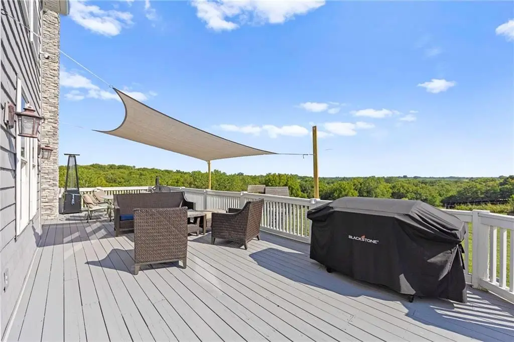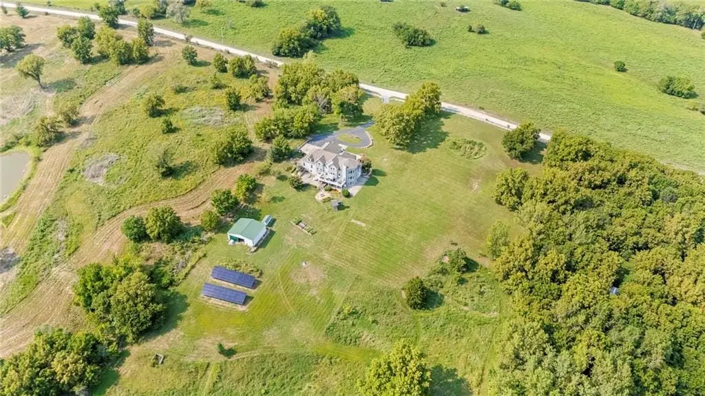 STUNNING PRIVATE ESTATE FOR SALE! Live in luxury and enjoy VERY LOW UTILITY BILLS DUE TO NEARLY NEW SOLAR ARRAY SYSTEM WITH WARRANTY! Explore all the spectacular features of this architecturally custom-designed home that is suited for the setting. See for many miles from the upper level living room, or from the lower level suite designed as an living area for multi-generation occupants. There are 3 Primary Suites within this property! Commute to downtown KC in 45 minutes, Lake Ozark in 2.5 hours, Pleasant Hill or Harrisonville in 15 minutes, and Lee's Summit in 20 minutes. The barn, chicken coop, garden boxes and winding trails through the woods and creek offer many hours of enjoyment for kids and grandkids. Come explore the hidden treasures on this property. Come back to live in a quiet natural-habitat!
